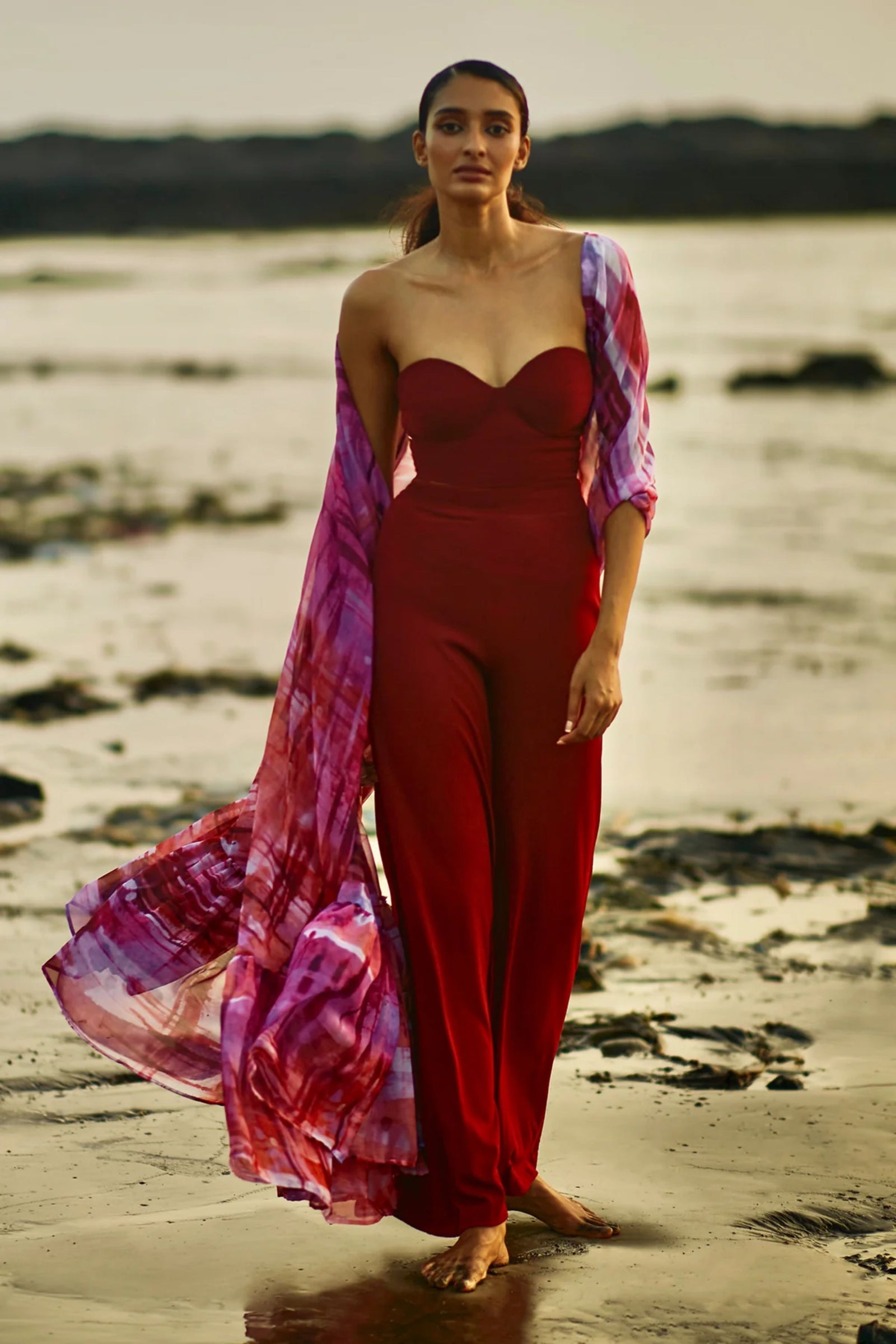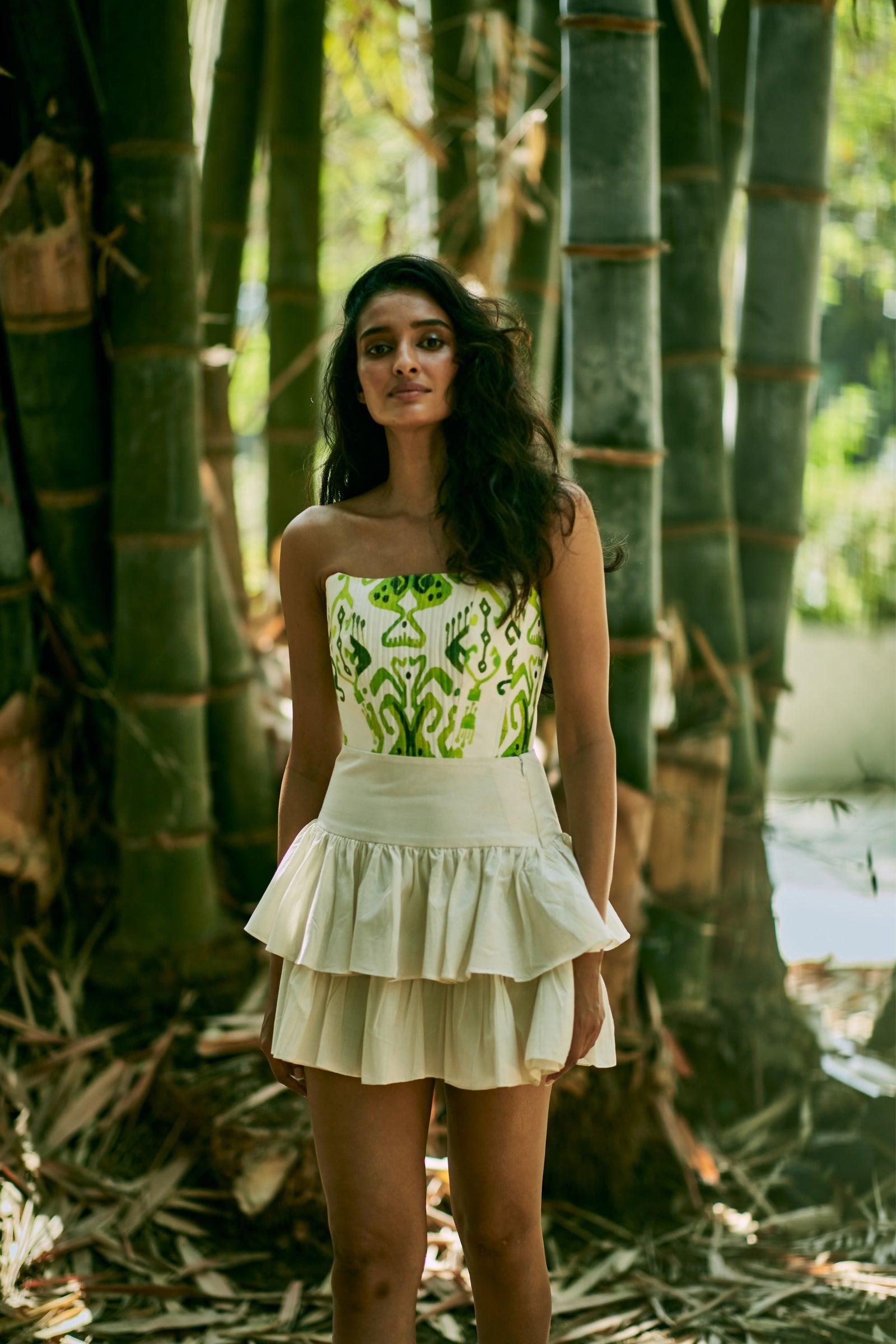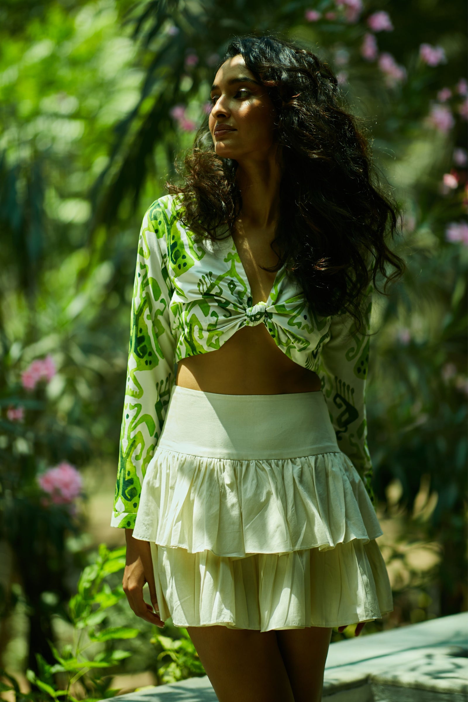 • Featuring a pre draped ruffle saree with ruched chinon blouse