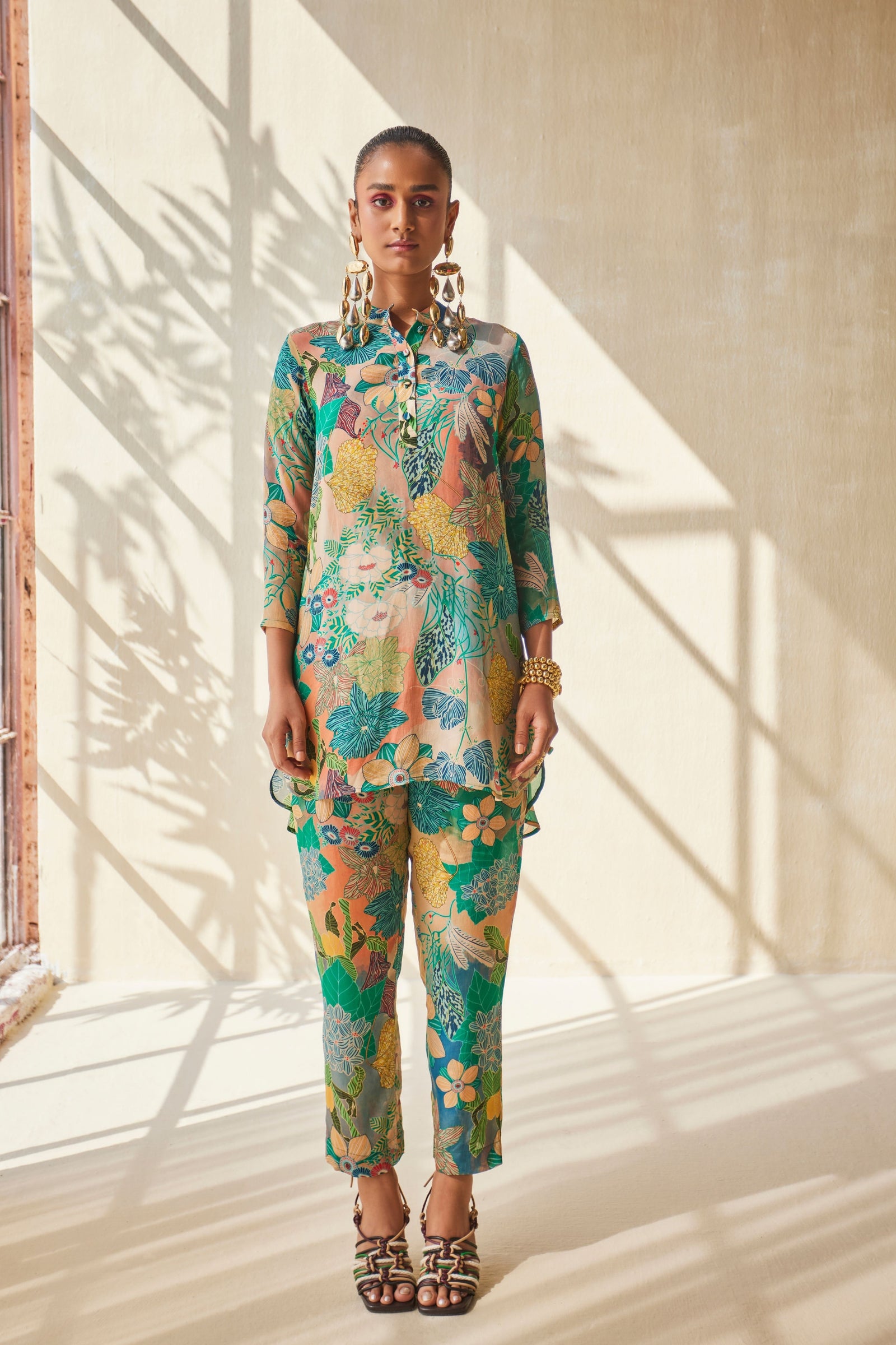 Care: Dry Clean Only. As garments are handmade and handwoven, natural variations in colours and weaves are a characteristic of the textile, and may be found in the finished garments as well.