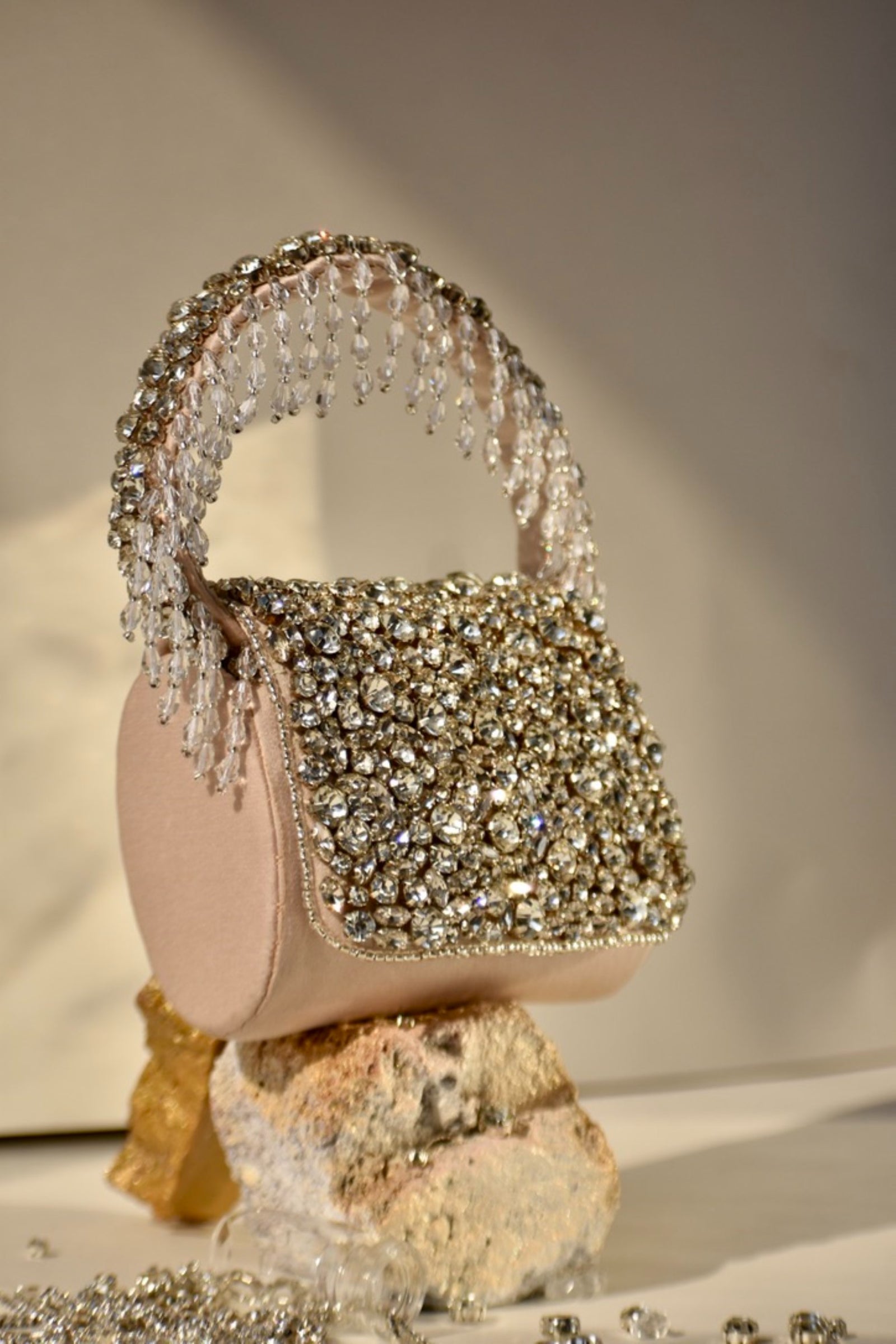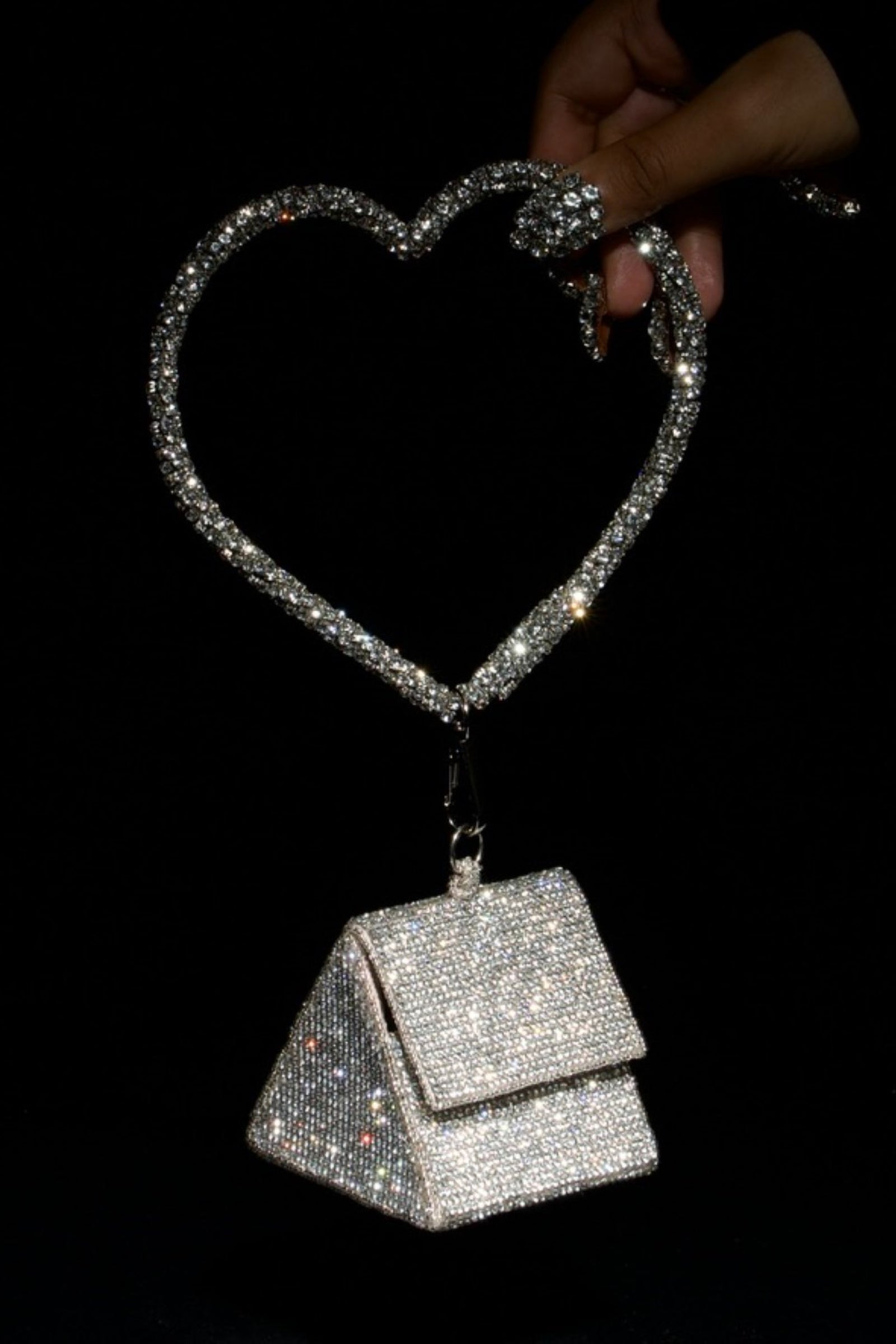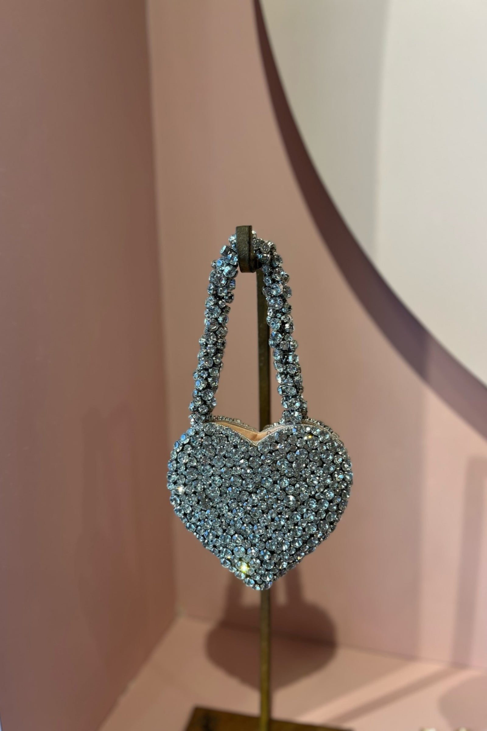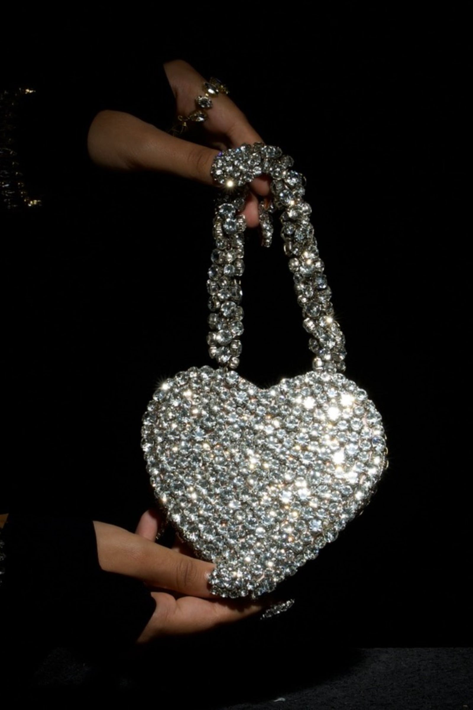 • The it bag of the season! This heart bag is hand embroidered with high quality rhinestones and is the most popular bag by ozel. It comes with a beautiful rhinestones studded handle