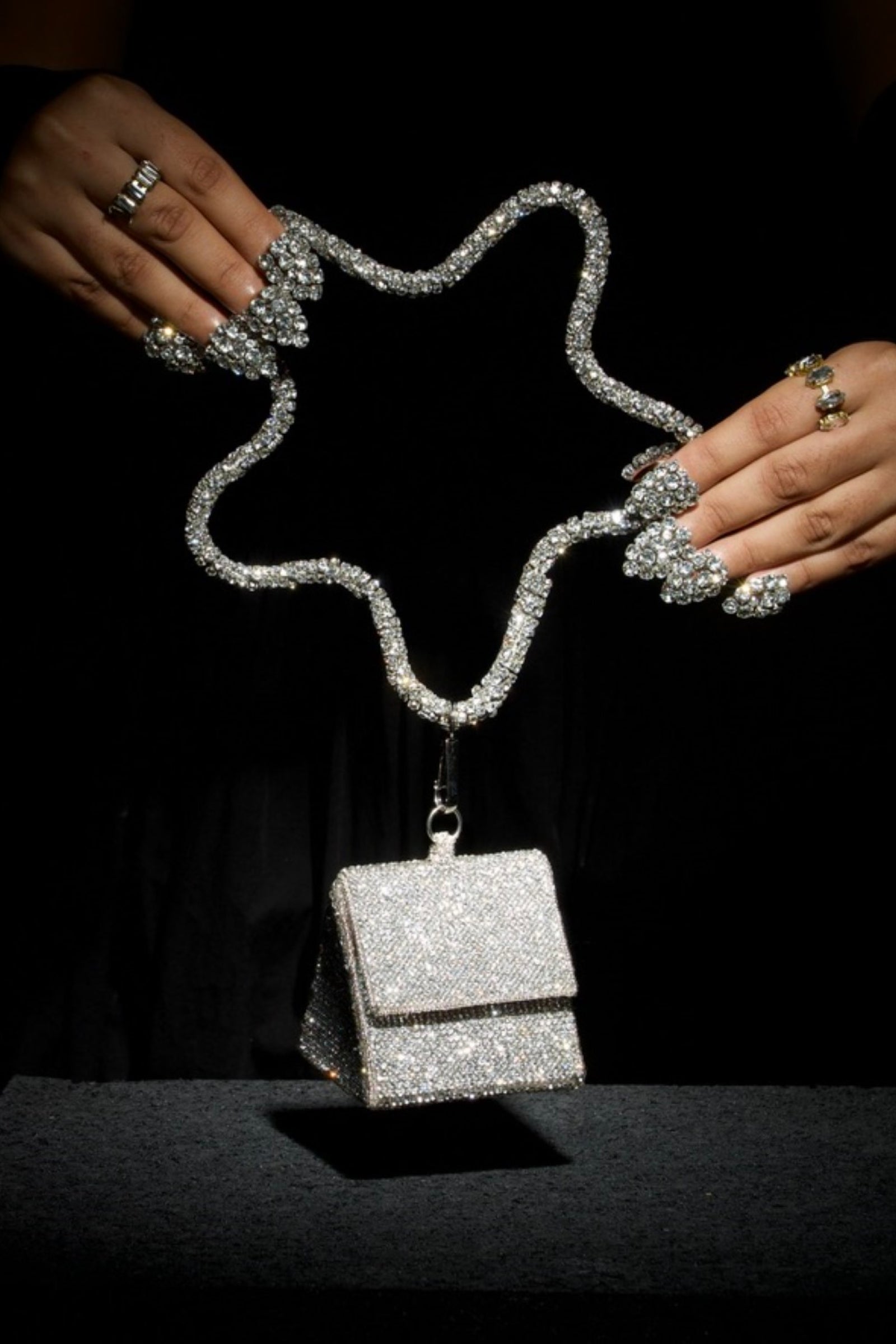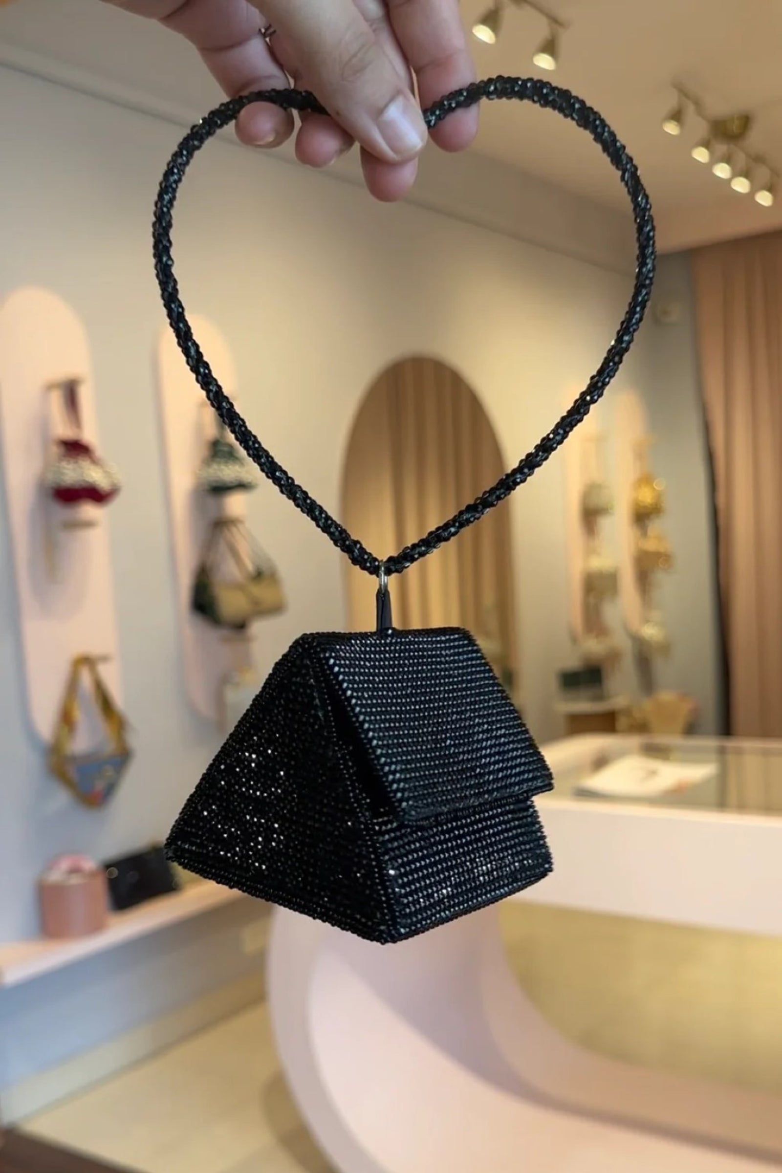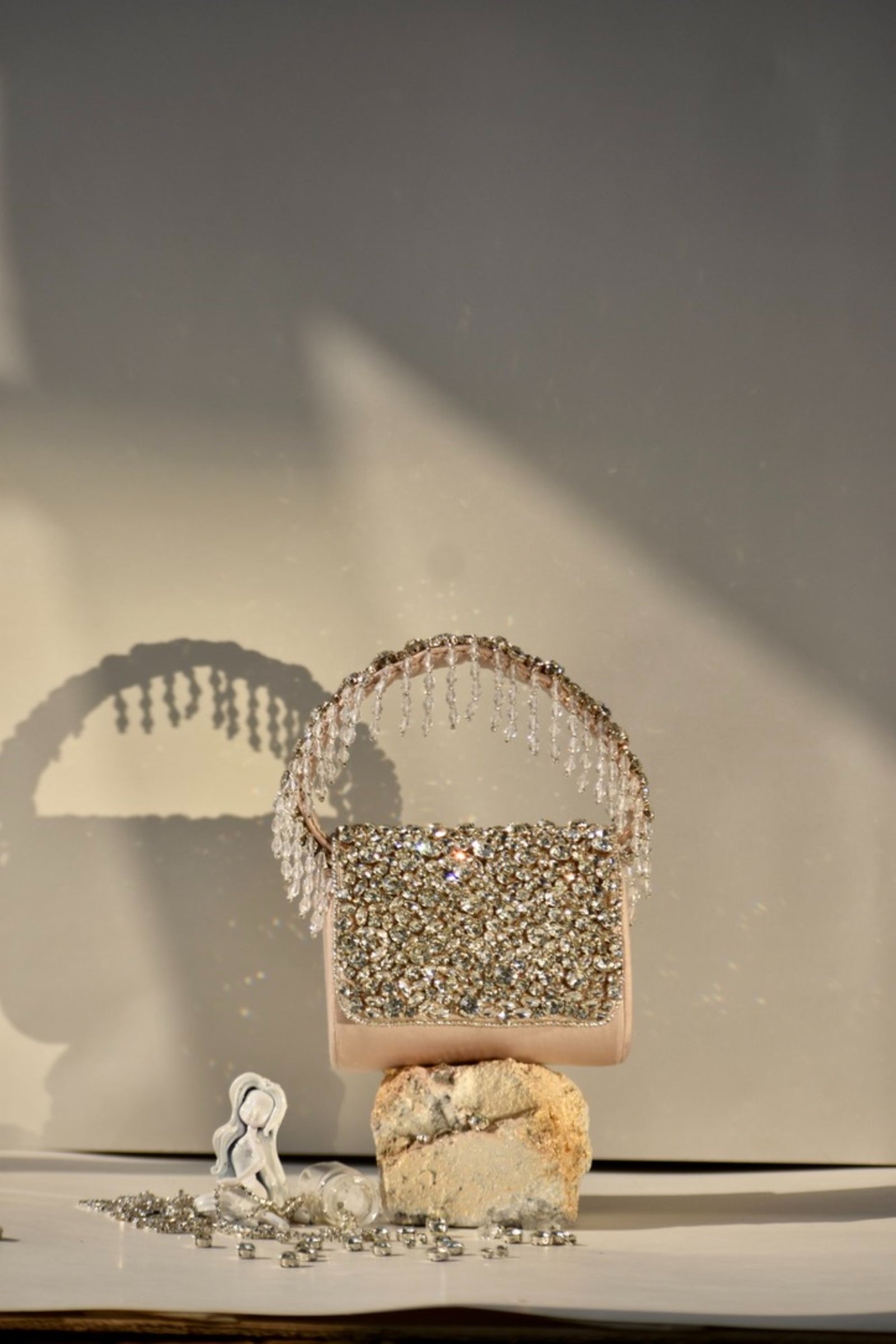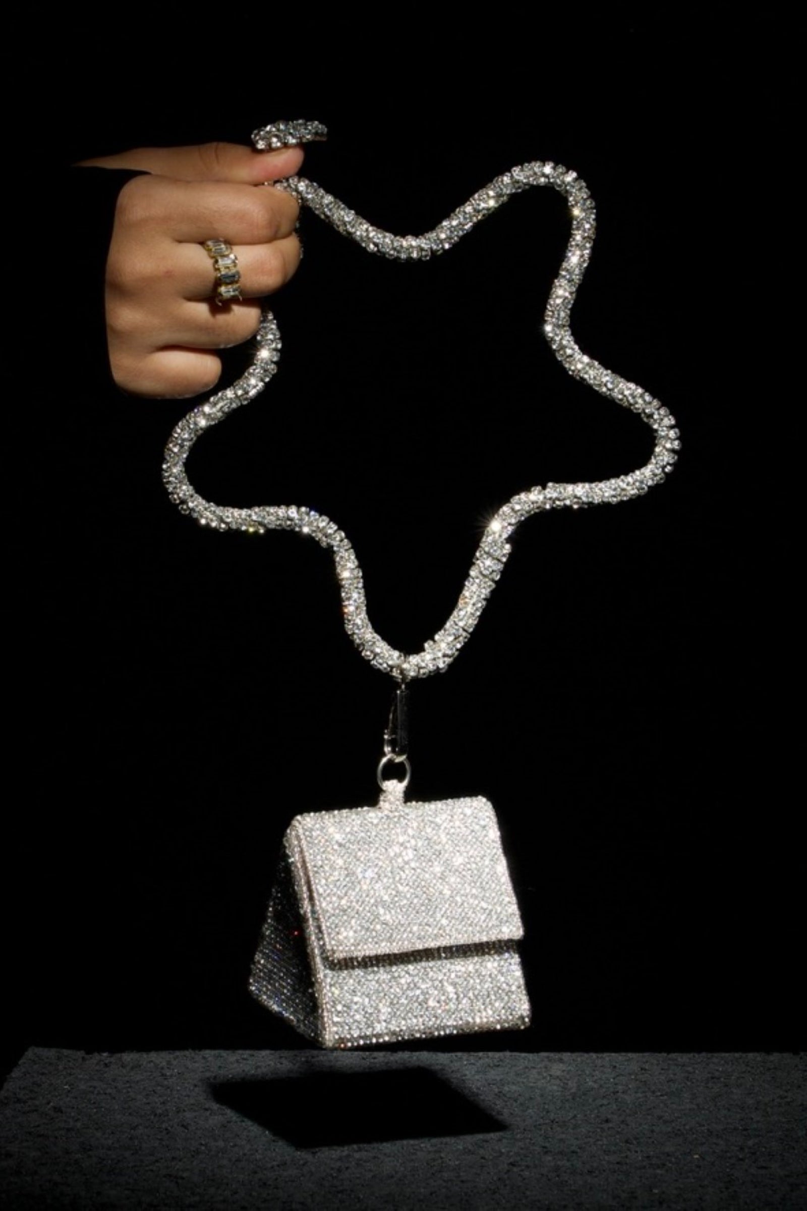 • The it bag of the season! This heart bag is hand embroidered with high quality rhinestones and is the most popular bag by ozel. It comes with a beautiful rhinestones studded handle