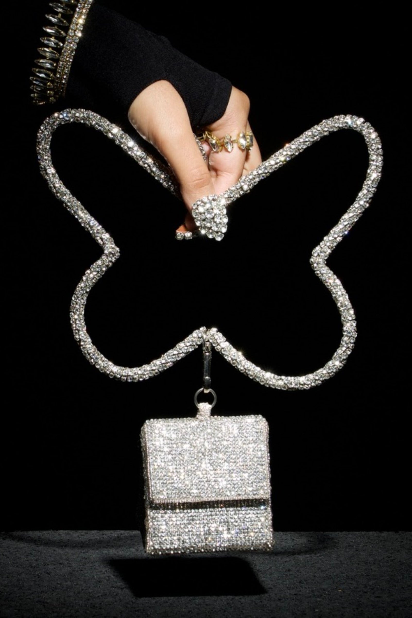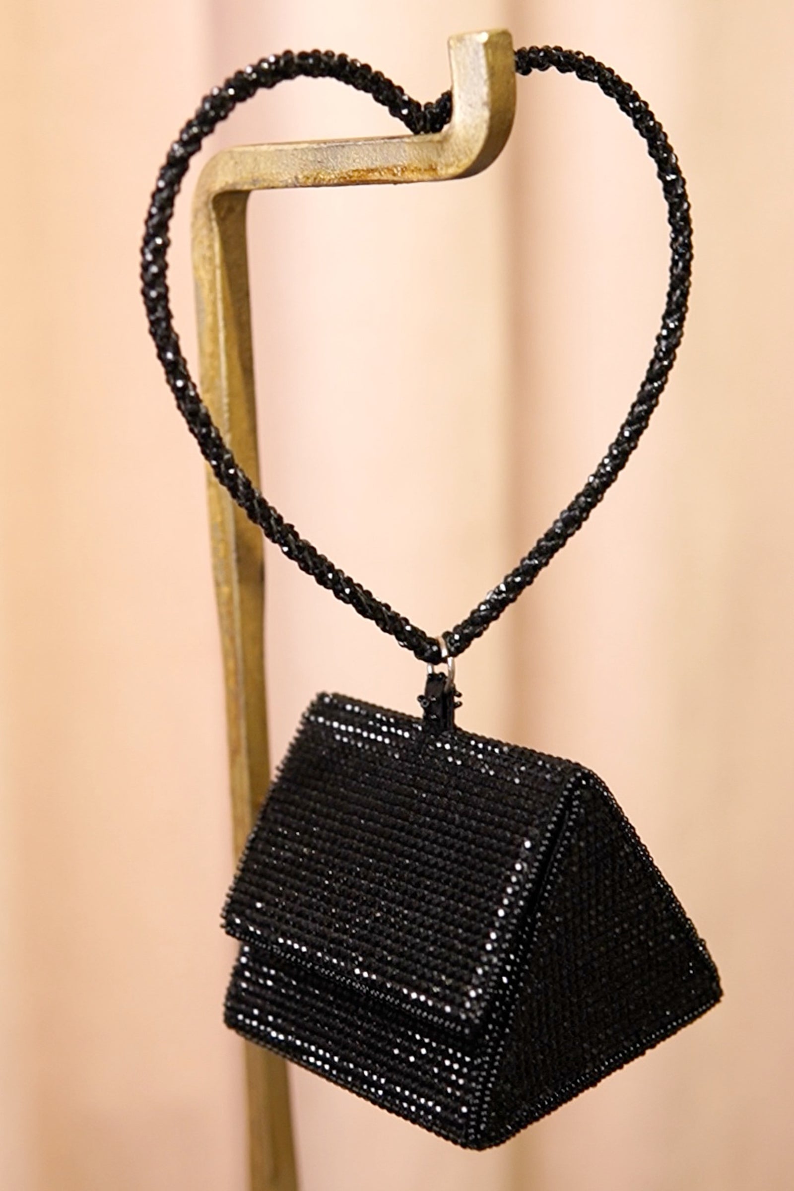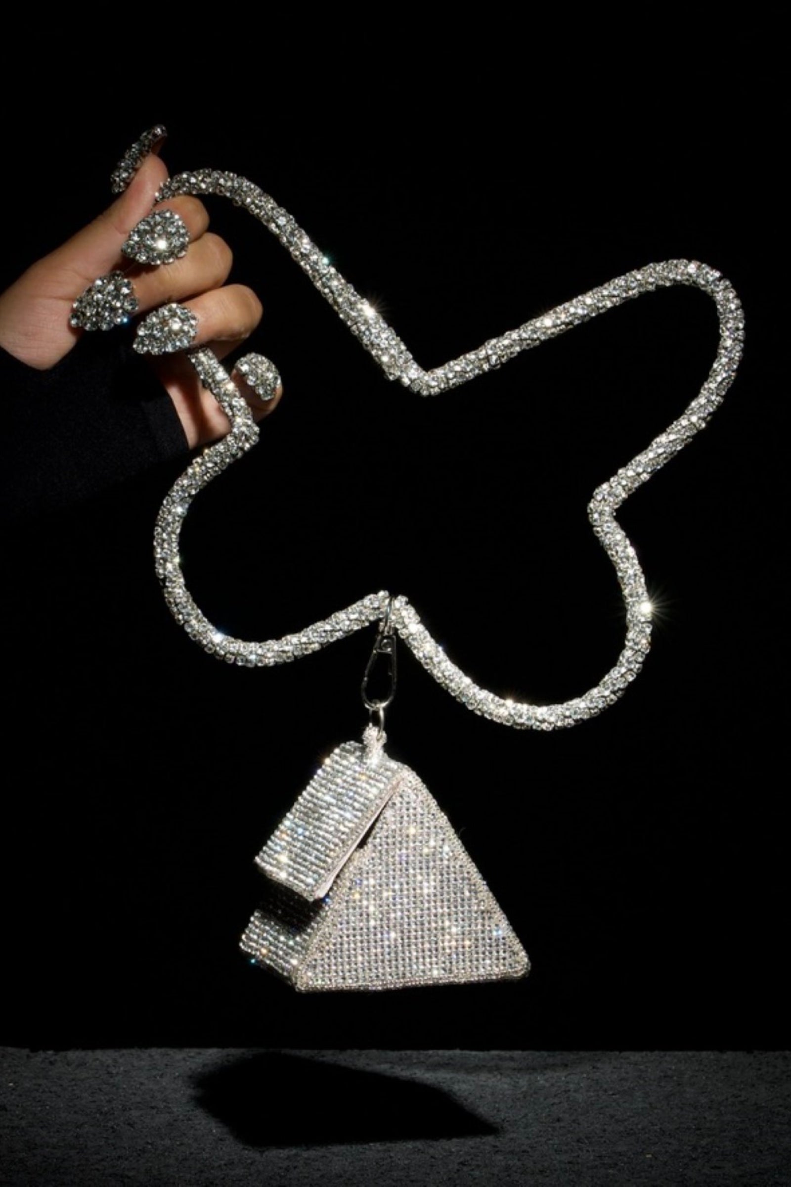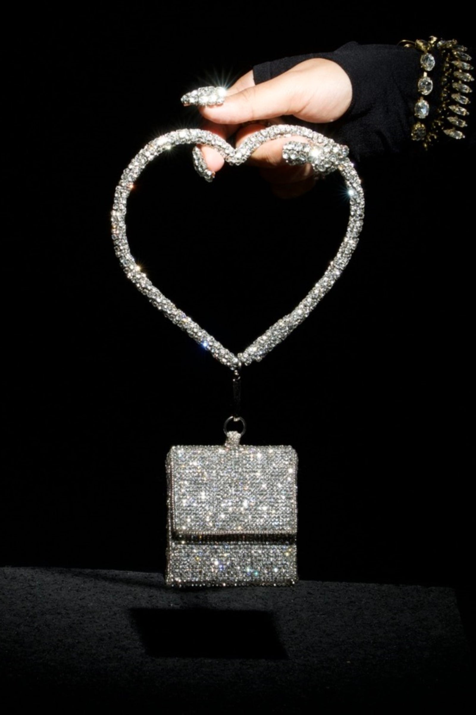 • The it bag of the season! This heart bag is hand embroidered with high quality rhinestones and is the most popular bag by ozel. It comes with a beautiful rhinestones studded handle