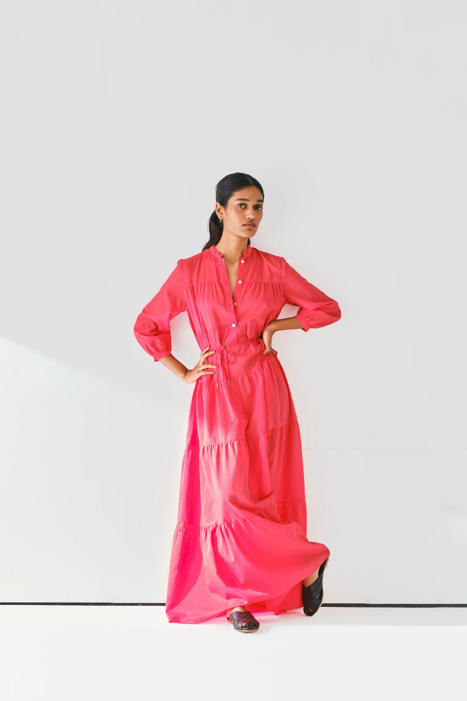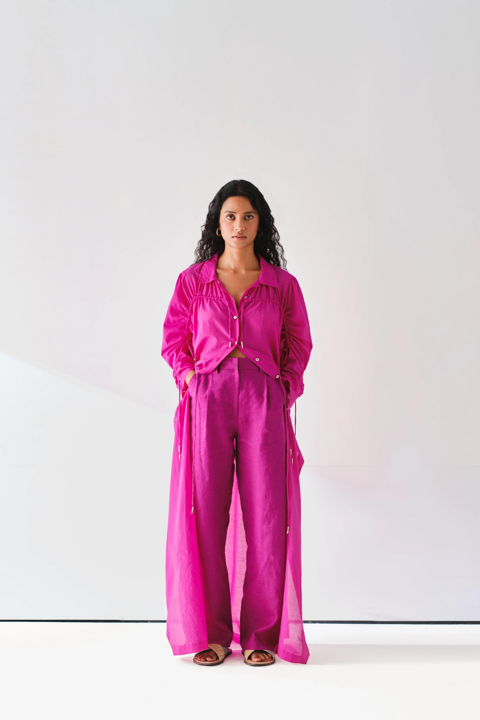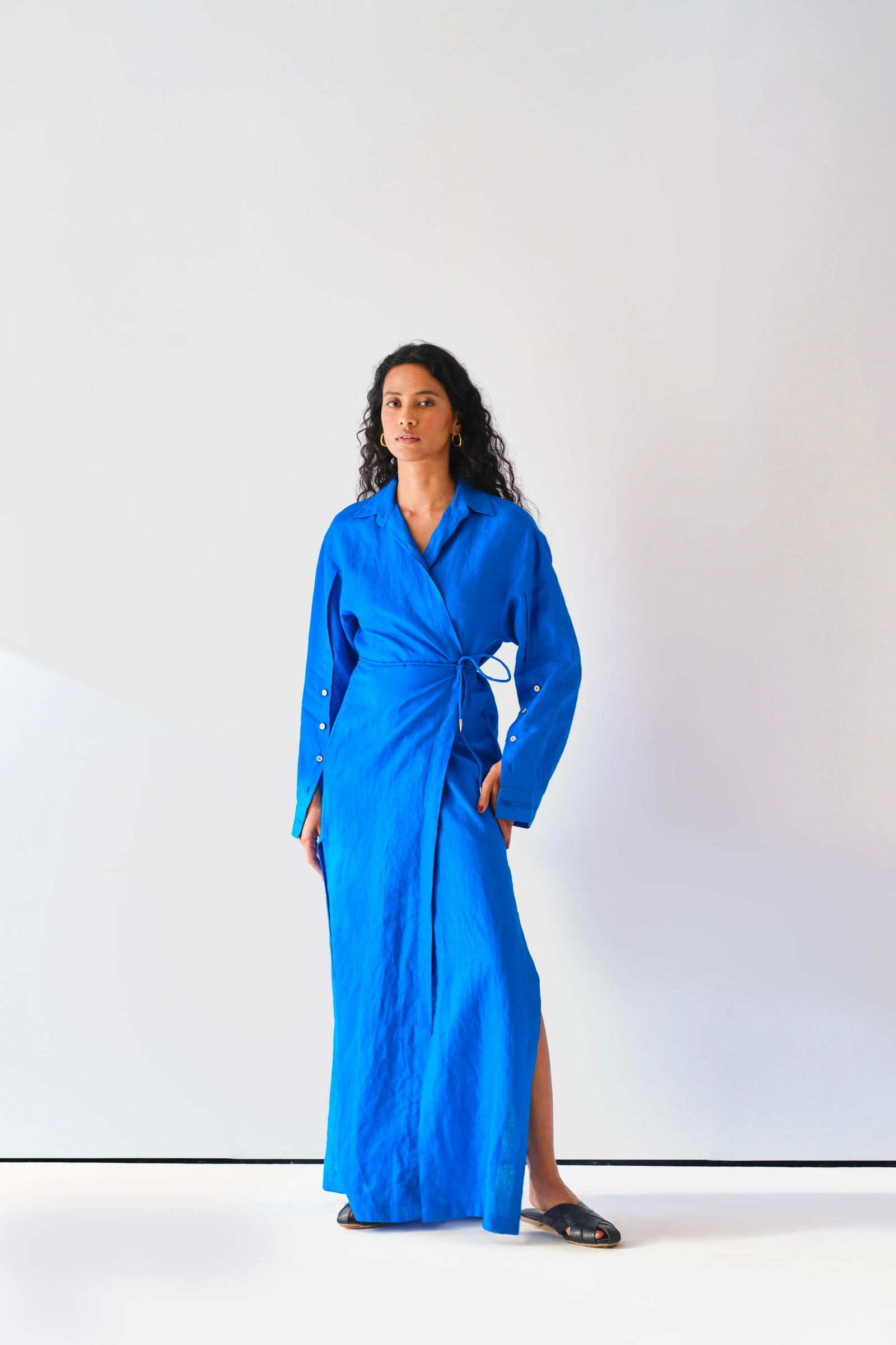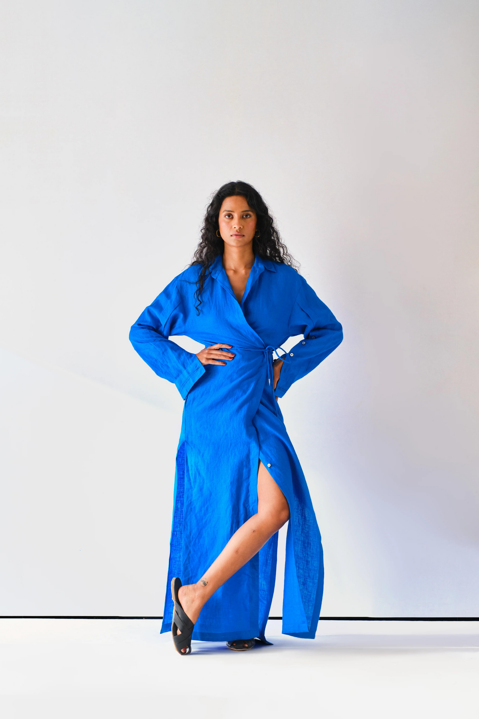 • Made keeping in mind a simple, streamlined approach to design, which translates into wearable pieces. This shirt dress is cut for a loose fit with drop shoulders and front opening sleeves. It features a drawstring belt which can be used to define the waist.