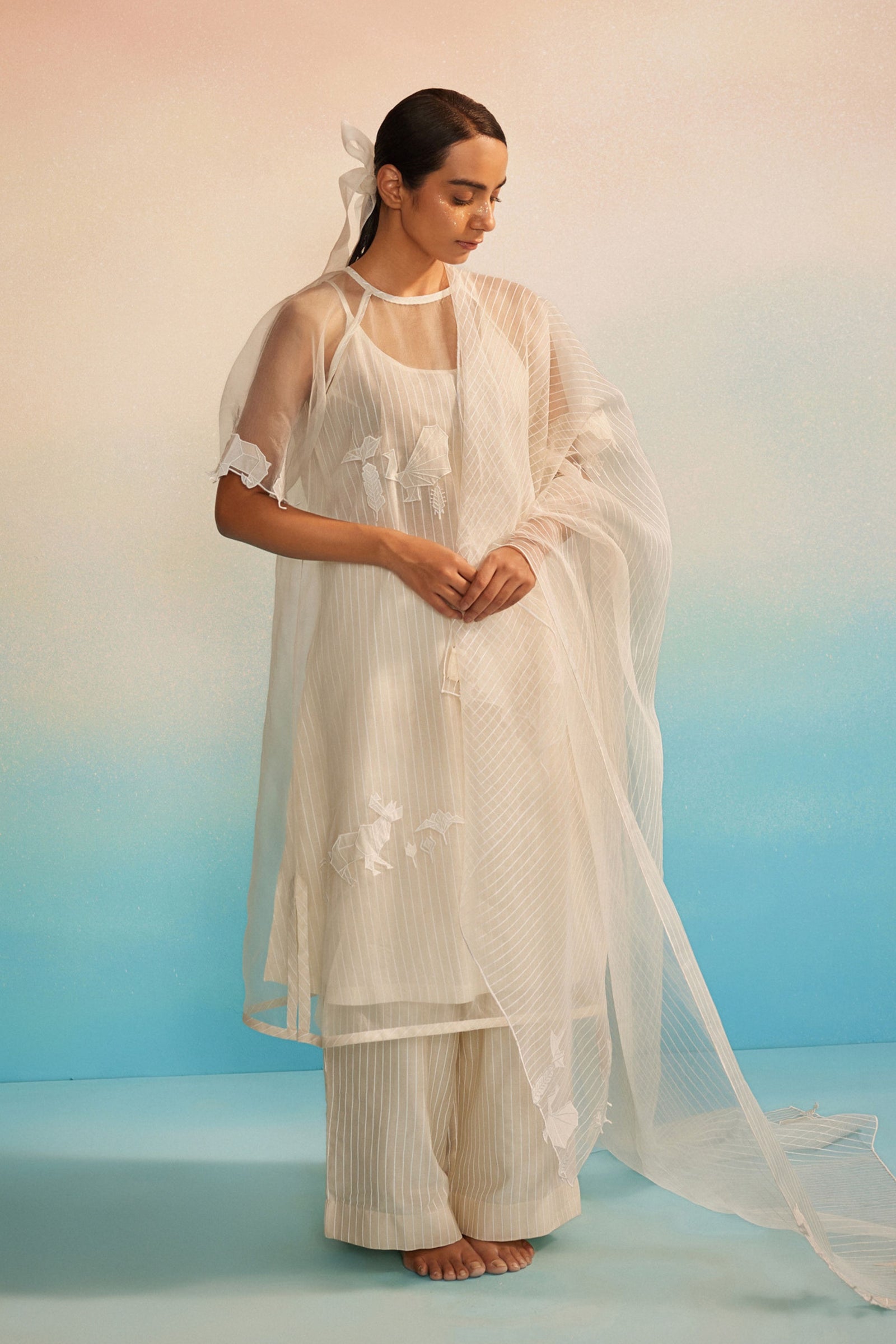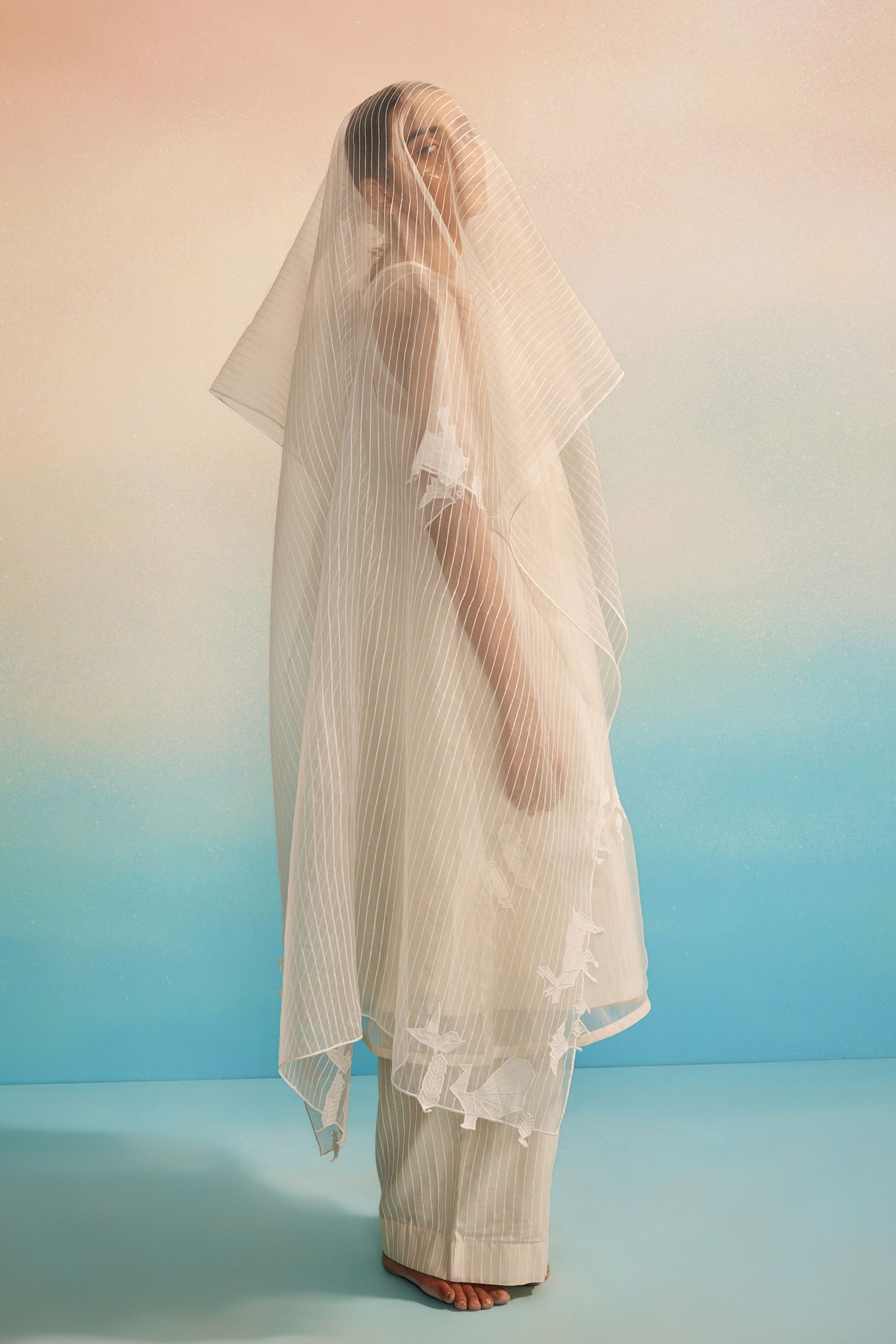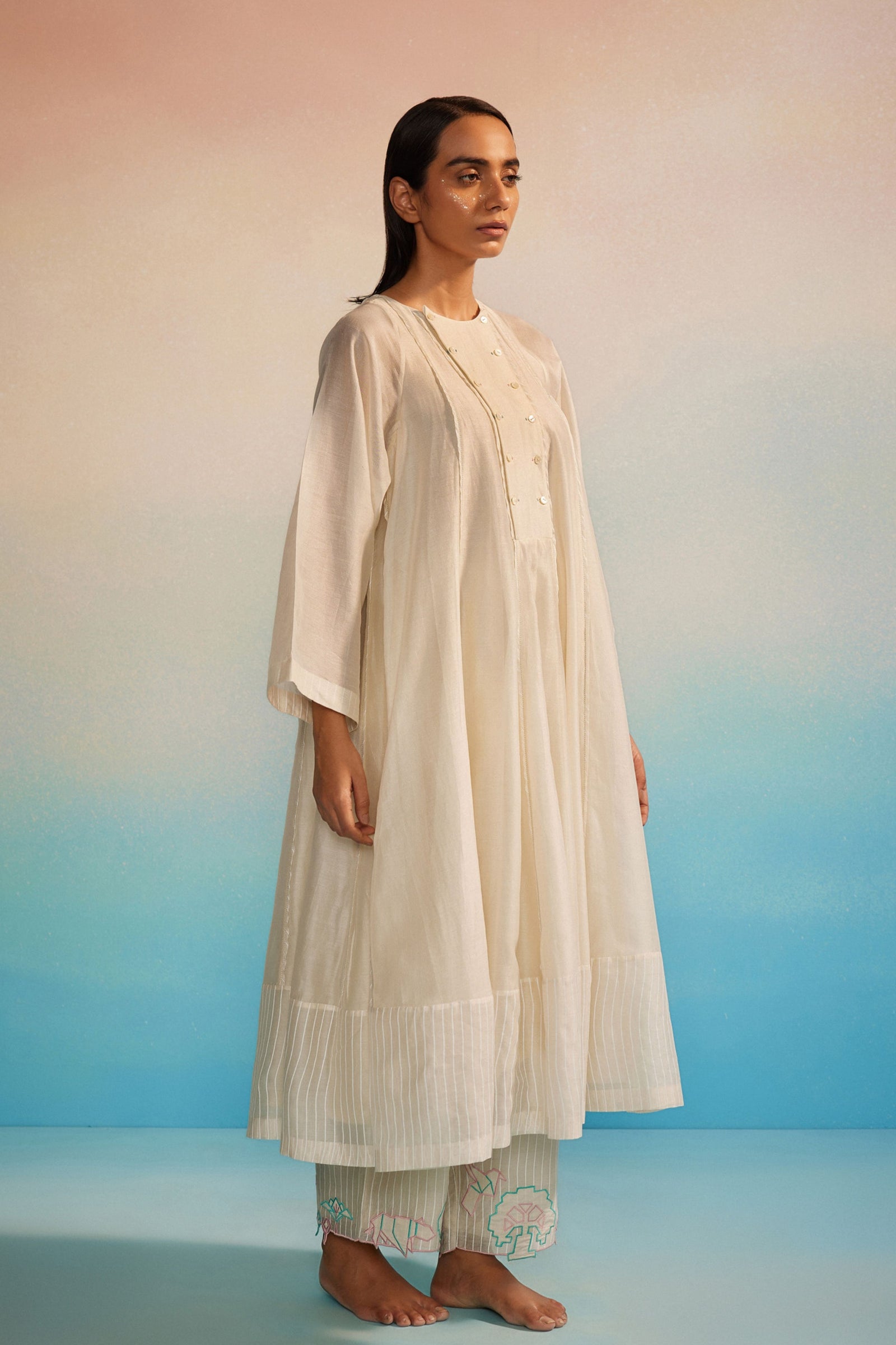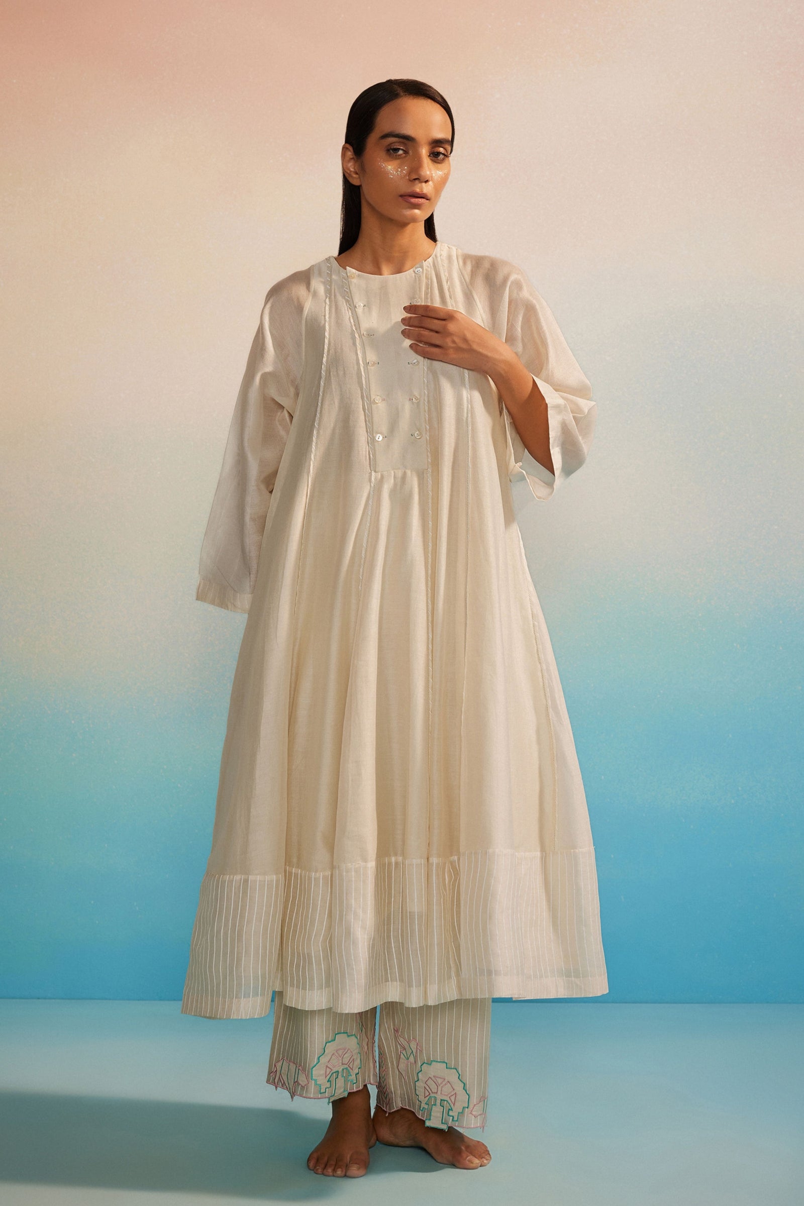 • The iki dolman kurta blends graceful structure with effortless ease. Designed with dolman sleeves and soft gathers at the cuffs, it features clean front placket detailing along with appliqué embroidery and subtle box pleats at the back. Crafted in breathable fabric with gentle paneling, the iki kurta flows naturally with the body, offering comfort and making it a versatile piece suited for both daytime ease and understated evening charm.