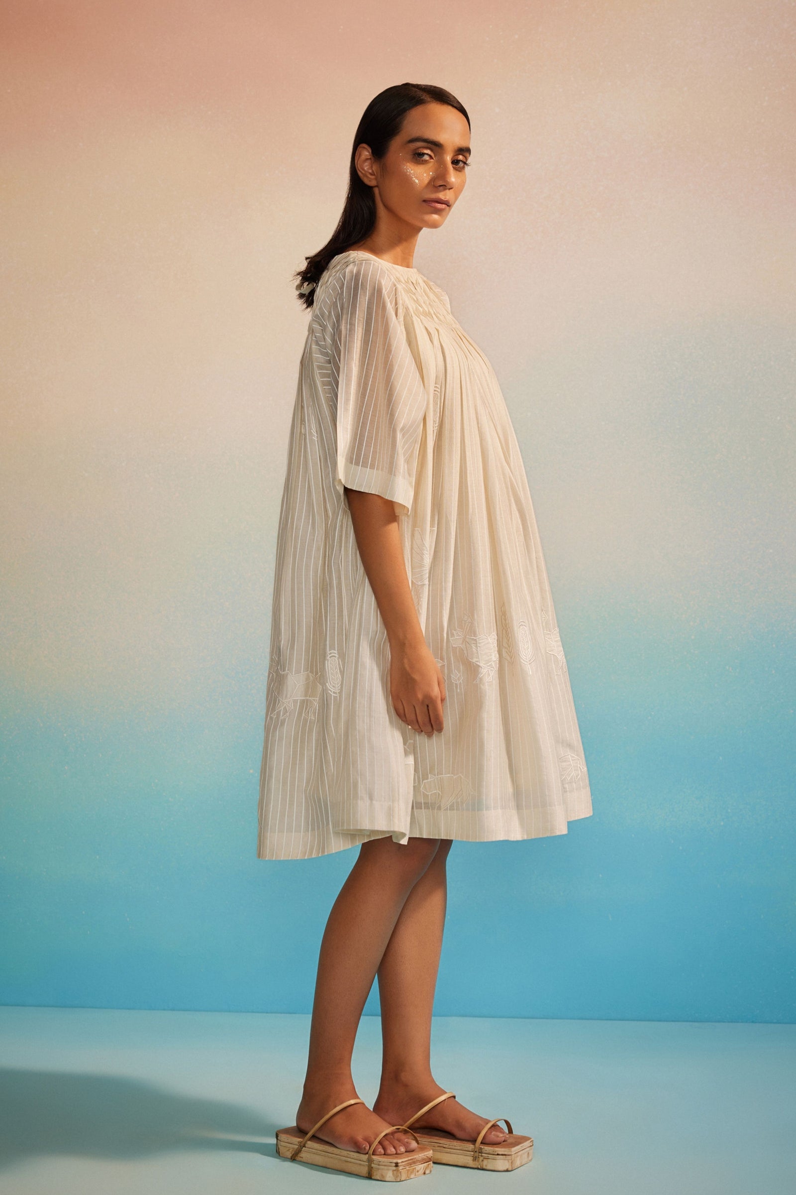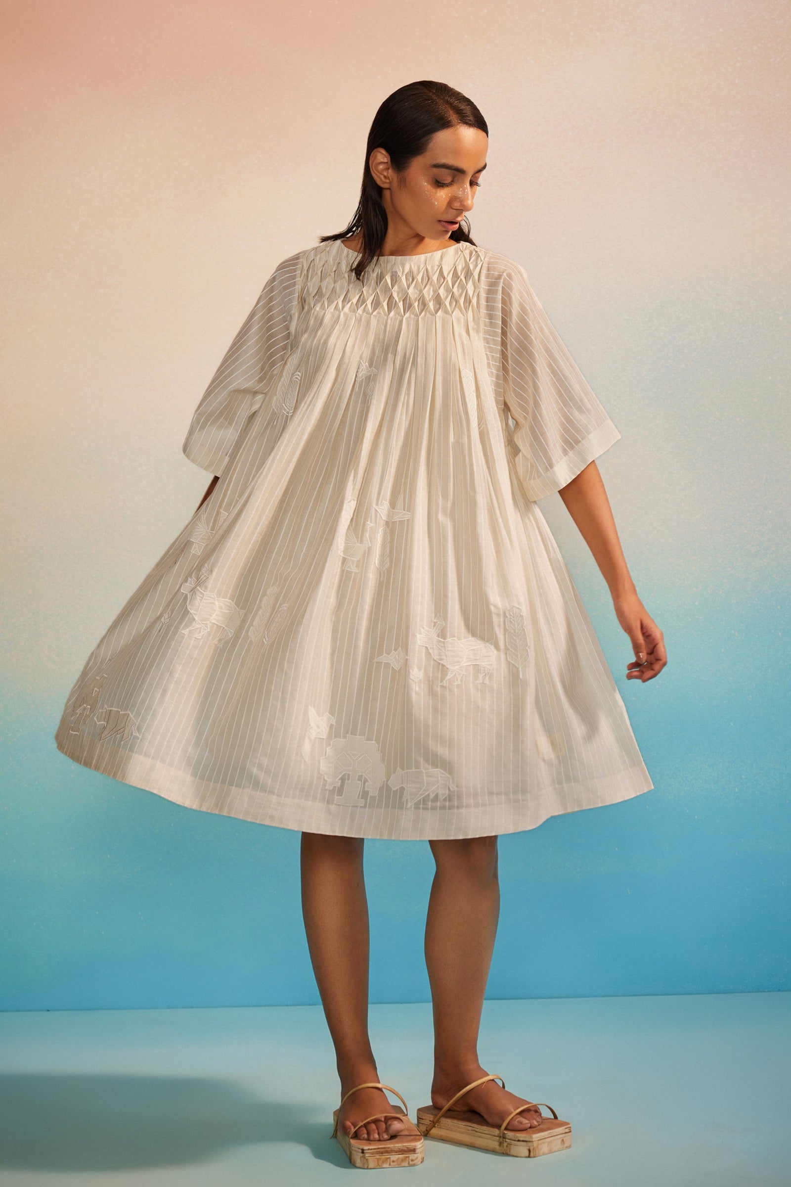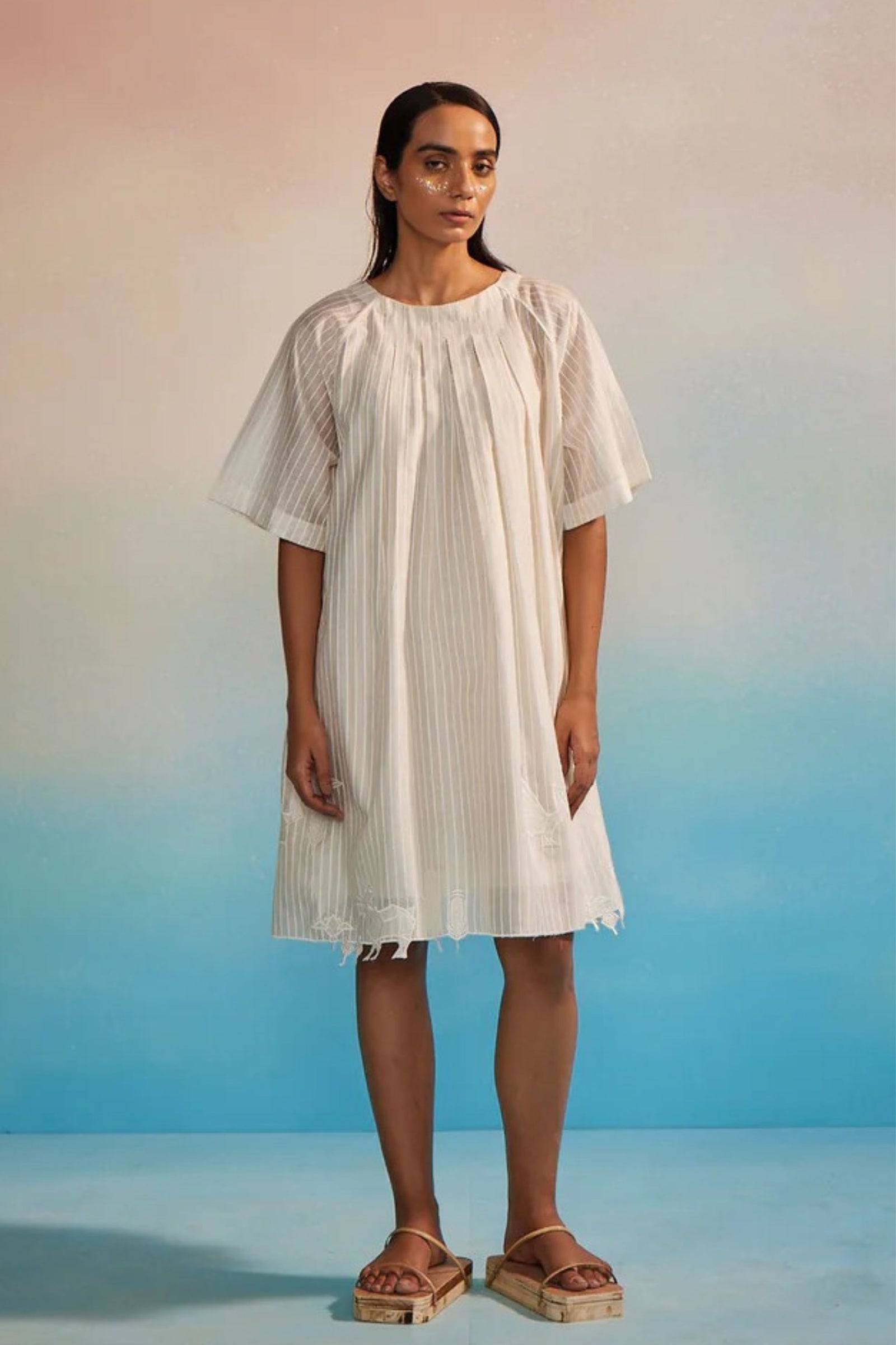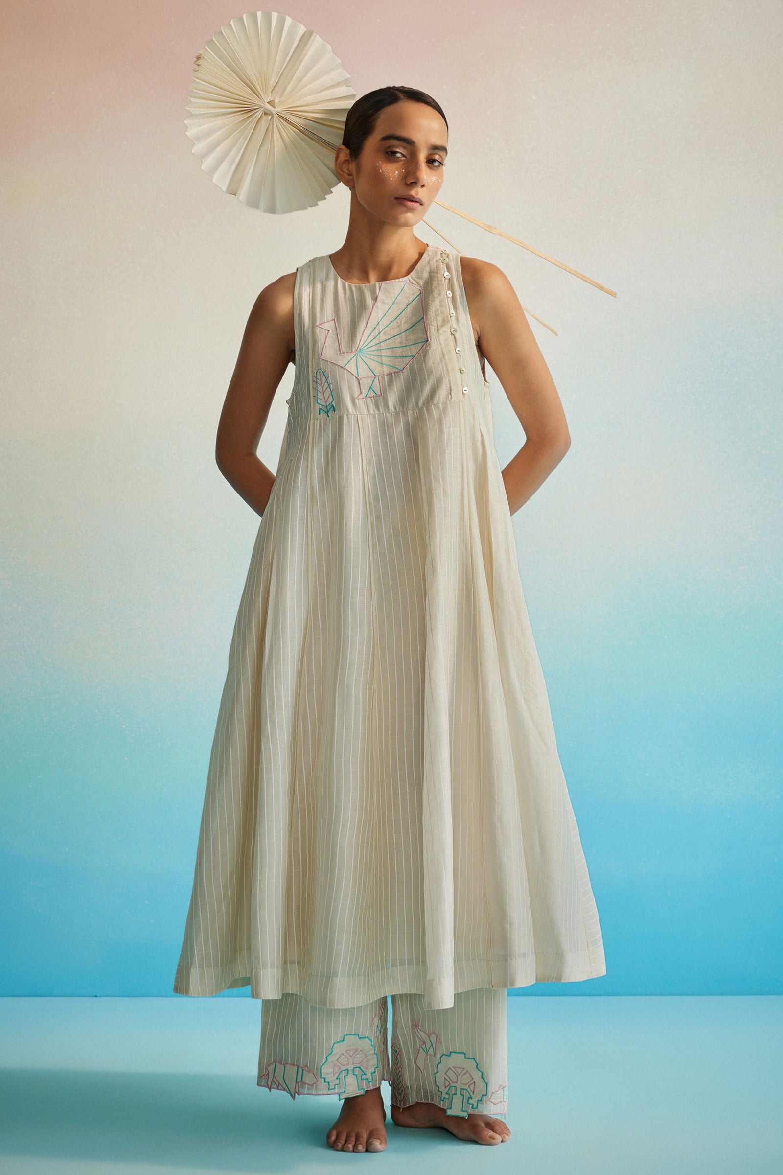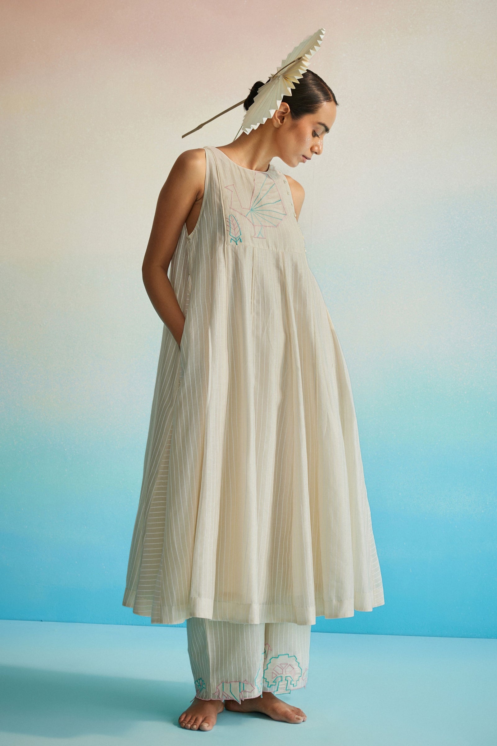• The iki dolman kurta blends graceful structure with effortless ease. Designed with dolman sleeves and soft gathers at the cuffs, it features clean front placket detailing along with appliqué embroidery and subtle box pleats at the back. Crafted in breathable fabric with gentle paneling, the iki kurta flows naturally with the body, offering comfort and making it a versatile piece suited for both daytime ease and understated evening charm.