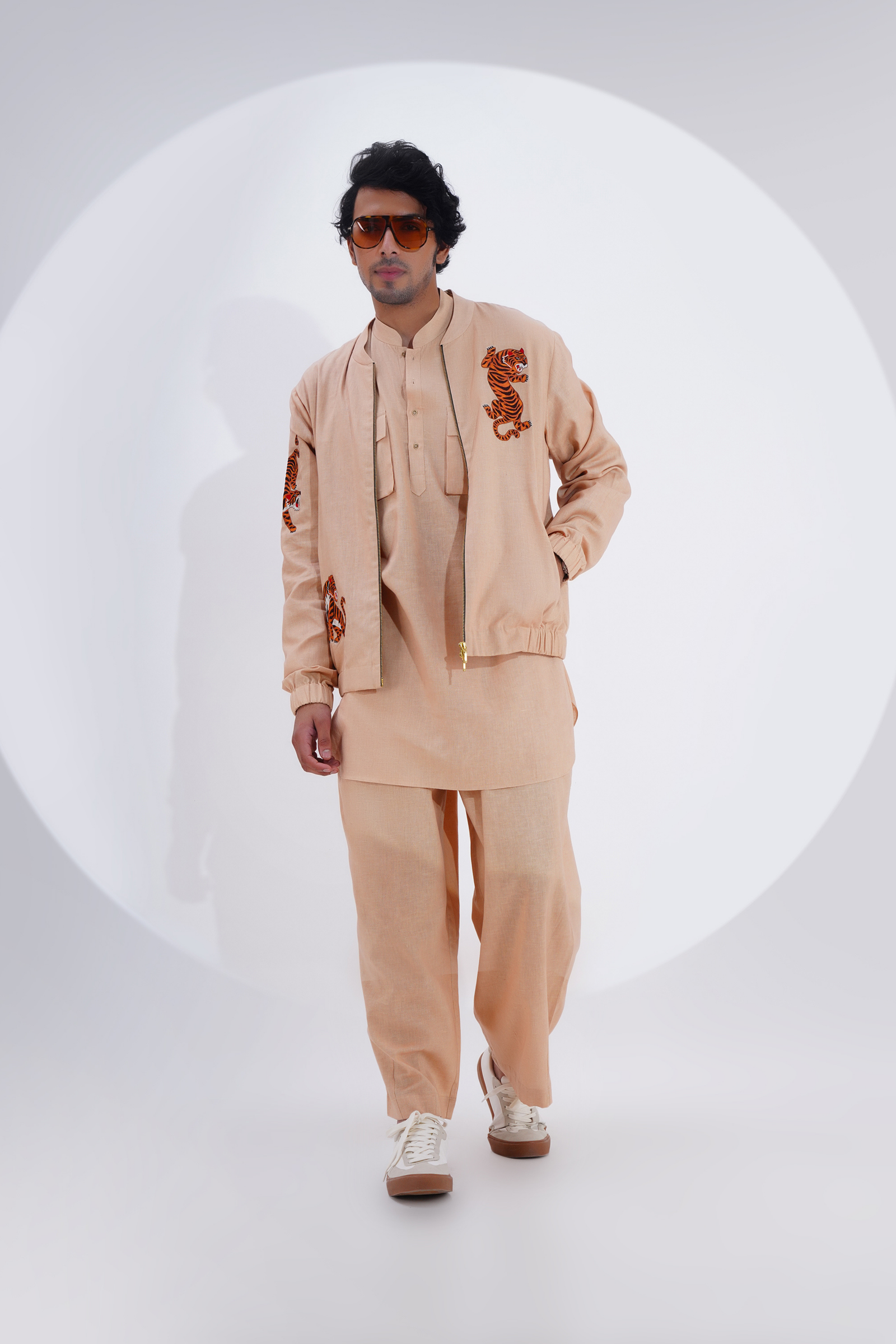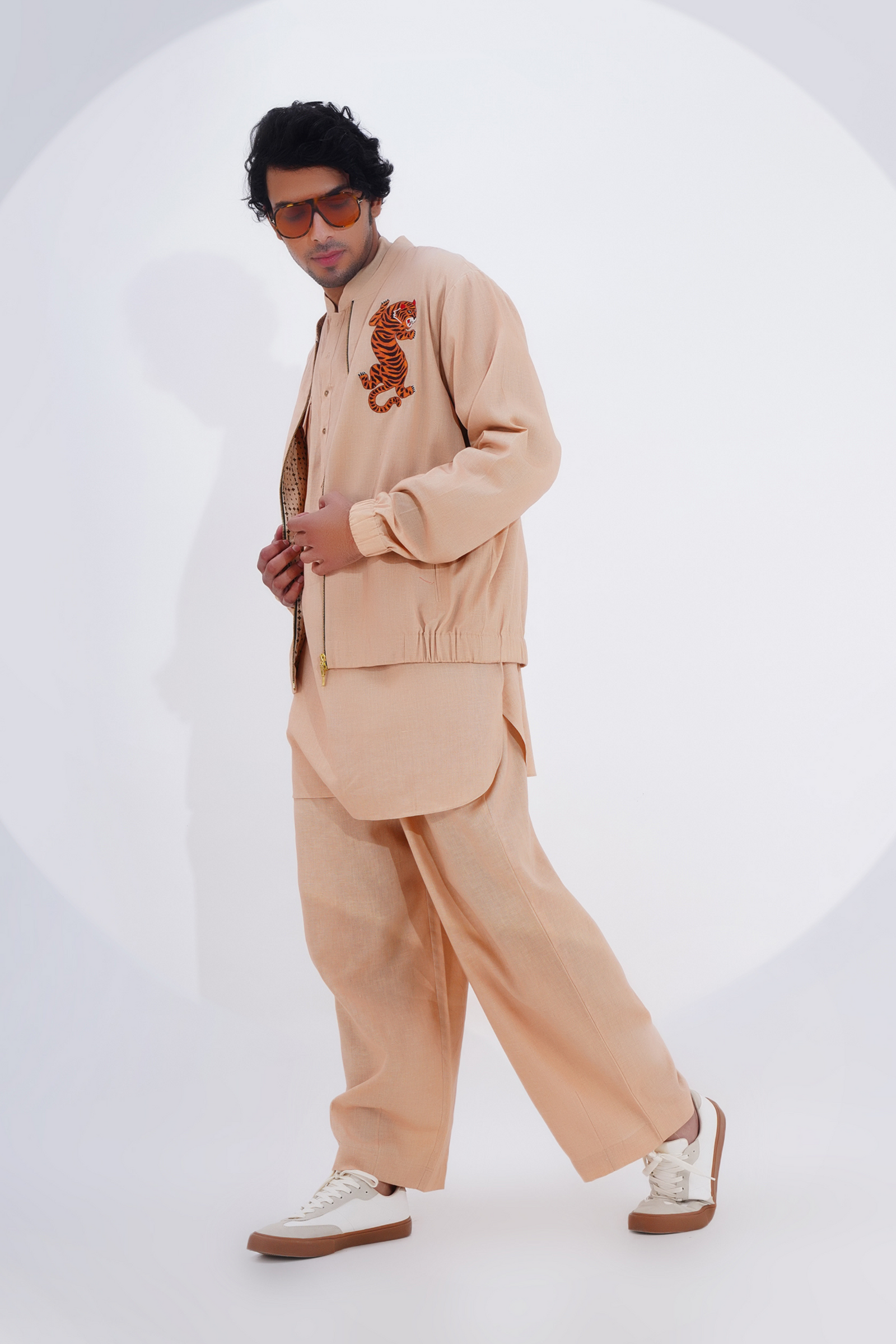 Care: Dry Clean Only. As garments are handmade and handwoven, natural variations in colours and weaves are a characteristic of the textile, and may be found in the finished garments as well.