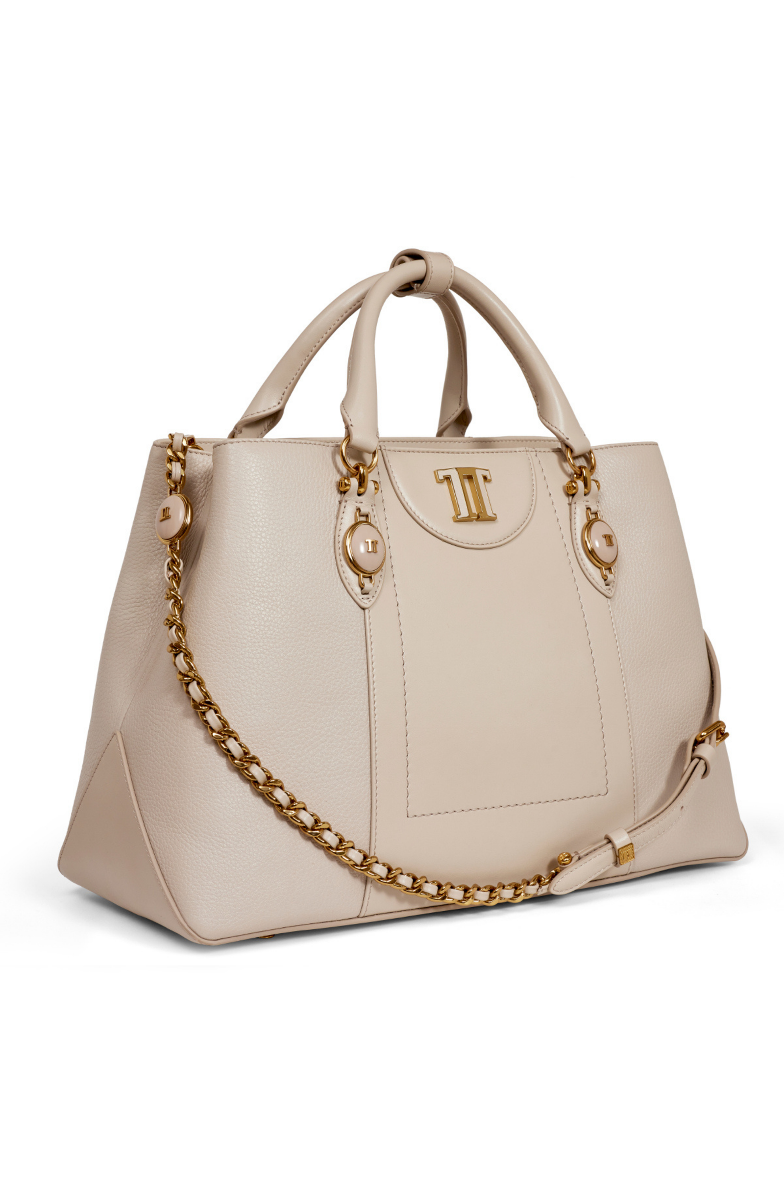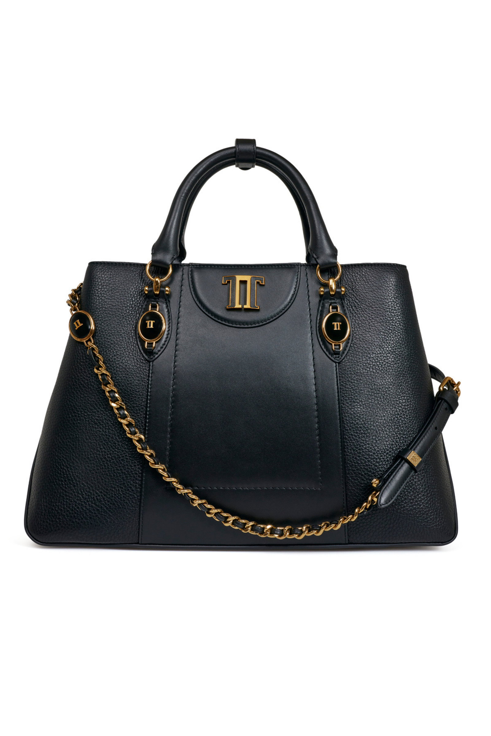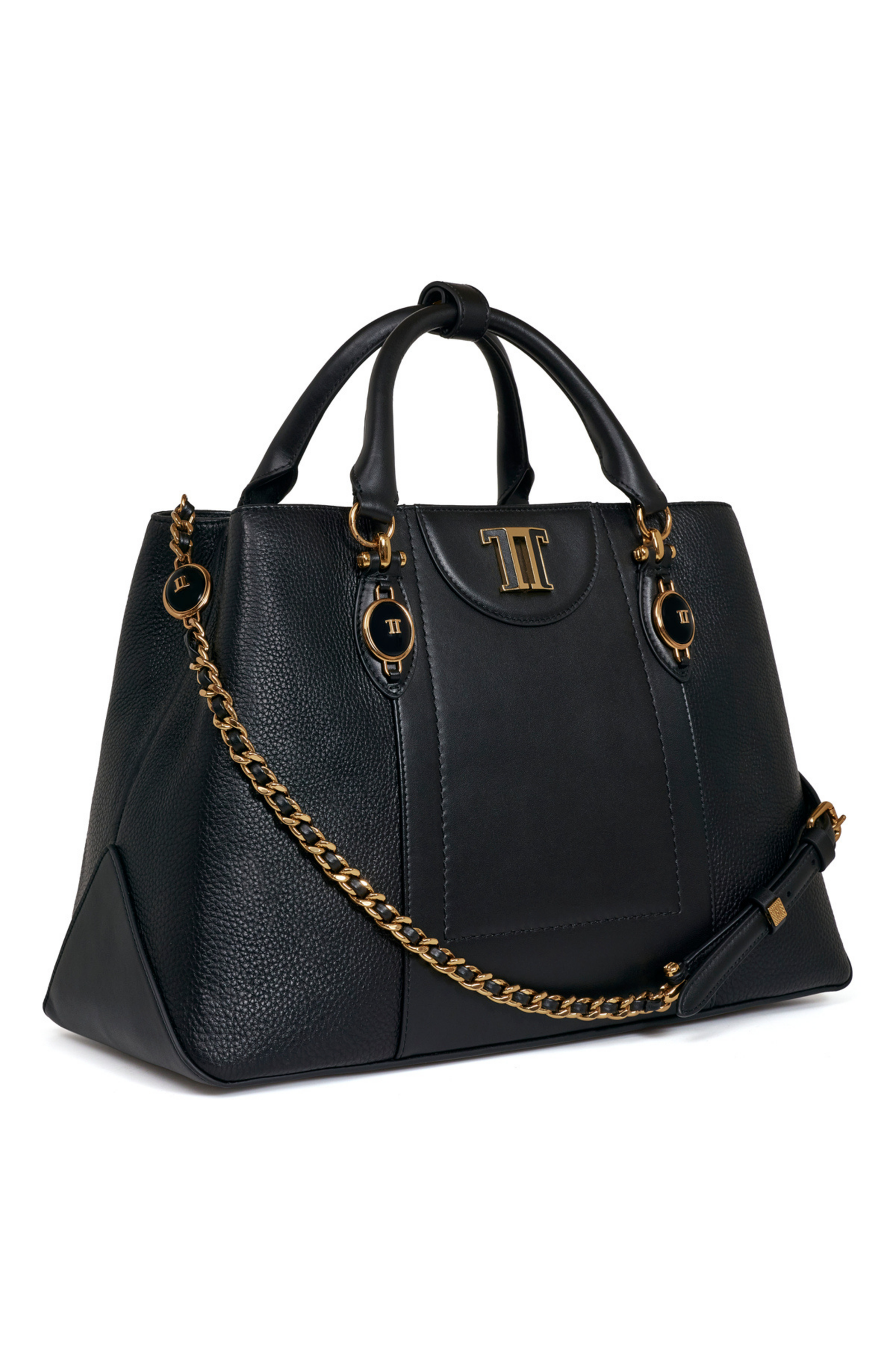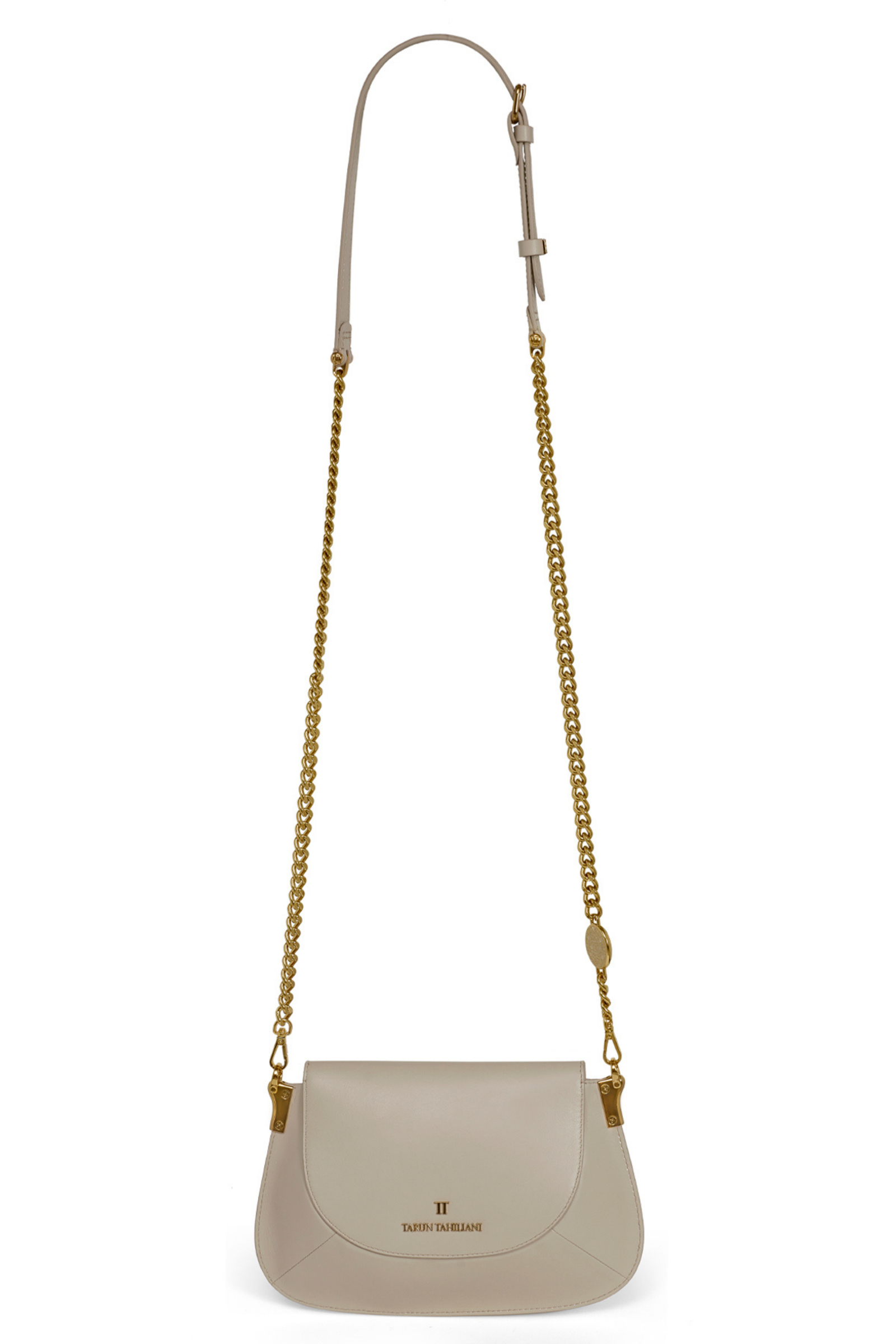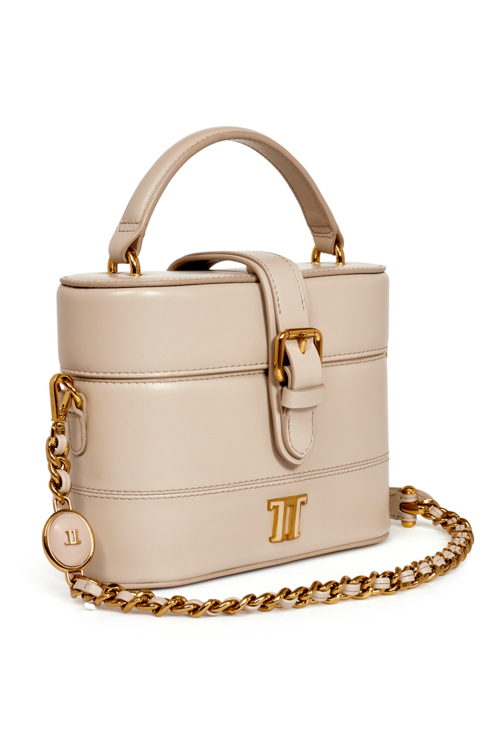 • Highlighted by an uncut green amethyst stone centre with an embossed monogram, the TT crystal gilded belt is set amongst pearl detailing and links around the silhouette to add definition.