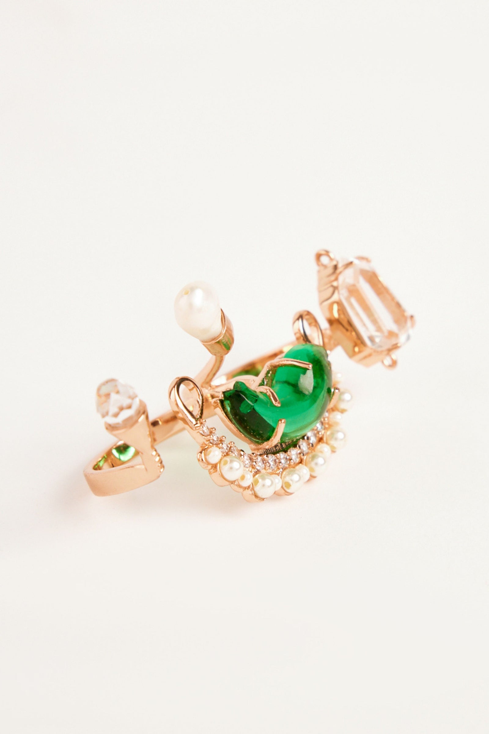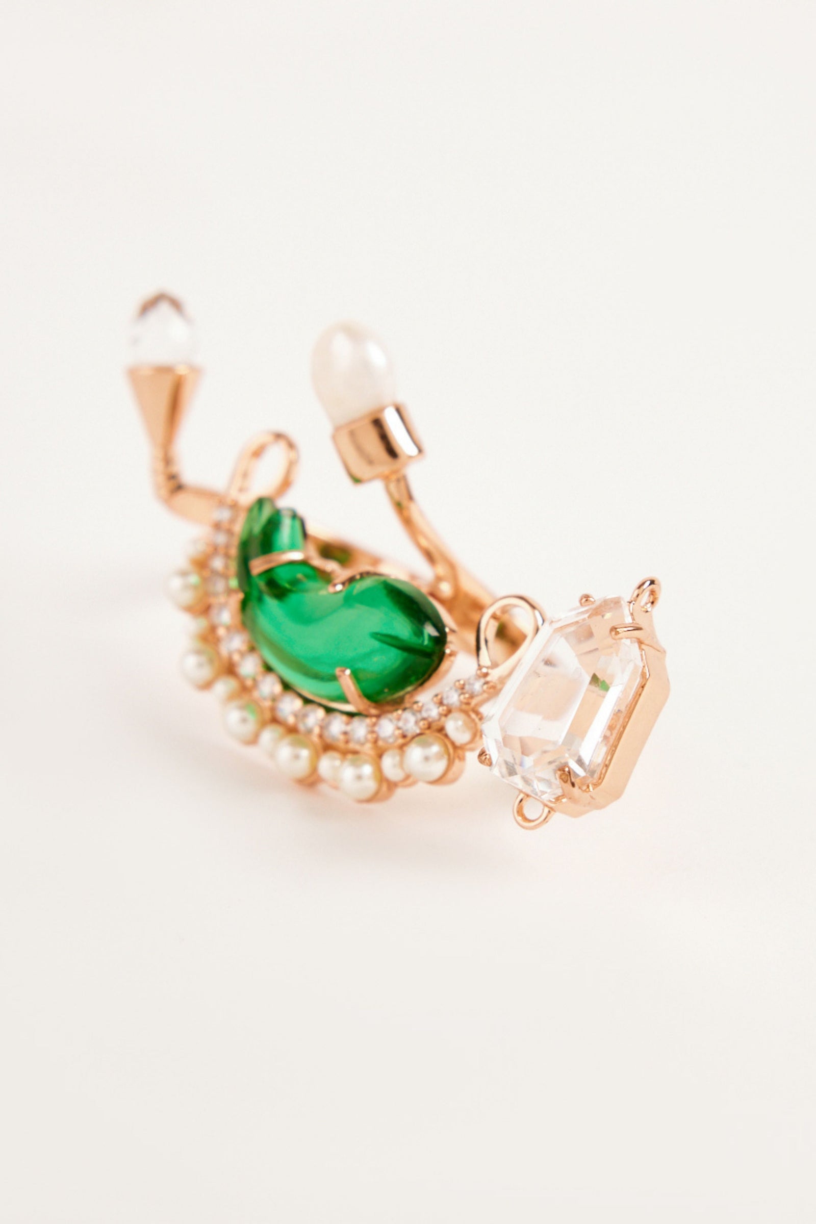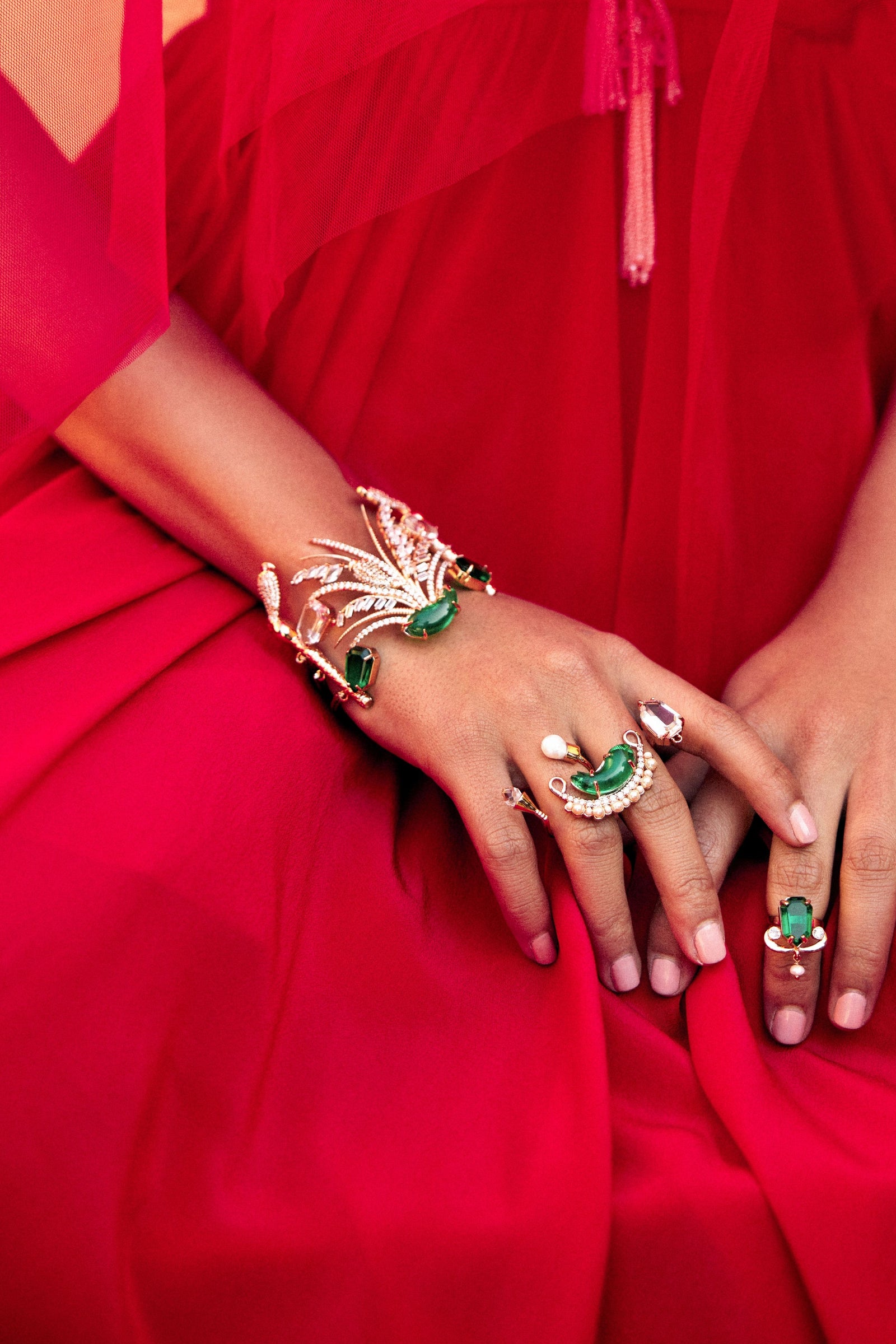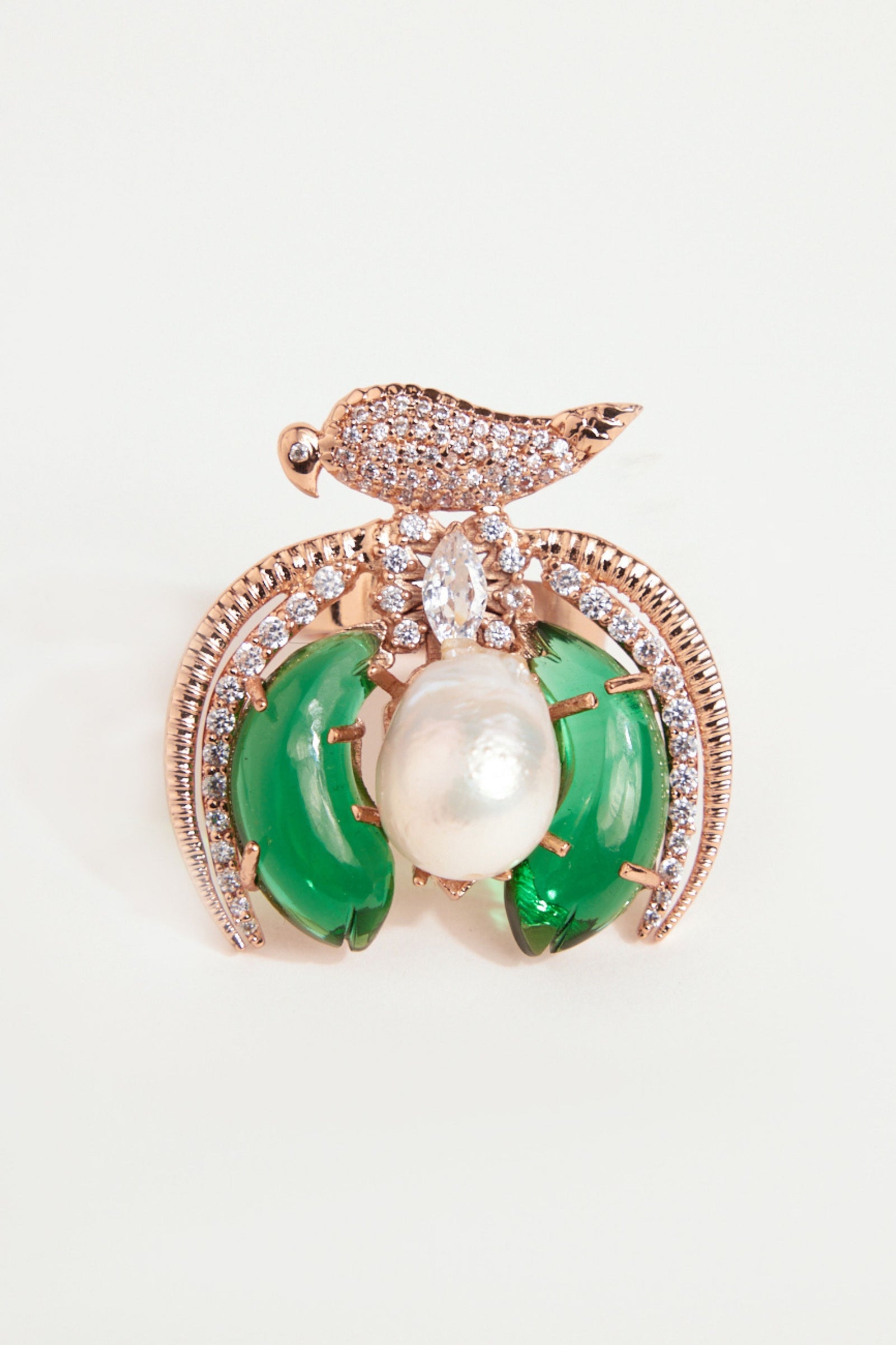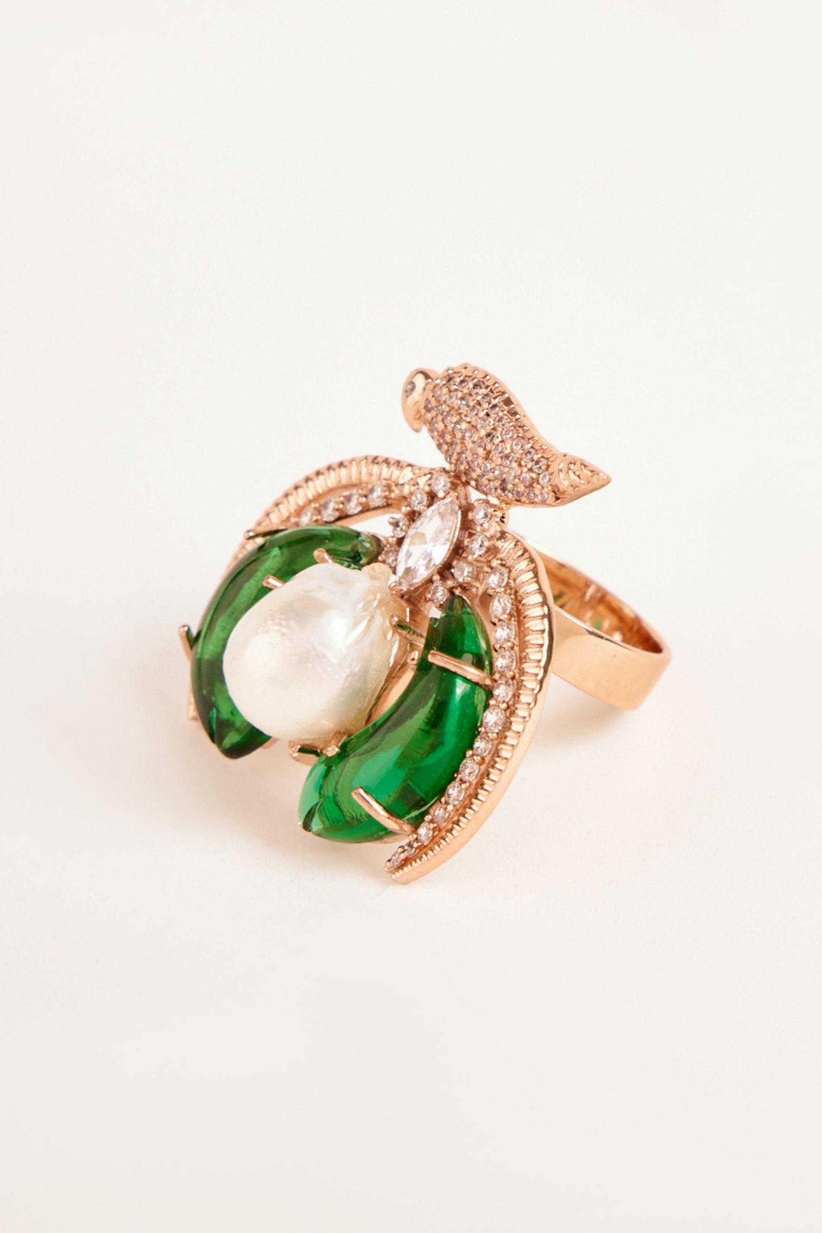 • The the faena free fall earrings is inspired by the leaf of the royal palm and displays seamless symmetry. Extending from this motif, this dome-drop silhouette is encrusted with crystals and a dangling baroque pearl. A true amalgamation of modern and traditional, the pair is lightweight and versatile. It further features multi-sized crystals and cubic zicrons. Finished in 22kt rose gold, the creation can be styled for high-glam occasions as well as casual occasions, offering a delightful range of combinations.
