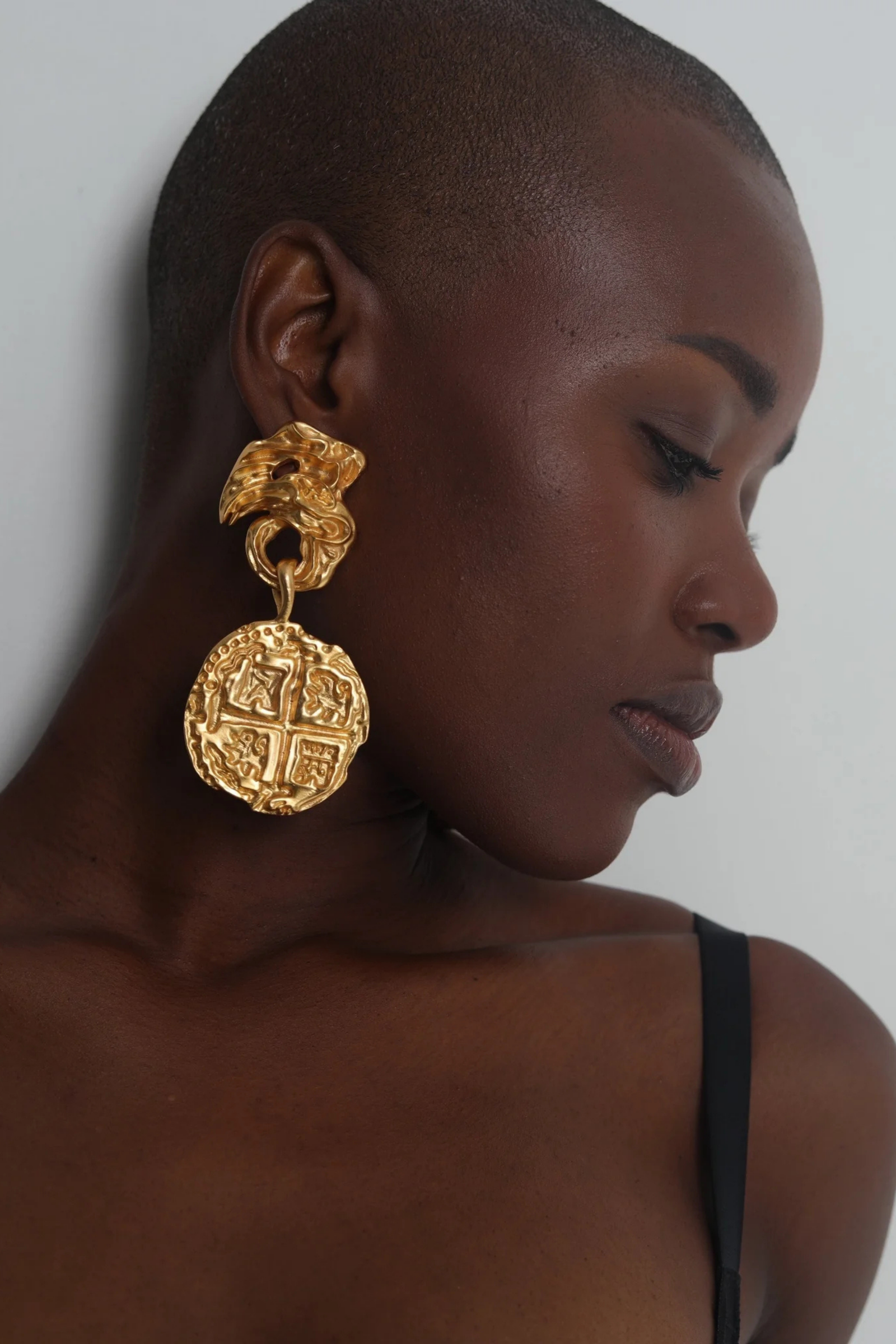 • Introducing statement medallion earrings, carrying a story of achievement or symbolism, woven into their elegant design. Lightweight and elegant, these earrings elevate your style with a touch of charm, as each medallion adds a sophisticated accent to your look.