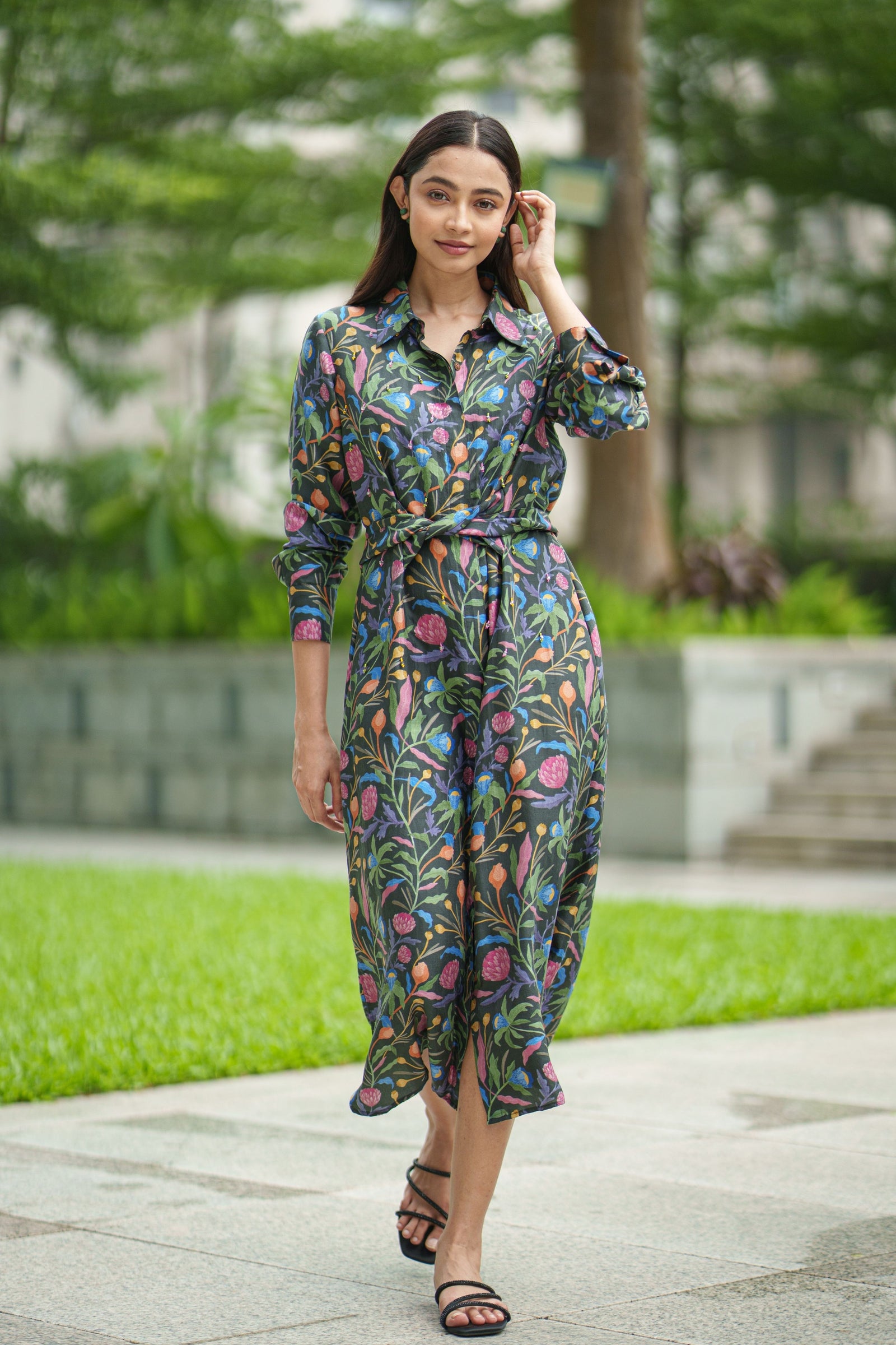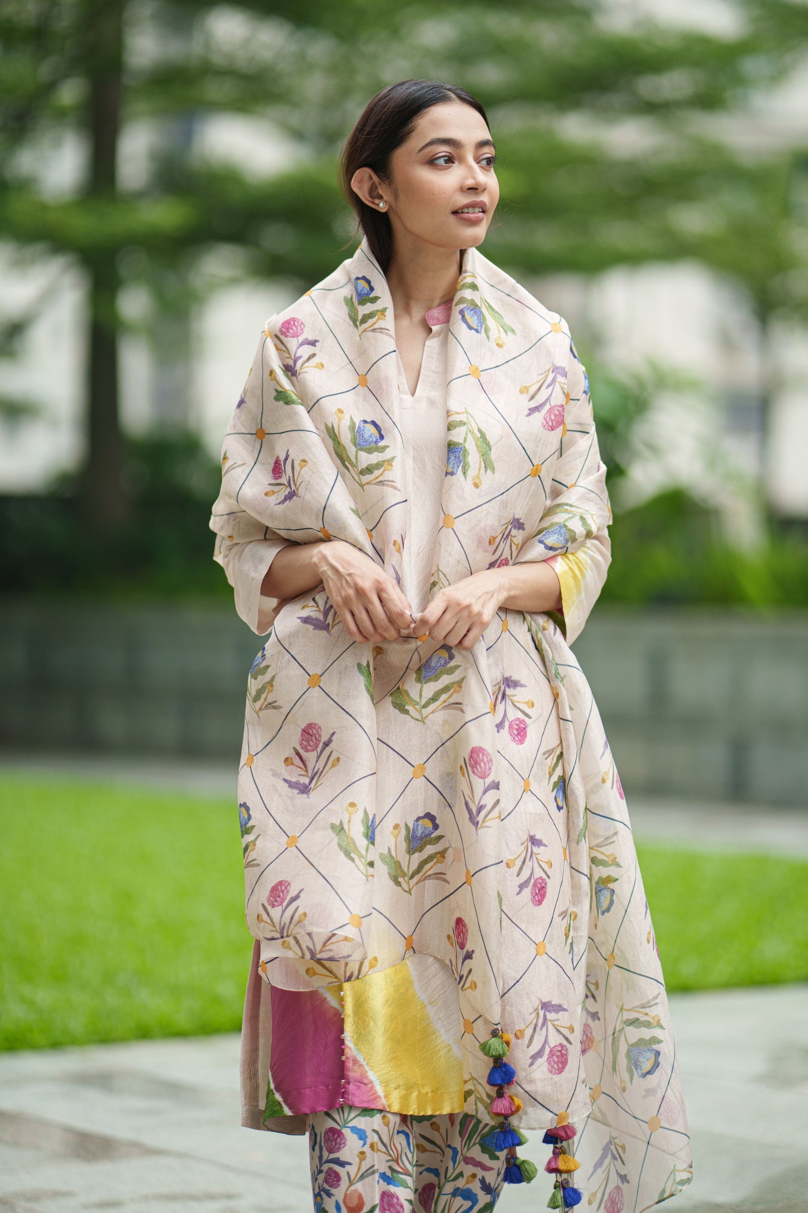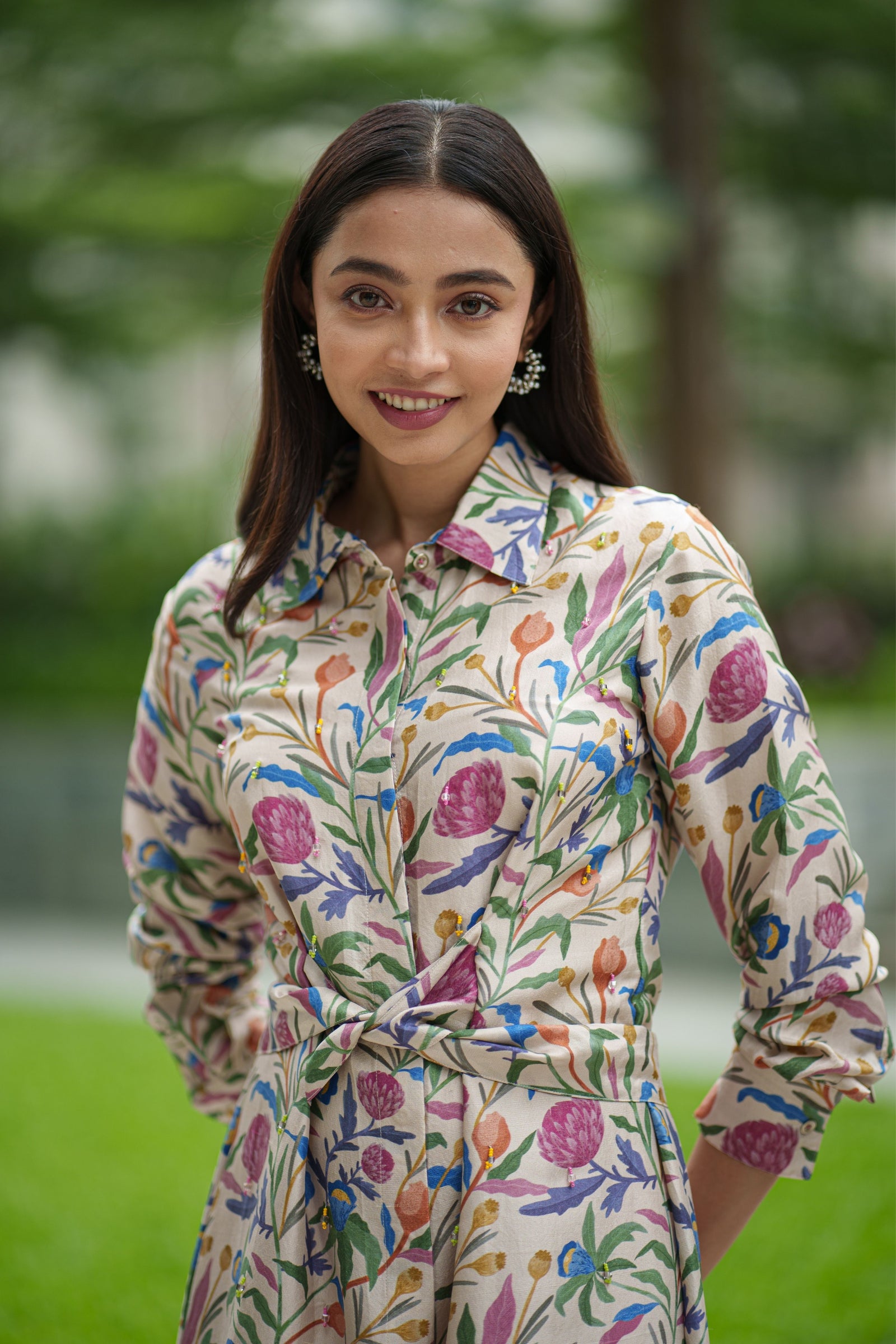 • Our take on the hottest new trend, co-ord sets- This gather top set is our newest launch and is going be the perfect go-to piece for every occasion. Crafted in buttery muslin and the universal favourite multi colour ikat print. Paired with our plain blue pants in the same fabric, it’ll take you from the boardroom to the dance floor without breaking a sweat