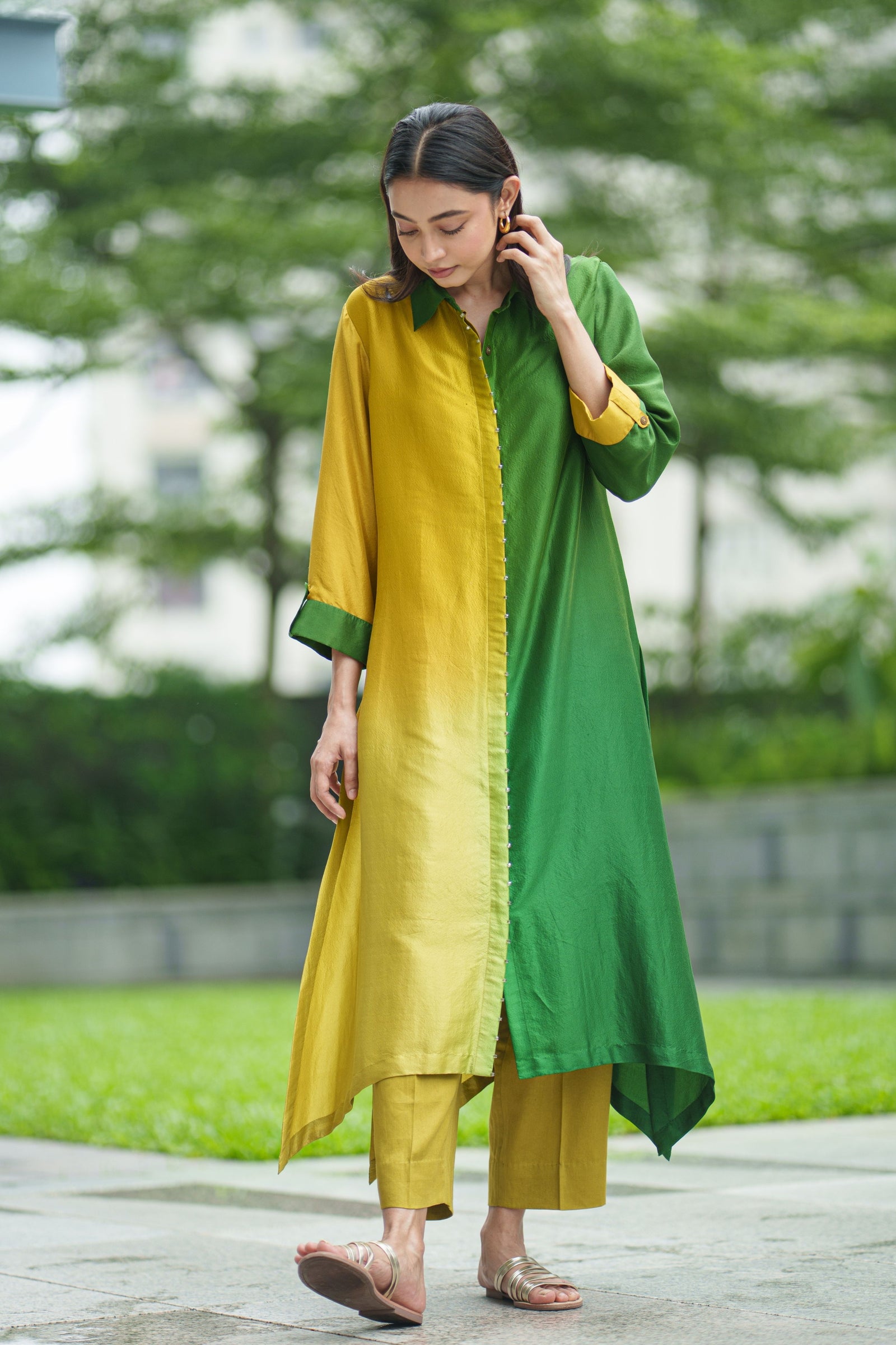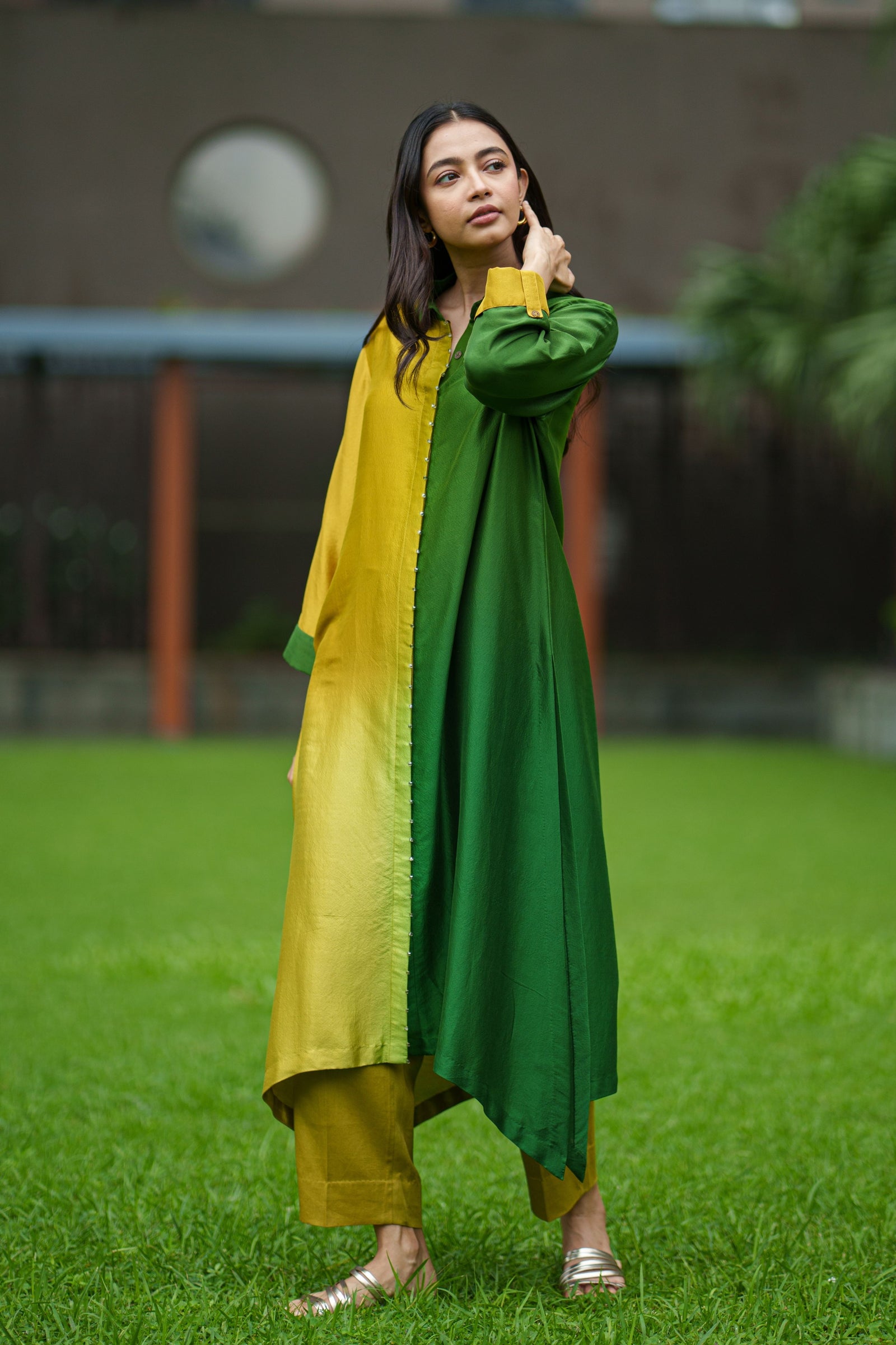 Care: Dry Clean Only. As garments are handmade and handwoven, natural variations in colours and weaves are a characteristic of the textile, and may be found in the finished garments as well.