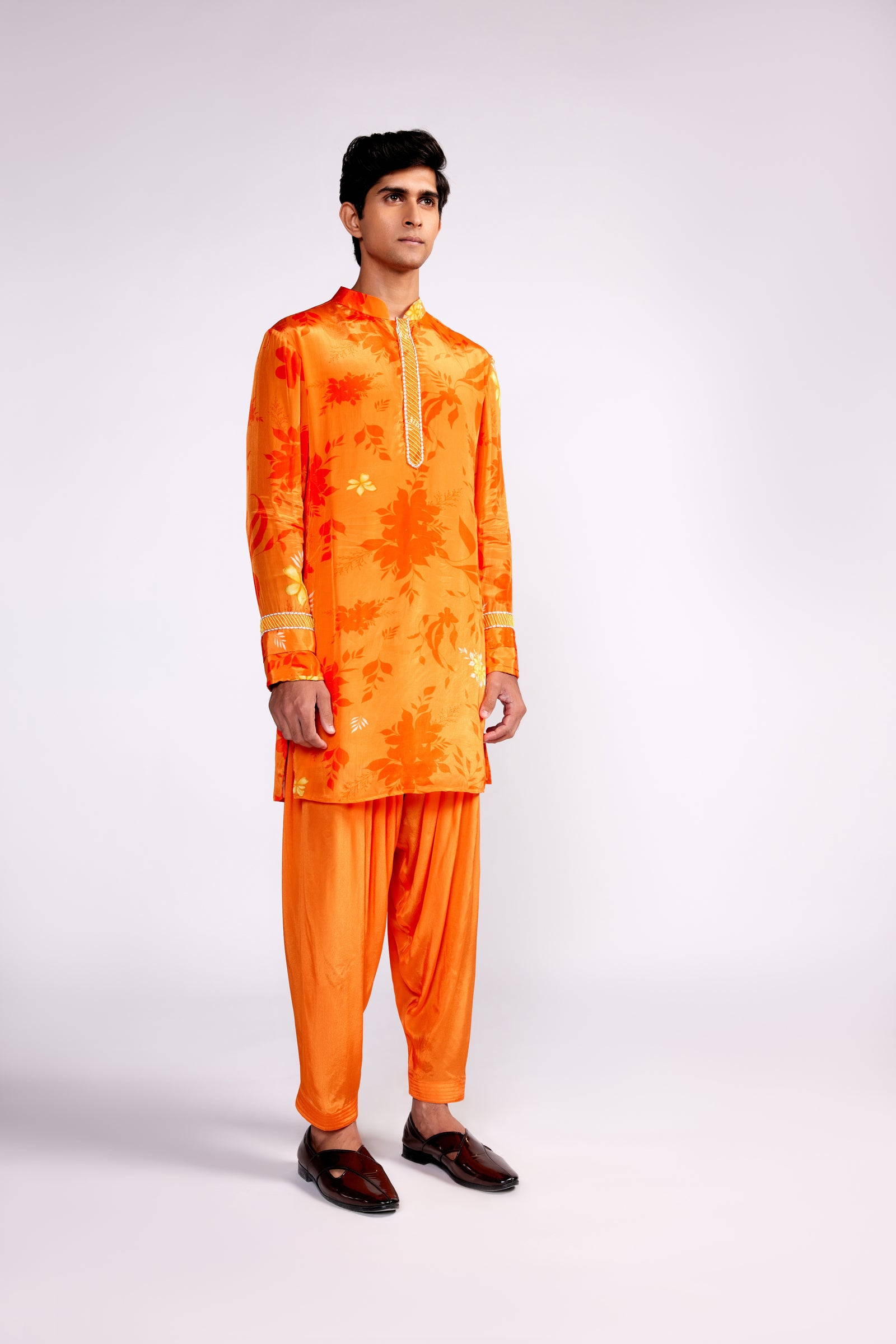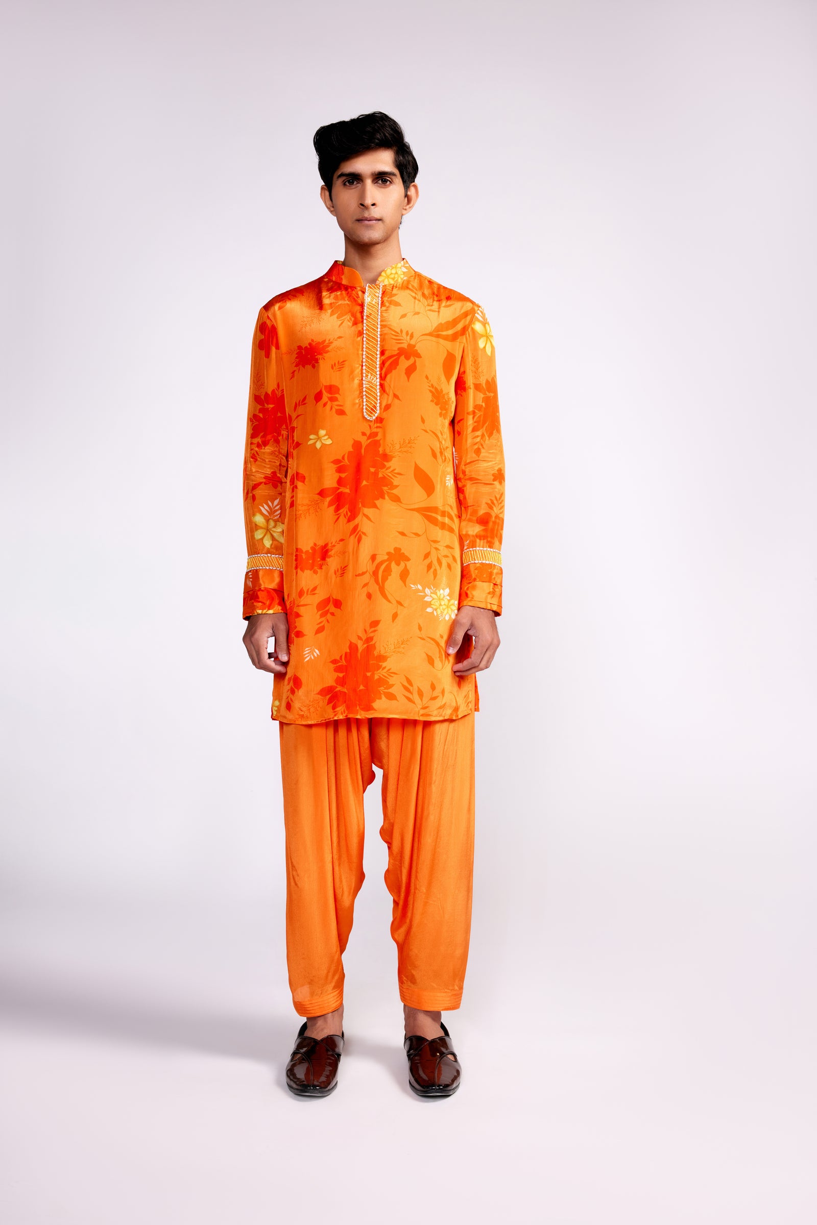 Orange Floral Printed Kurta