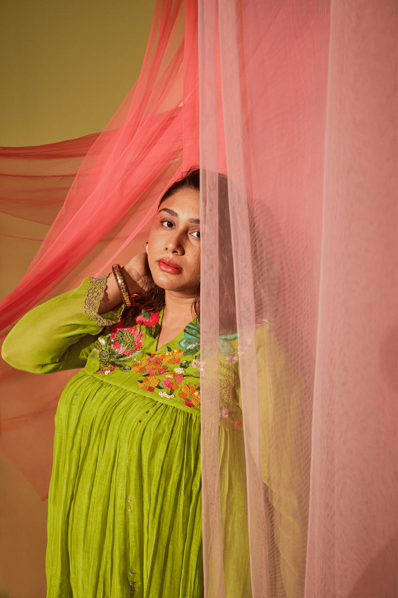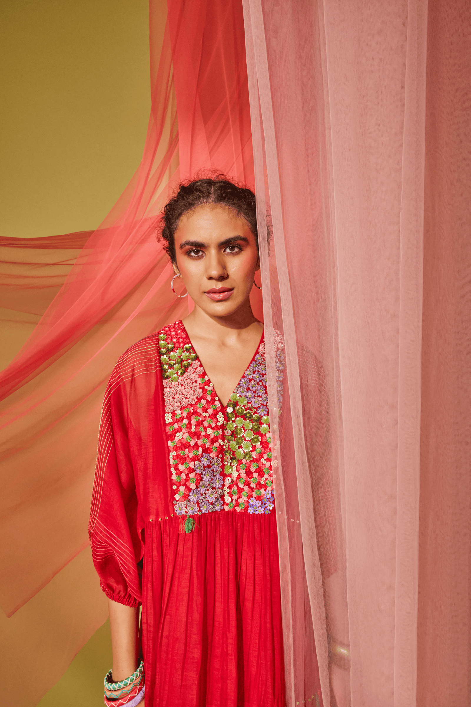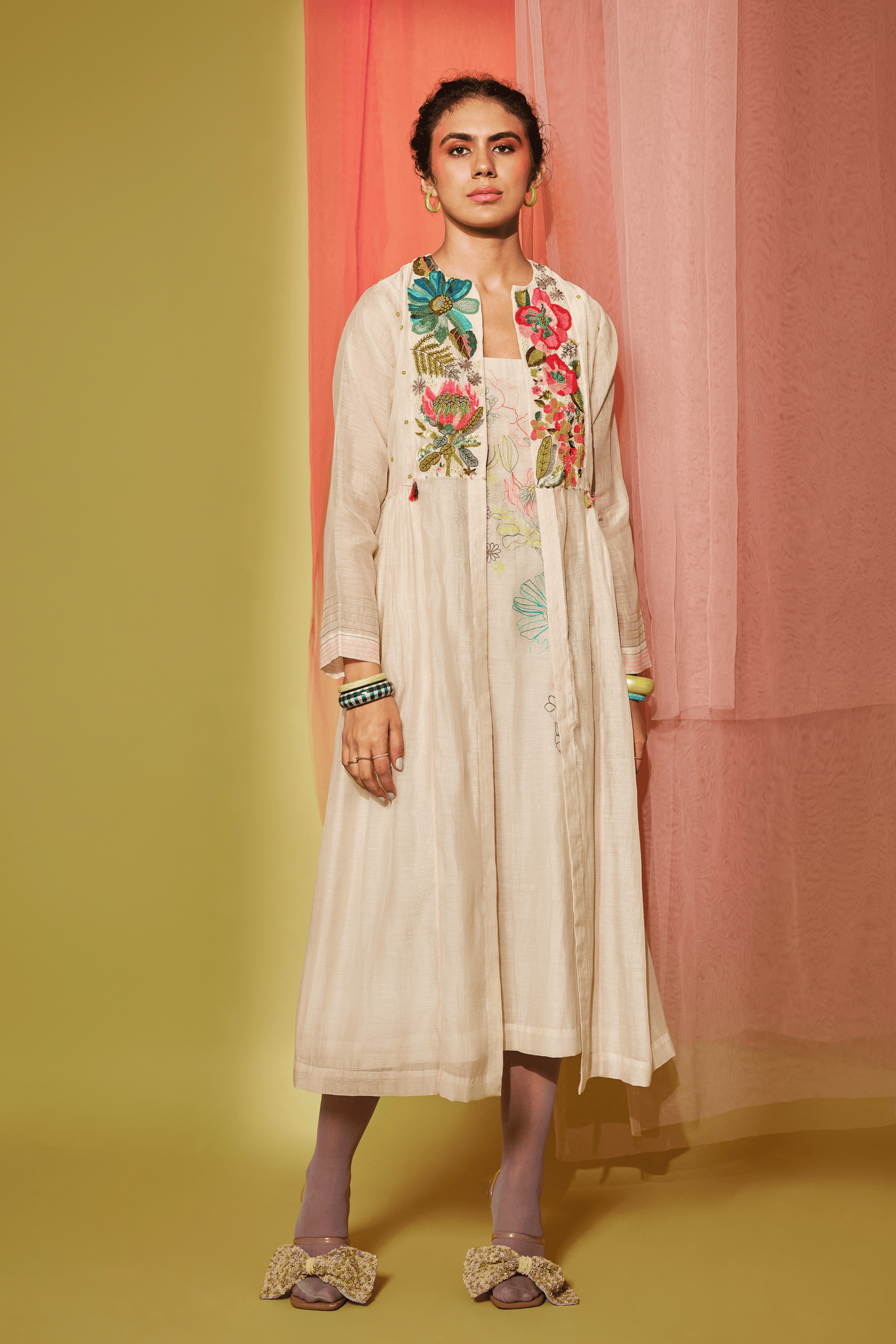 Care: Dry Clean Only. As garments are handmade and handwoven, natural variations in colours and weaves are a characteristic of the textile, and may be found in the finished garments as well.