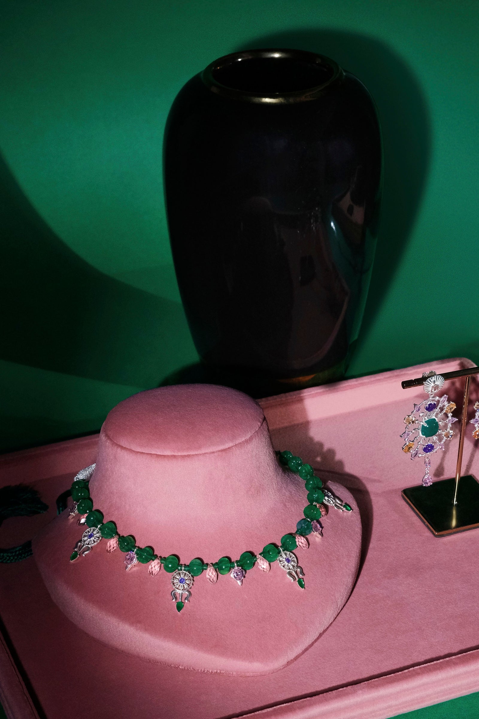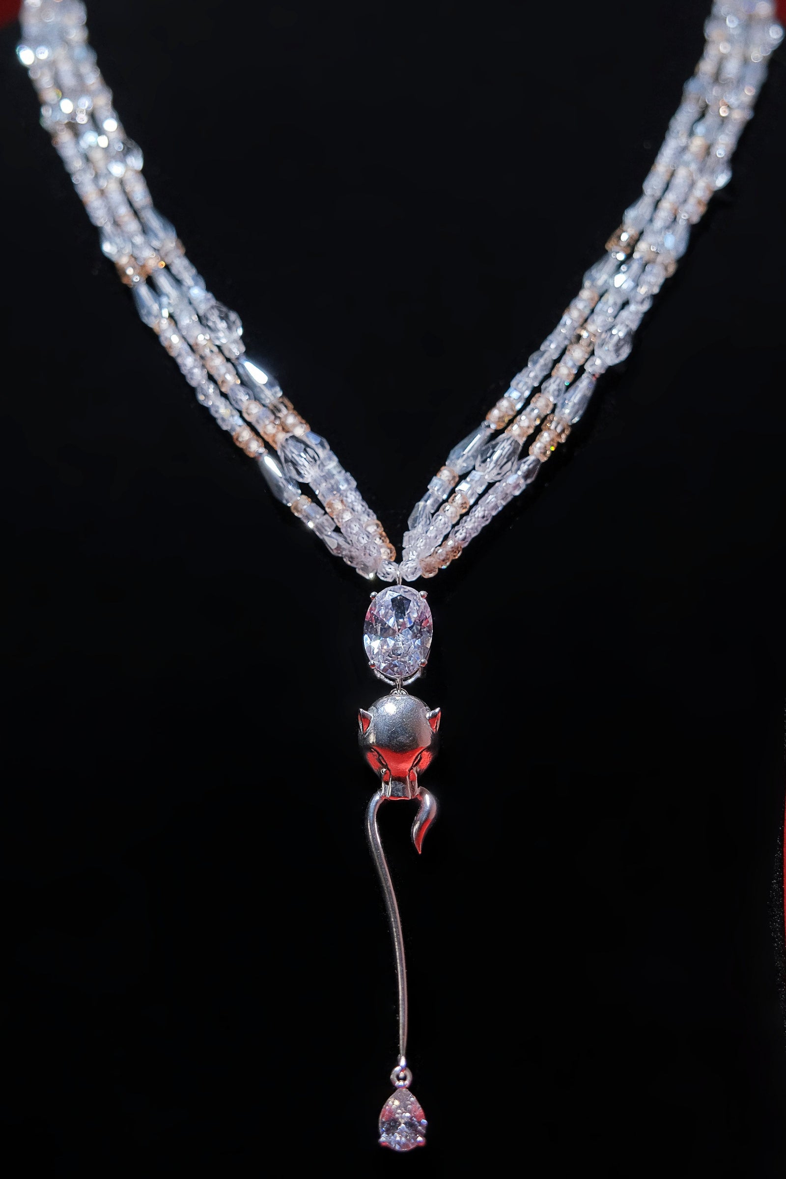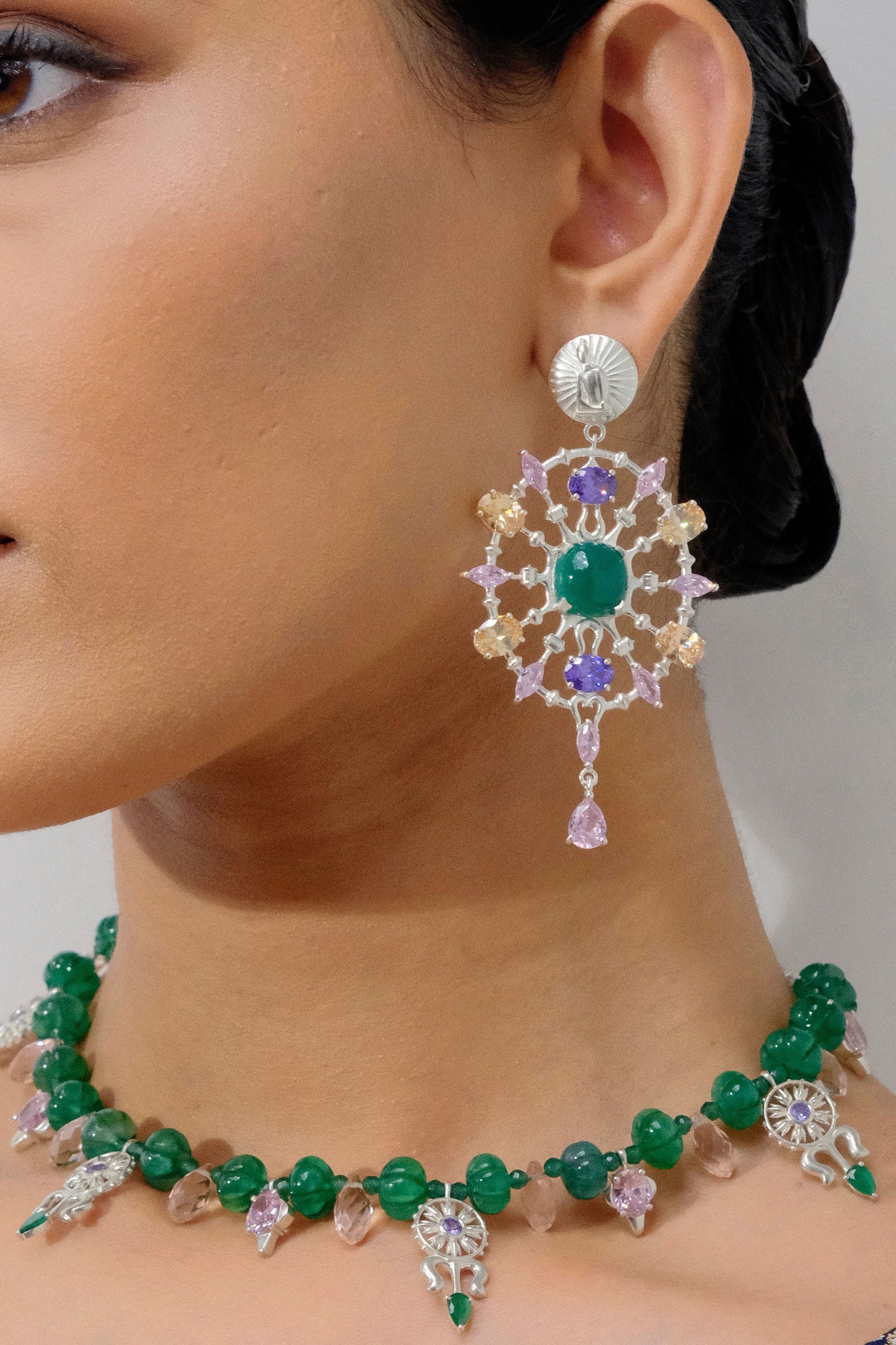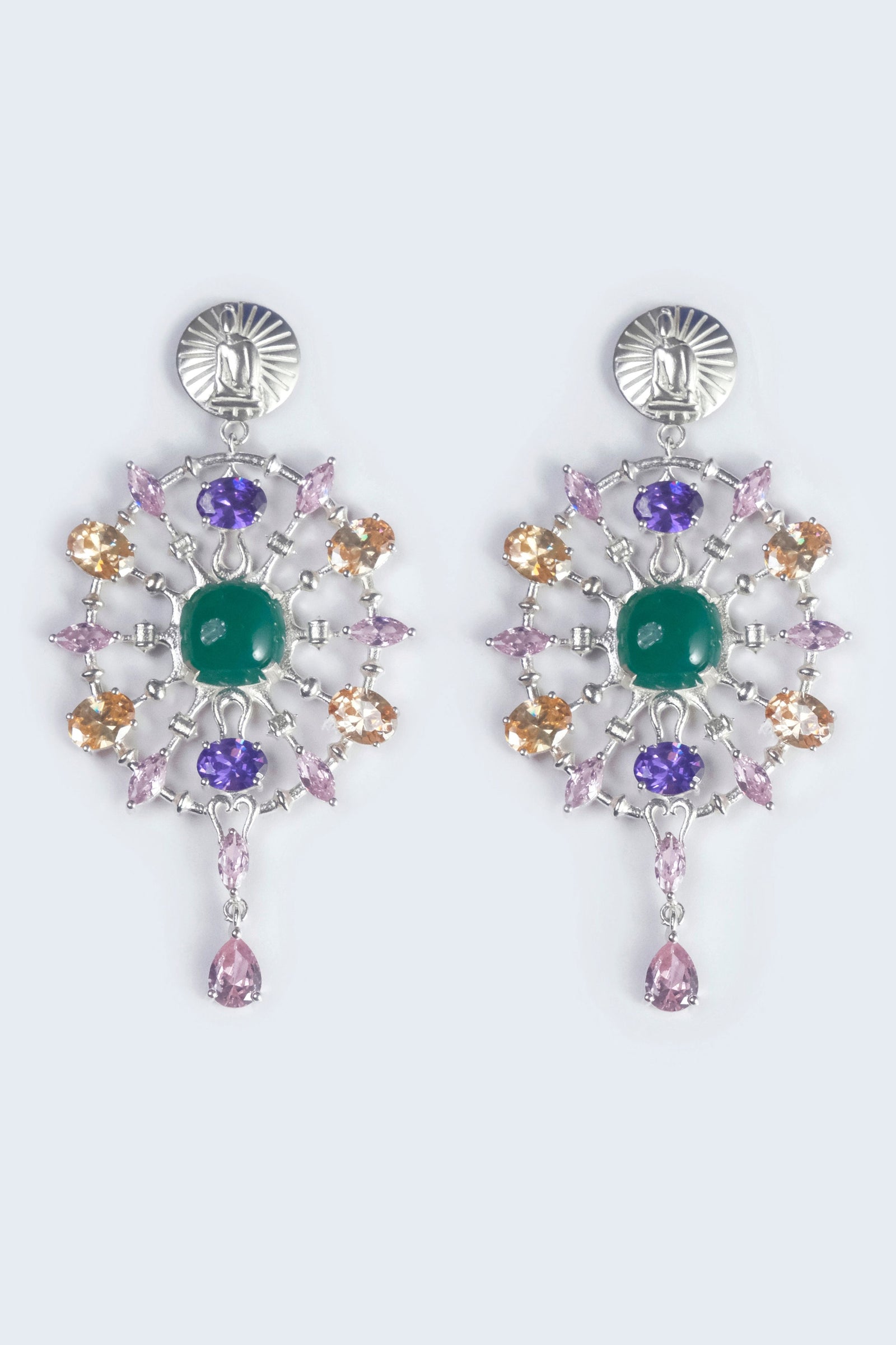 • A dazzling purple crystal sits proudly on a sublime platform, just like a mausoleum sitting on its bed of marble. Carefully engraved apara disum brand logo further adds grace and allure to this minimalistic pendant.