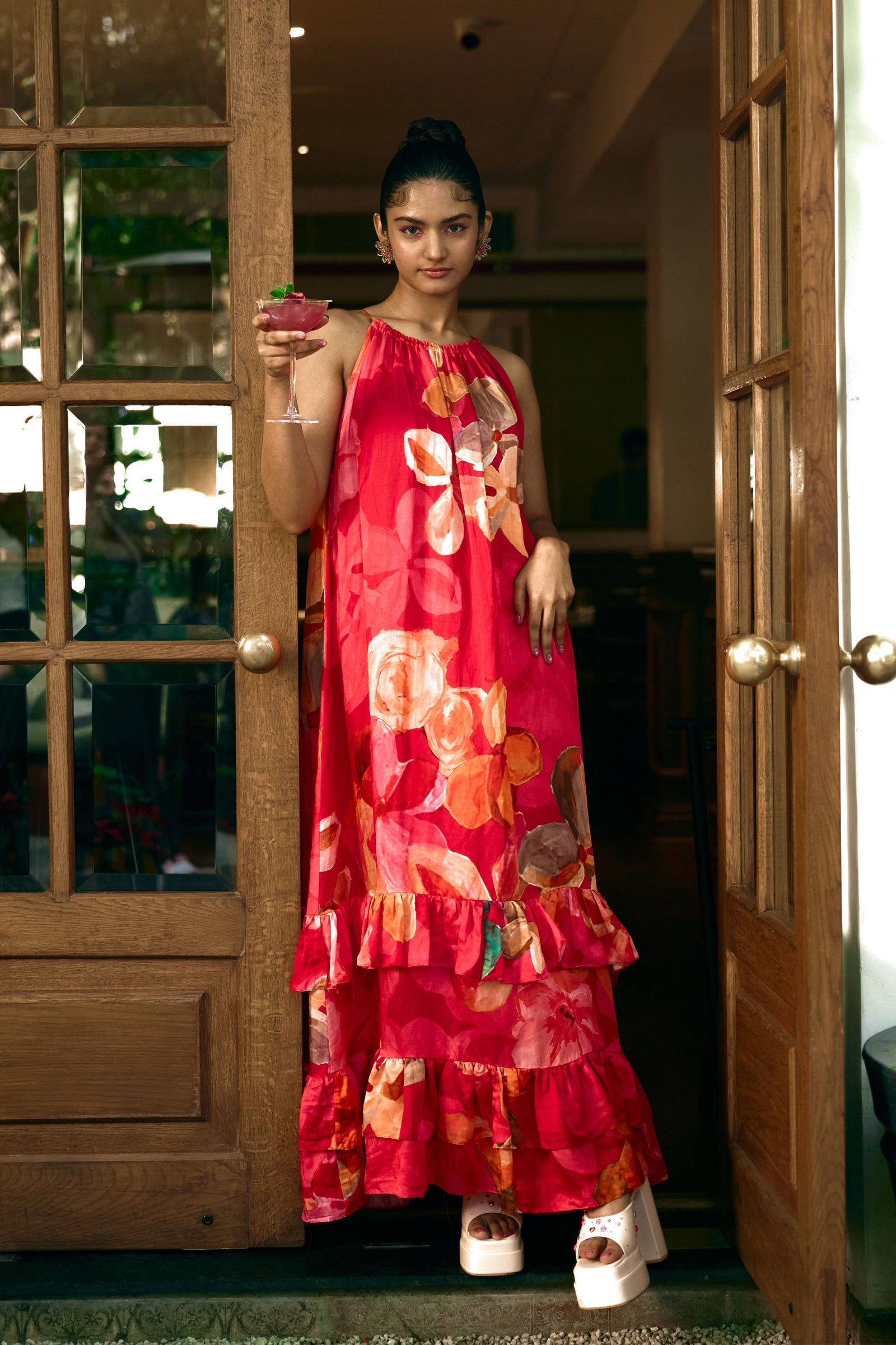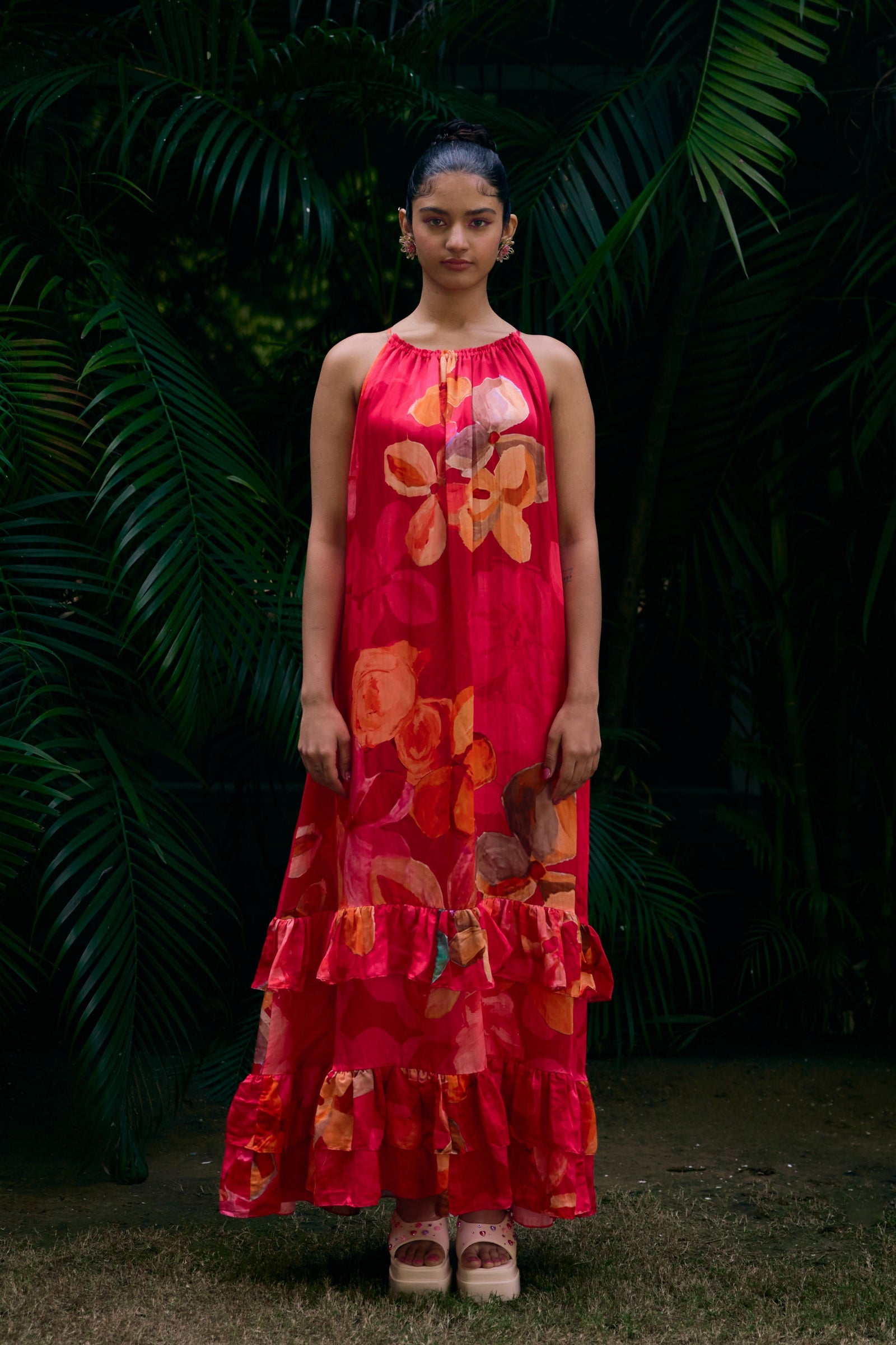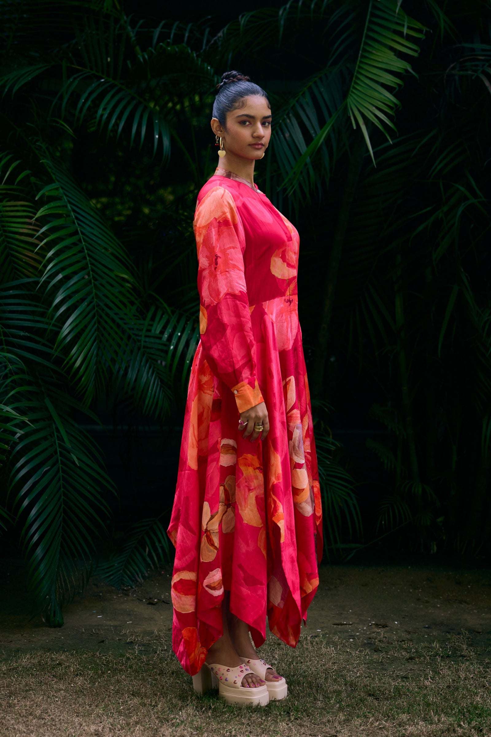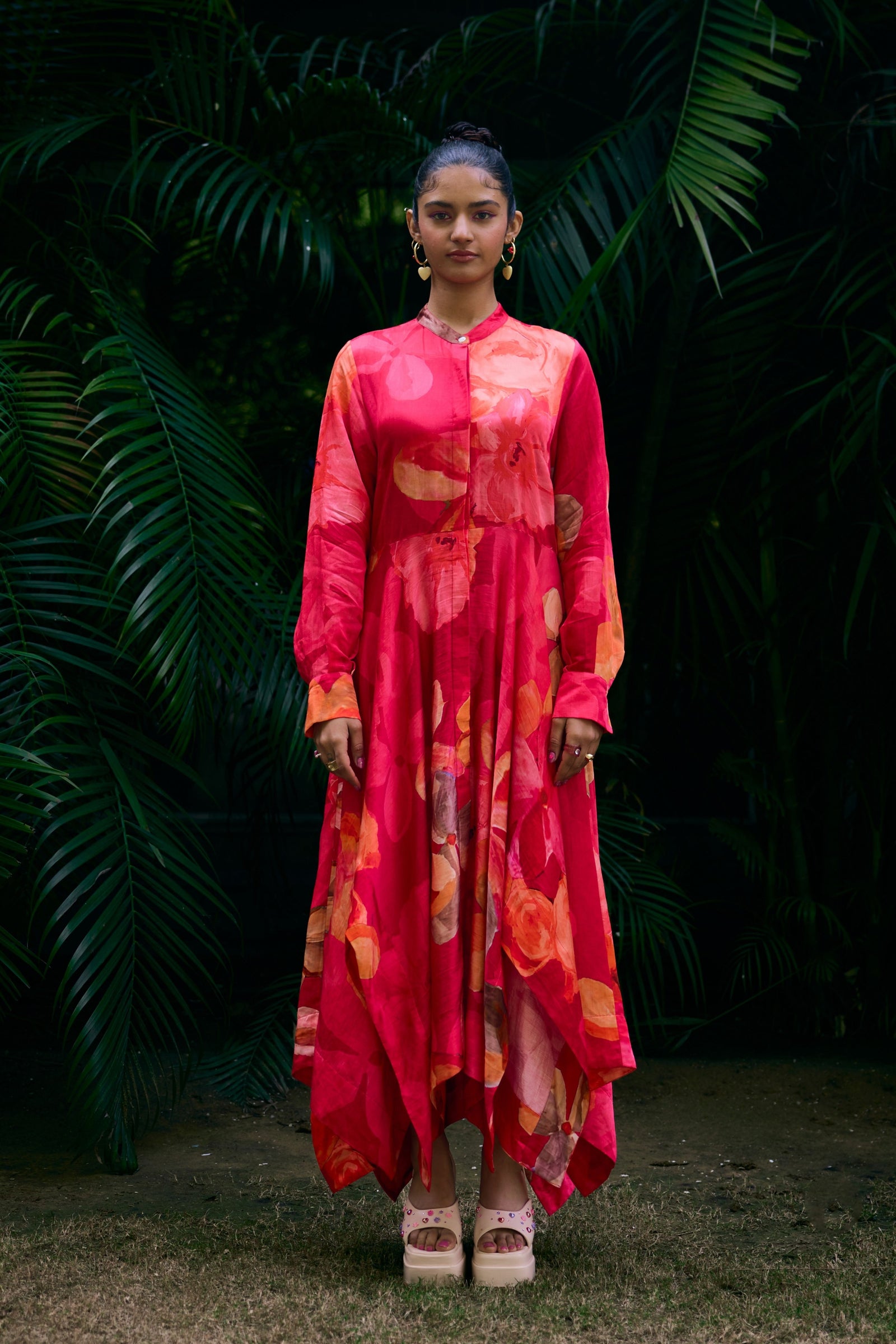 • The Pink Linen Satin Kaftan Set in Mulitihued Print highlights effortless elegance with its relaxed short kaftan and wide-leg pants. The abstract motifs add a dynamic touch, enhancing the linen satinÆs sheen. A refined choice for getaways.