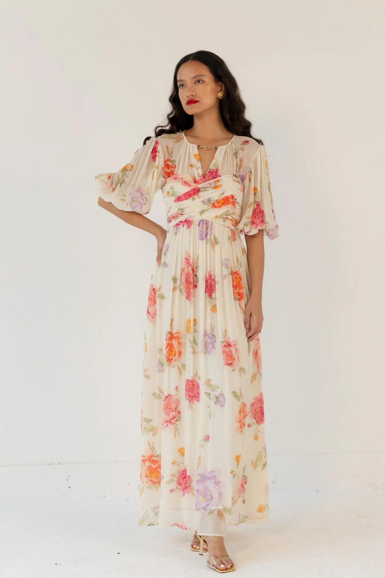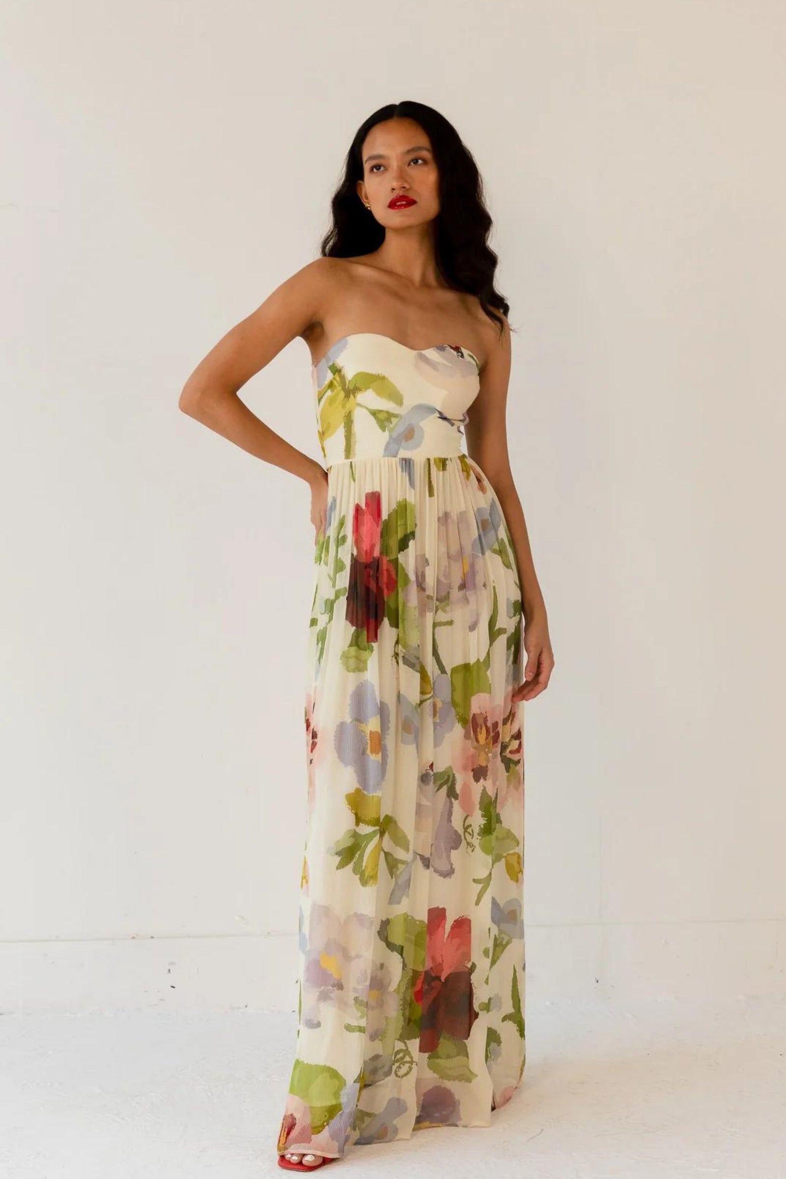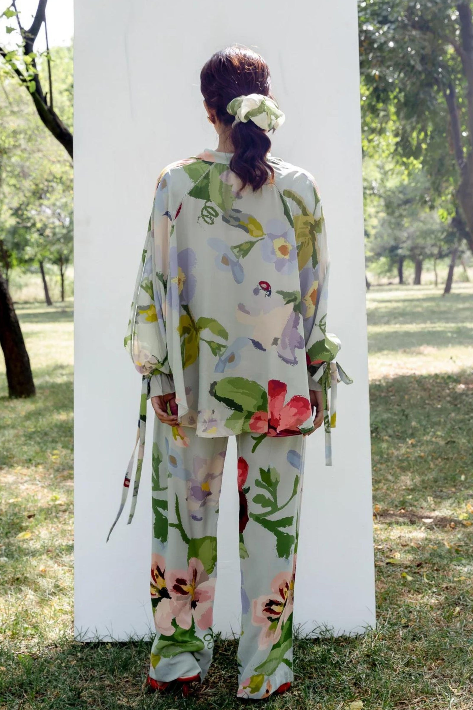 • This floral structured corset made in our hidden treasures print is a great piece to style with your trousers or skirt. 10 Inches in length. Smocking detail in back to allow ease. Side double sided brass zip closure