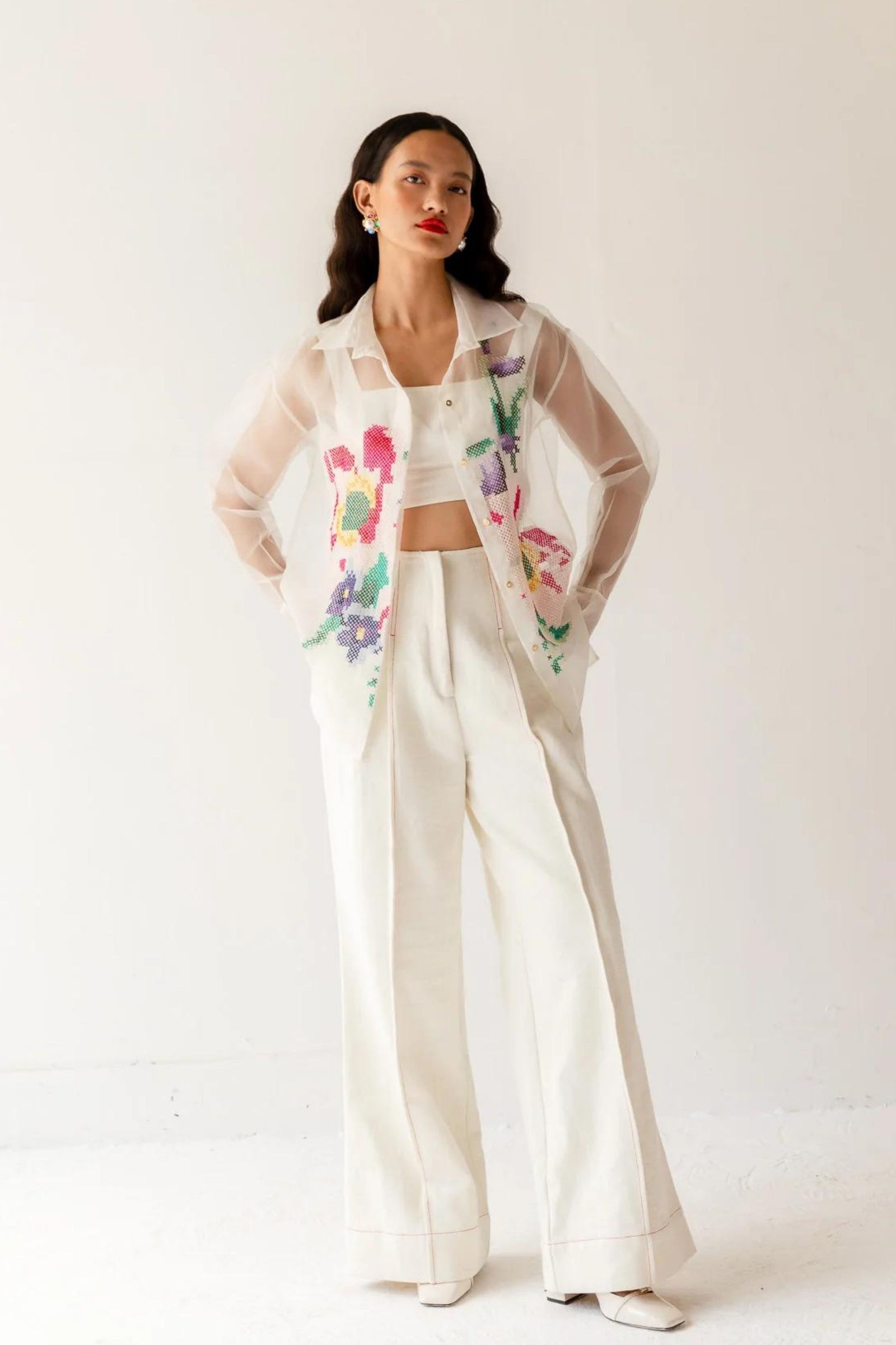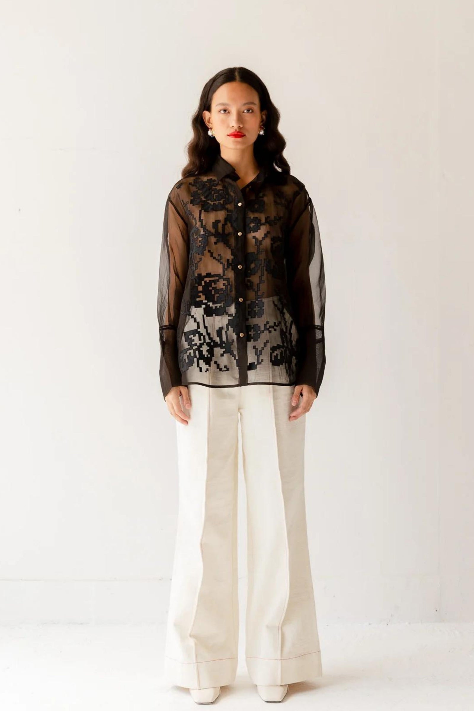 Care: Dry Clean Only. As garments are handmade and handwoven, natural variations in colours and weaves are a characteristic of the textile, and may be found in the finished garments as well.