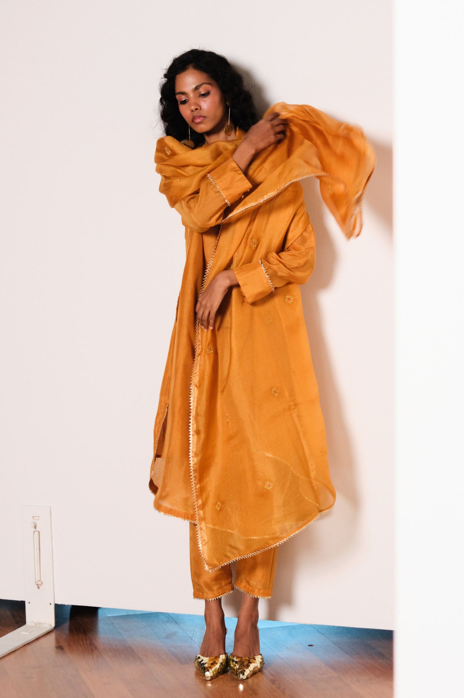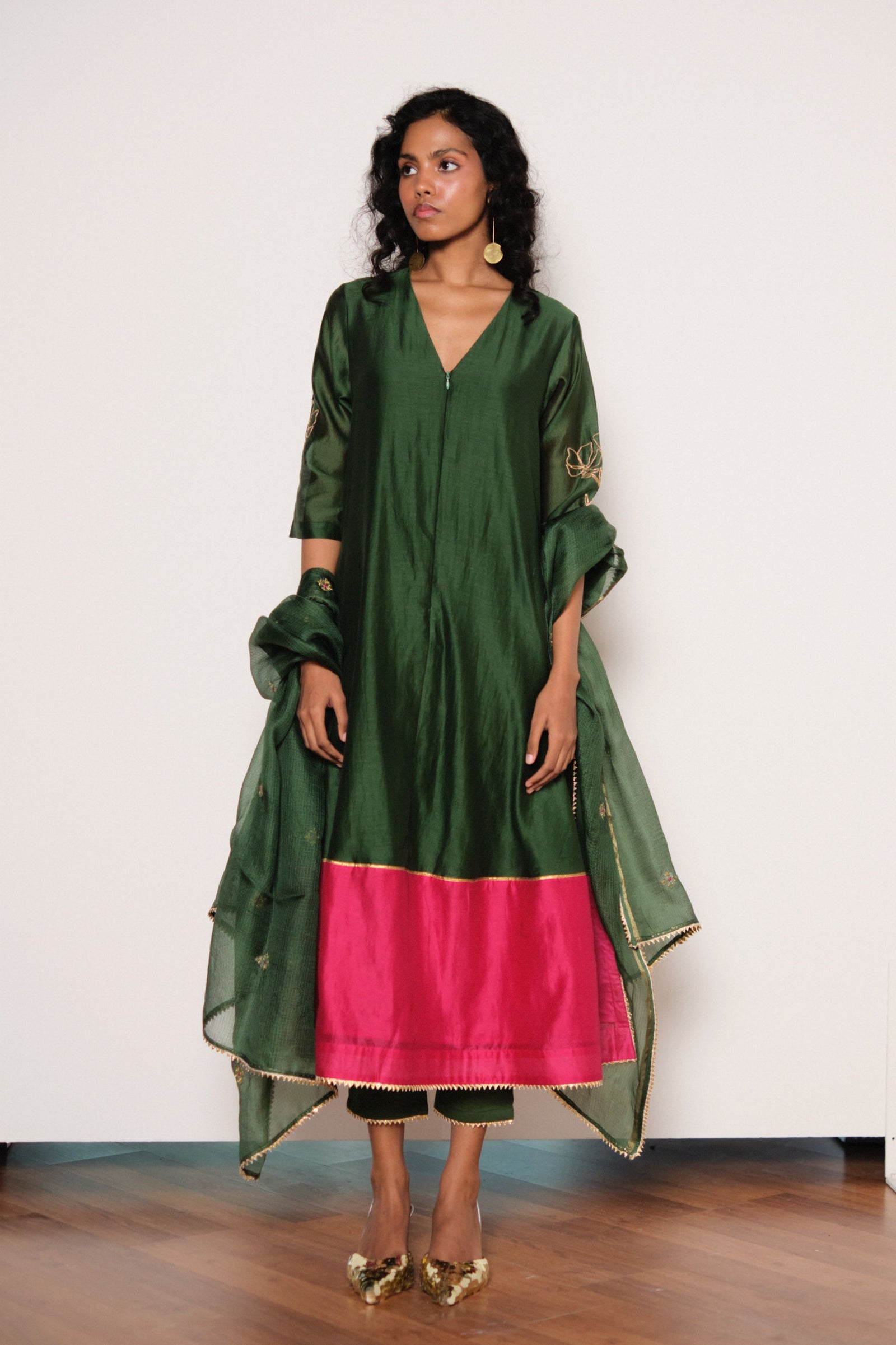 Care: Dry Clean Only. As garments are handmade and handwoven, natural variations in colours and weaves are a characteristic of the textile, and may be found in the finished garments as well.