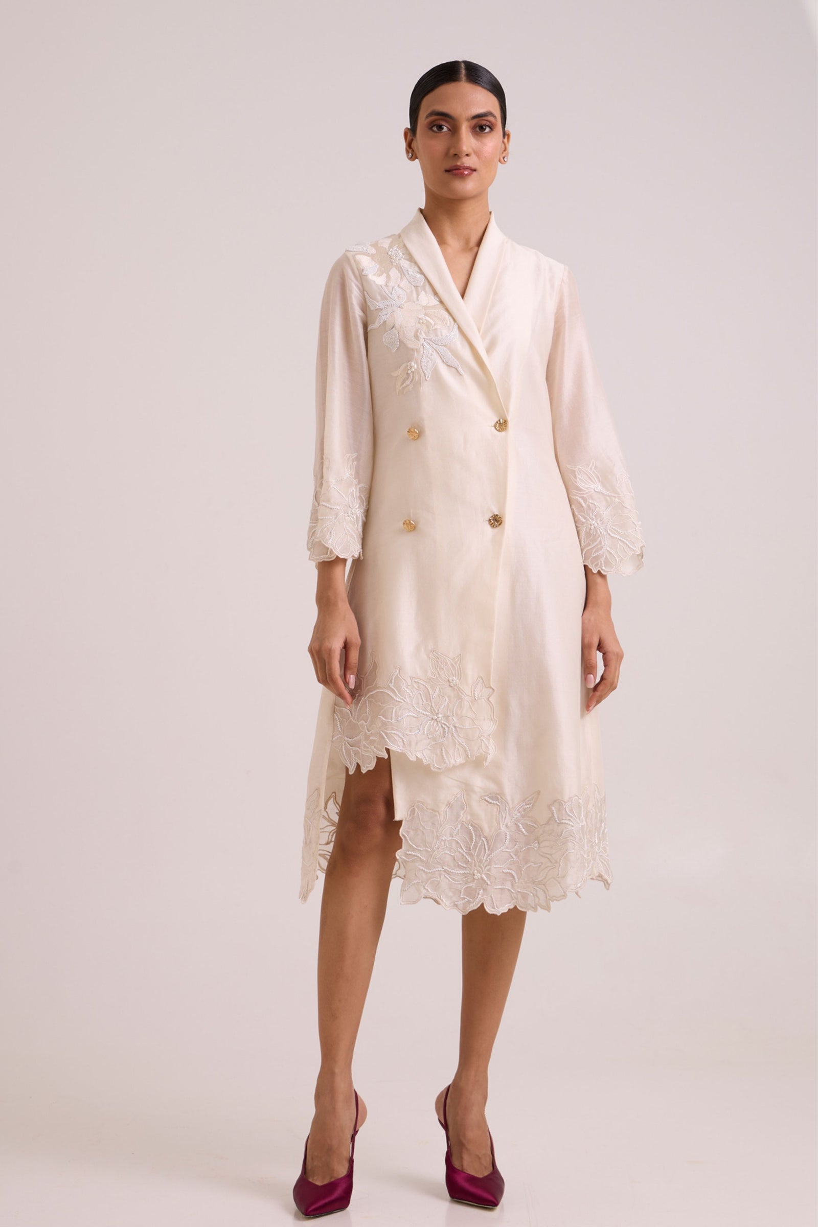 Care: Dry Clean Only. As garments are handmade and handwoven, natural variations in colours and weaves are a characteristic of the textile, and may be found in the finished garments as well.