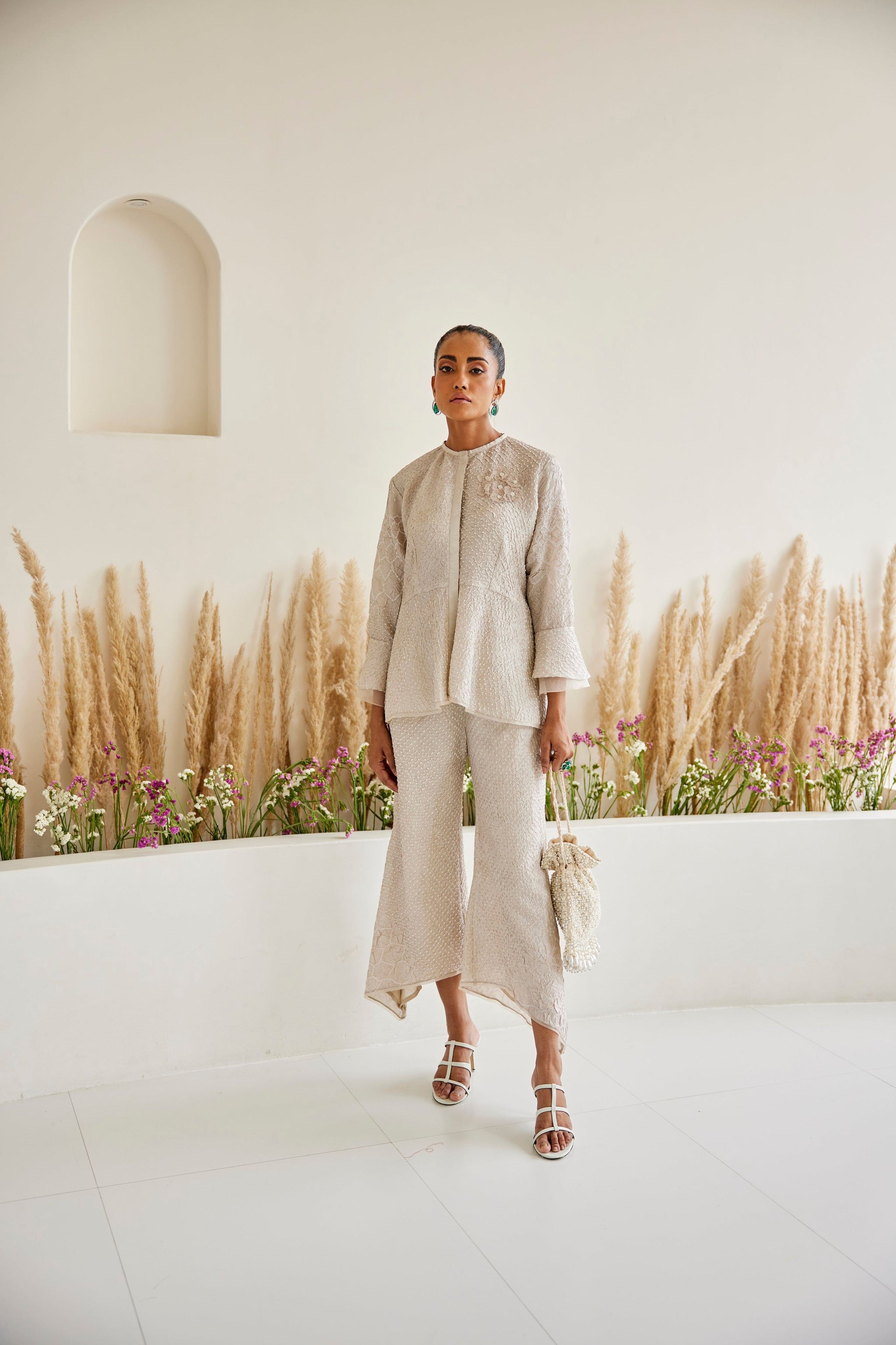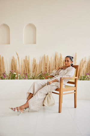 Care: Dry Clean Only. As garments are handmade and handwoven, natural variations in colours and weaves are a characteristic of the textile, and may be found in the finished garments as well.