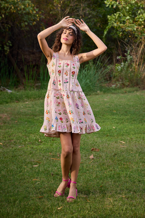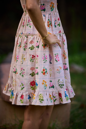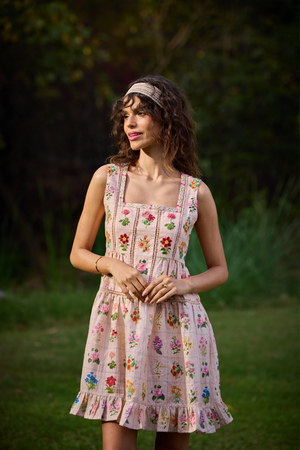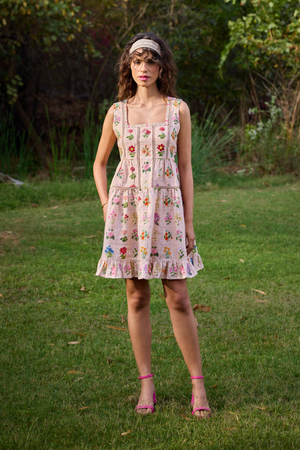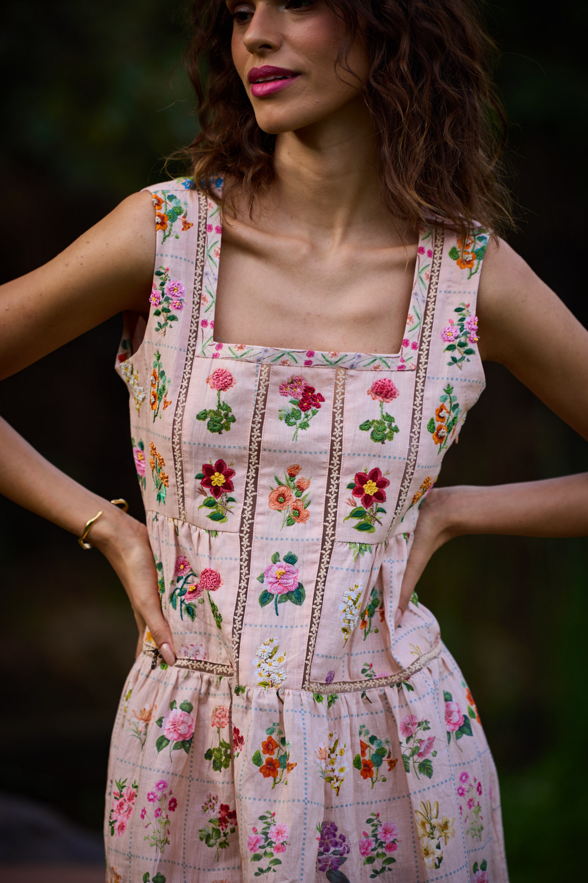 • Selected from customers favourite styles. The Barbara dress is a timeless sophistication with an exquisite knee-length design. Showcasing a square neckline, lace inserts and intricate embroidery details that exude elegance. Other attributes: Pure fine hemp Hand embroidered Standard length - 50" Digitally printed