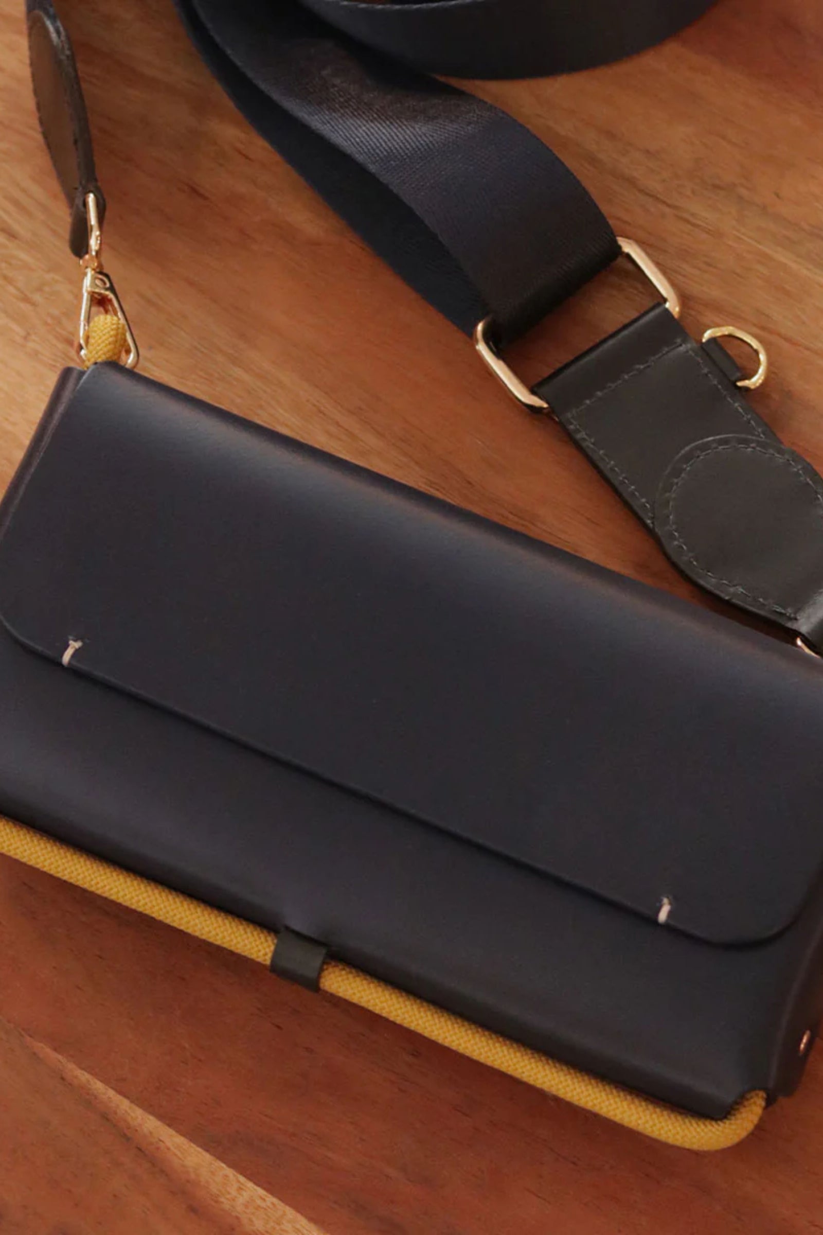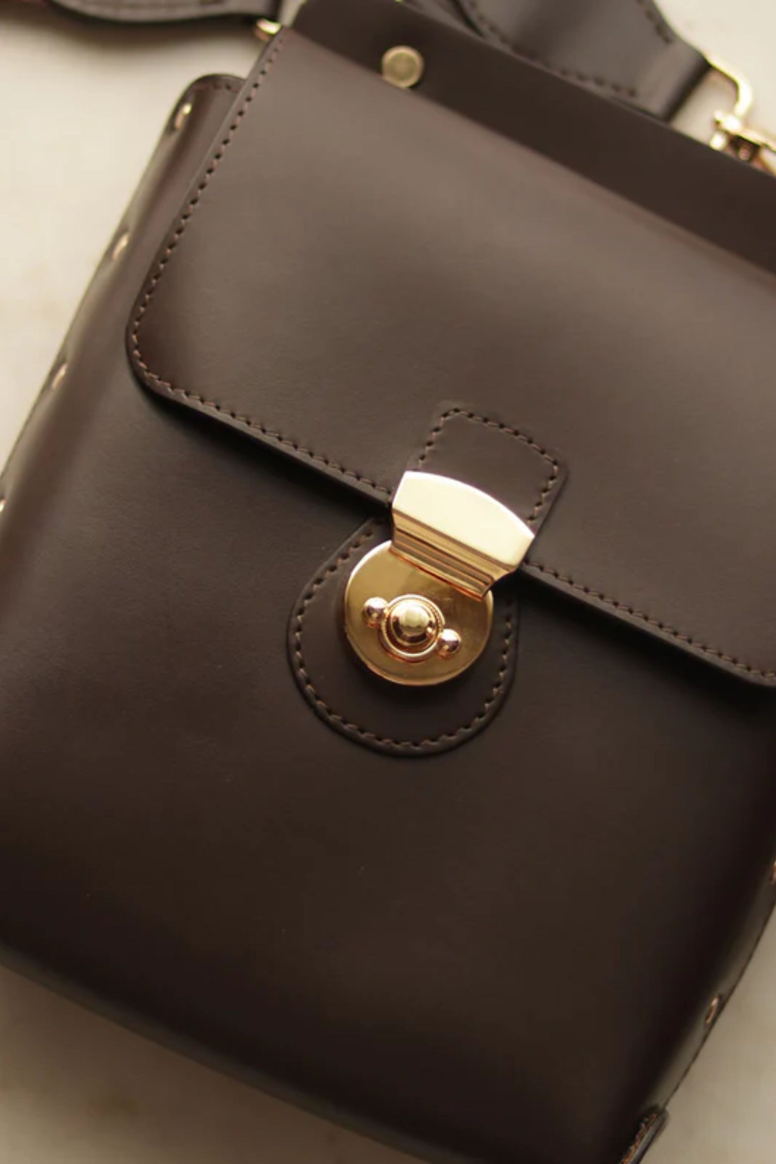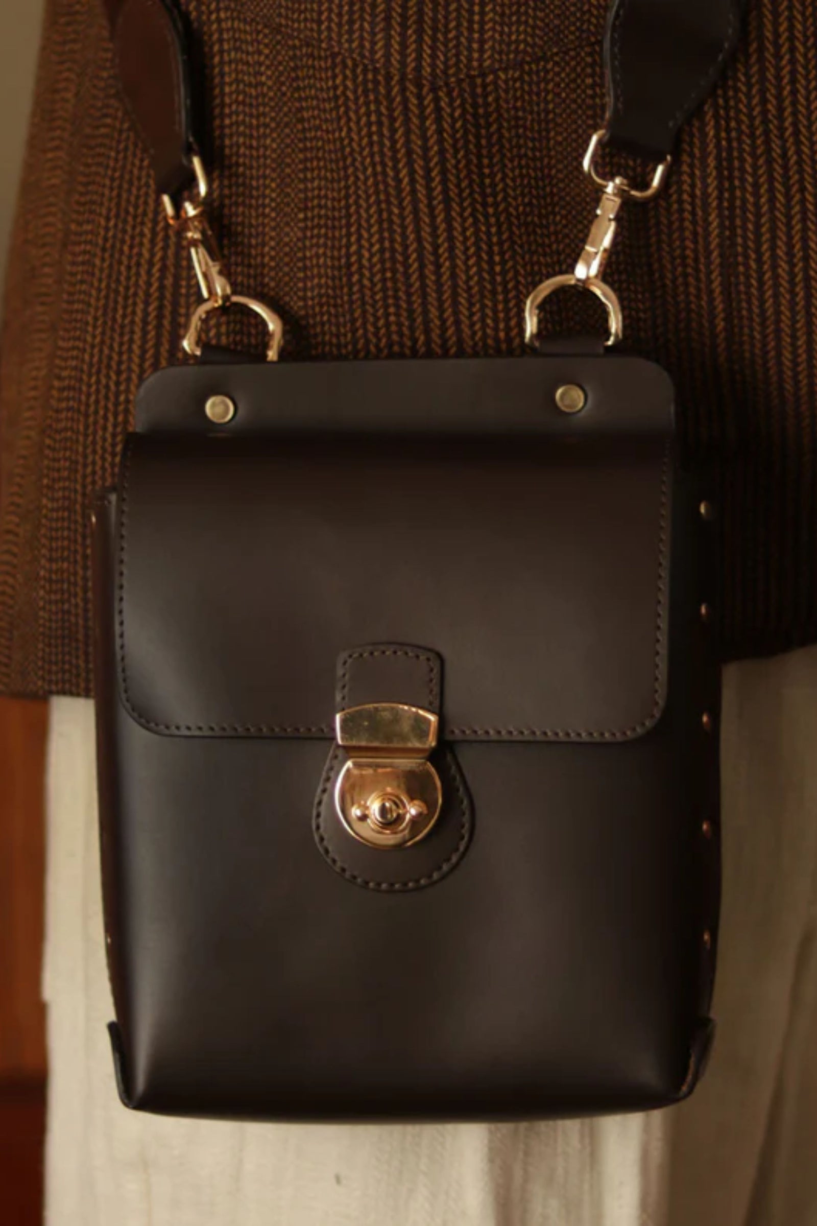 • Crafted in genuine leather, the capsule sling is the perfect everyday bag. It comes equipped with two small pockets to keep your small essentials organized. Features an adjustable strap and a metal hardware.