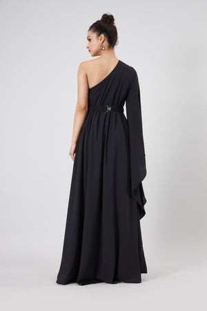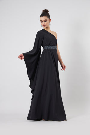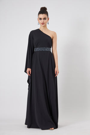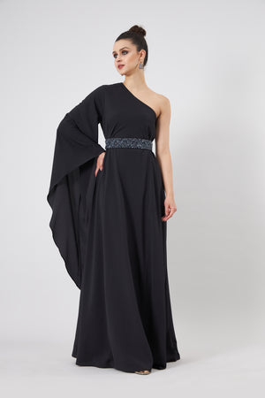 • Boho sleeve one shouldeer dress with crystal belt