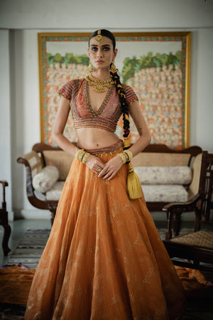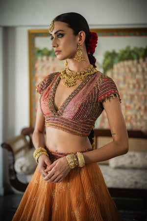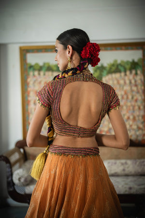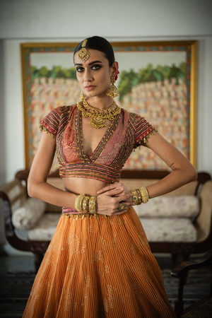 • Handwoven yarn dyed silk/cotton stripe v neck blouse adorned with fine hand embroidery and beadwork.
