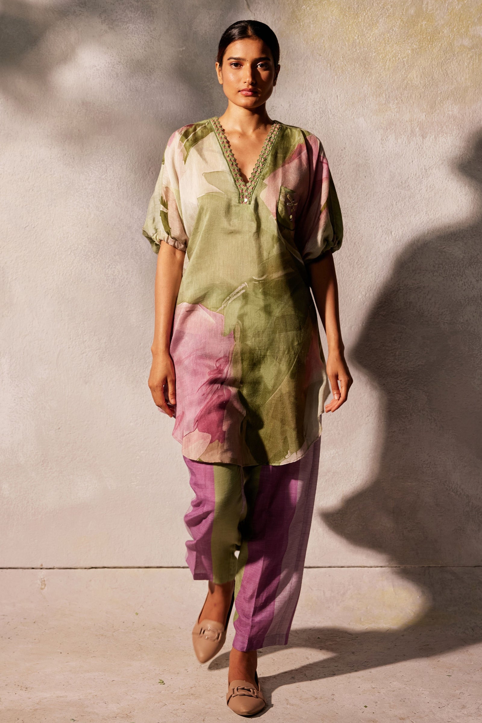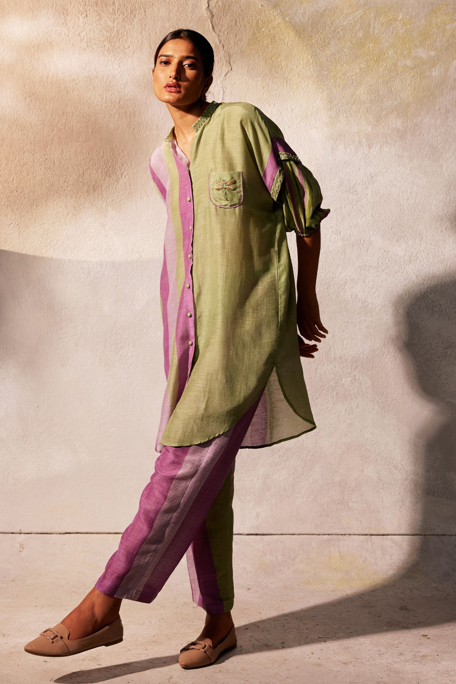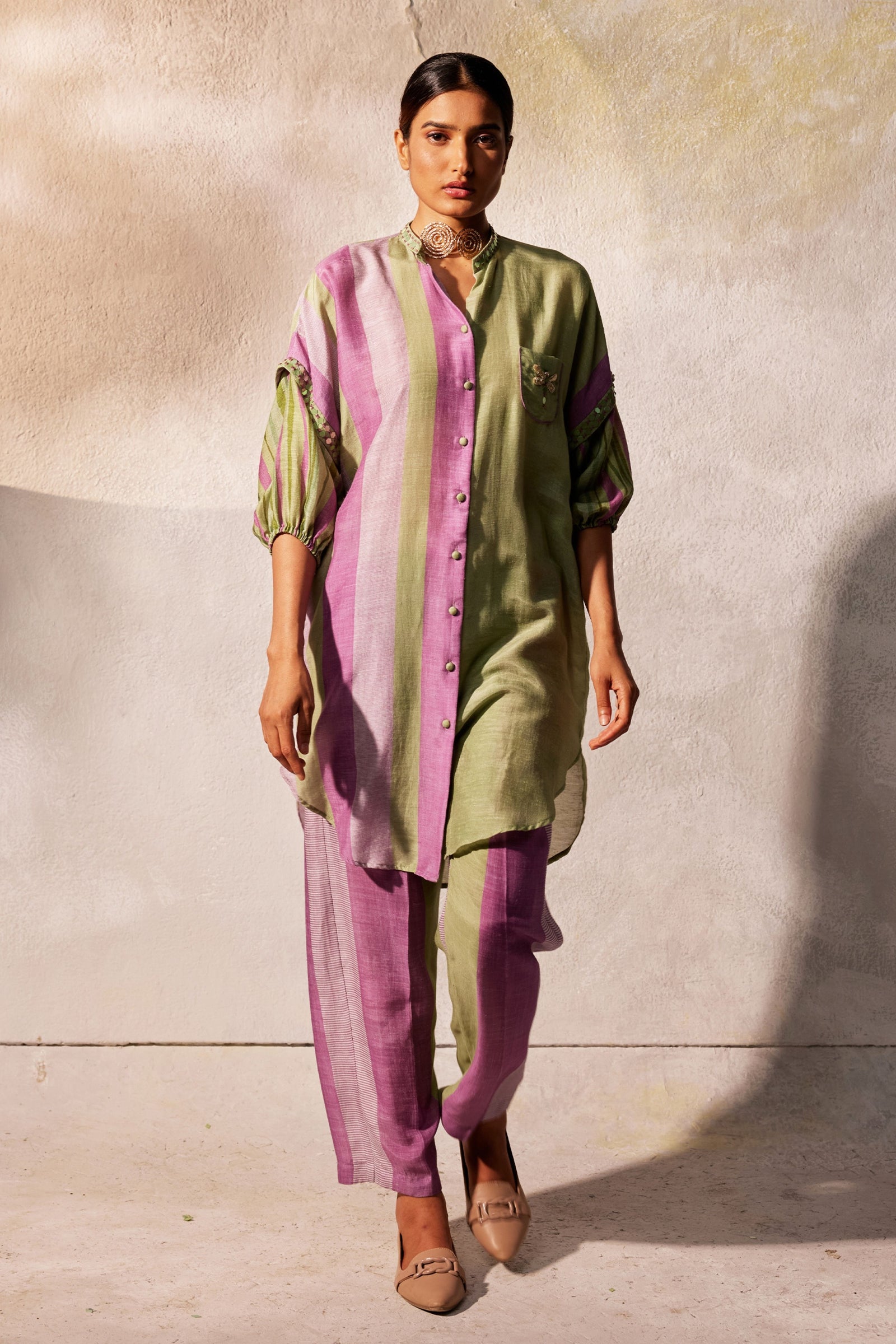 Care: Dry Clean Only. As garments are handmade and handwoven, natural variations in colours and weaves are a characteristic of the textile, and may be found in the finished garments as well.