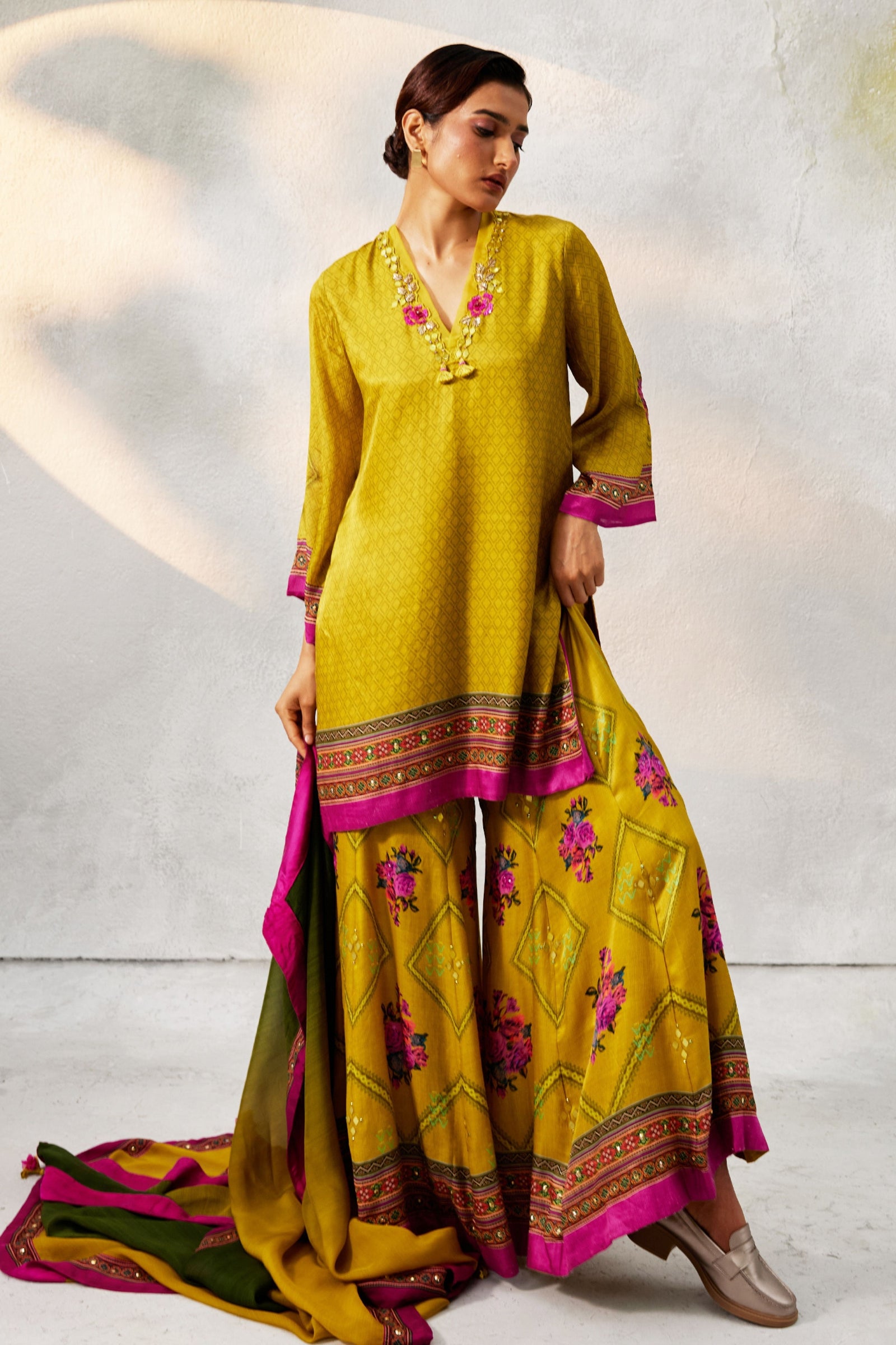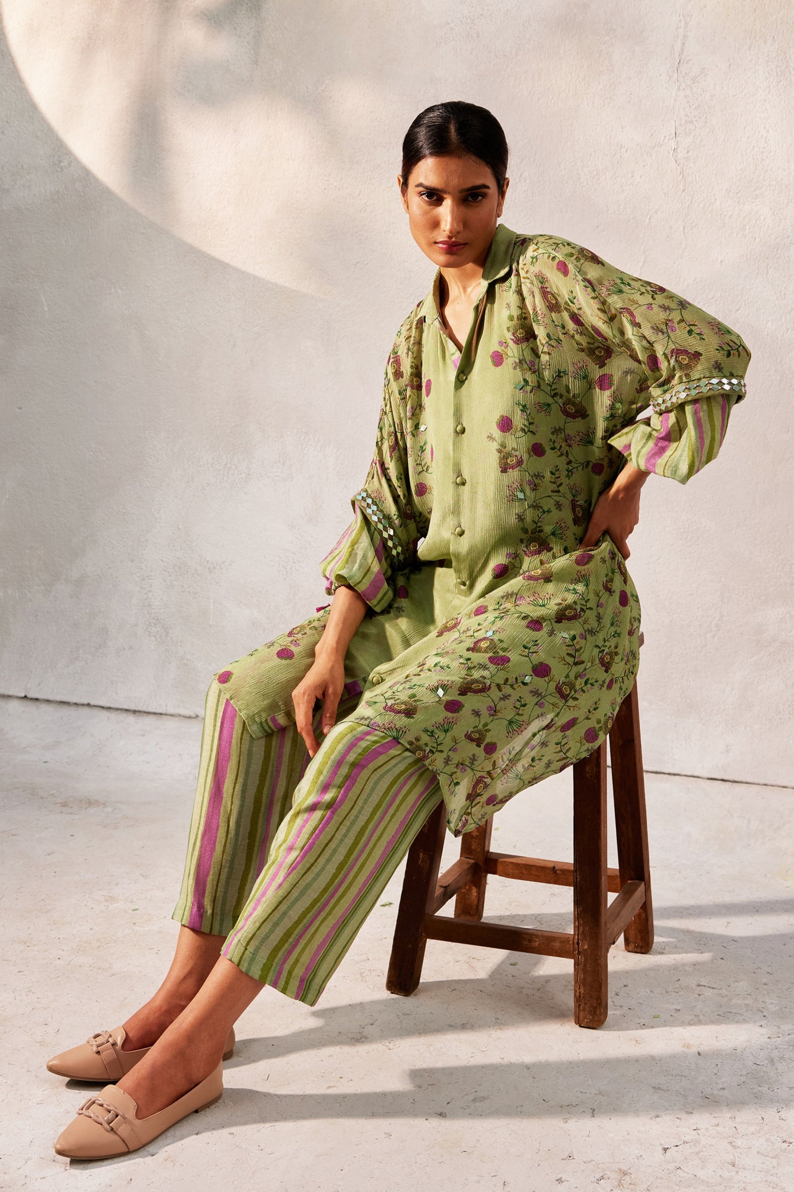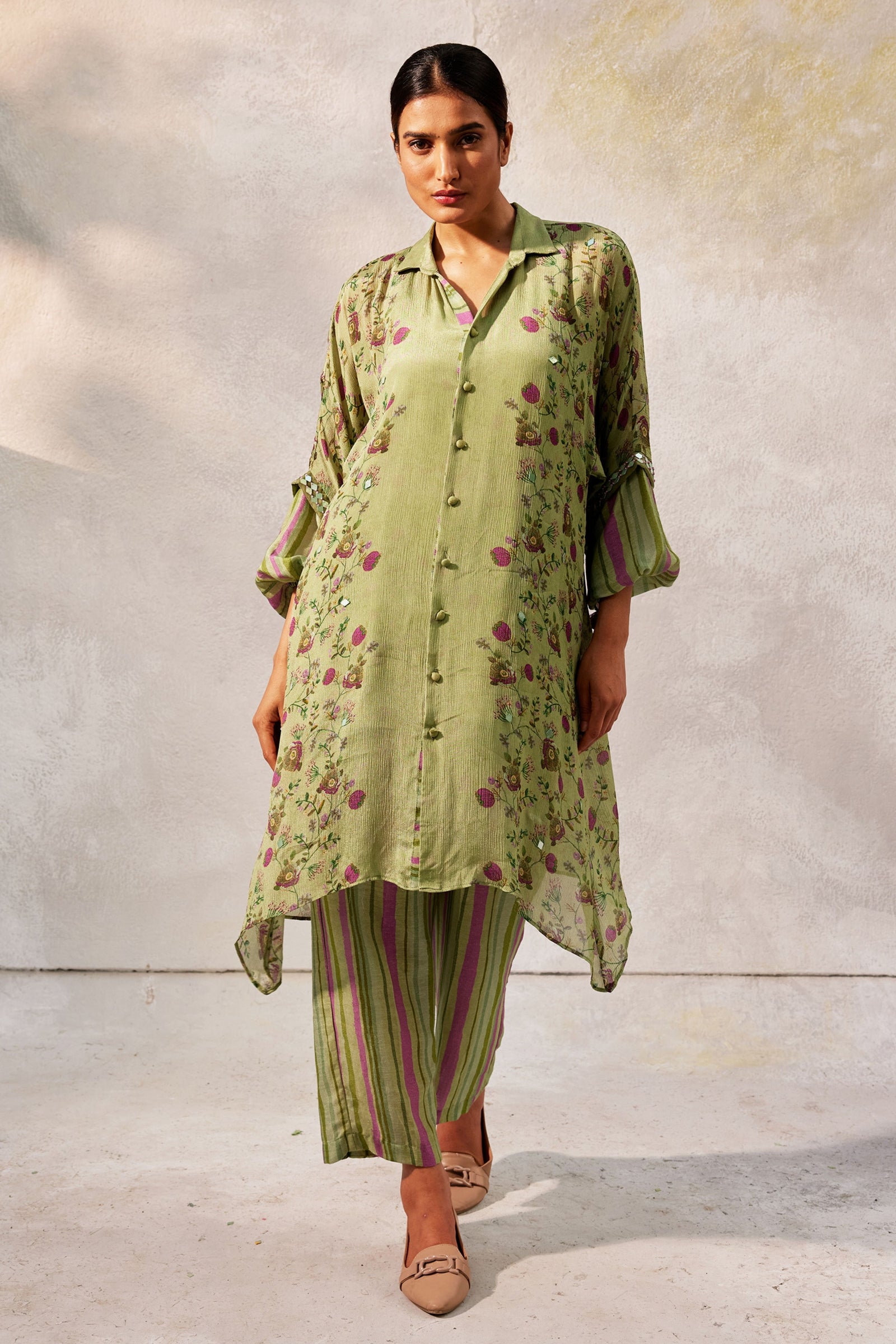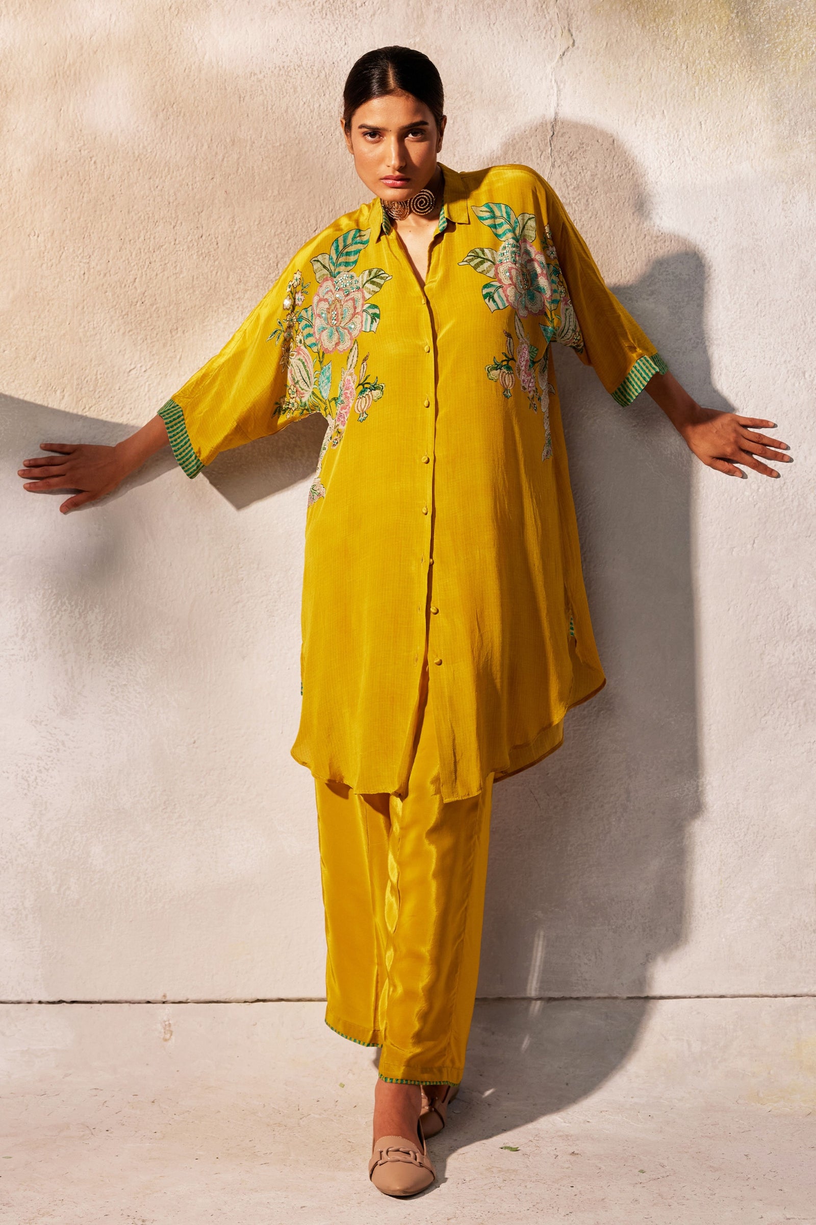 Care: Dry Clean Only. As garments are handmade and handwoven, natural variations in colours and weaves are a characteristic of the textile, and may be found in the finished garments as well.