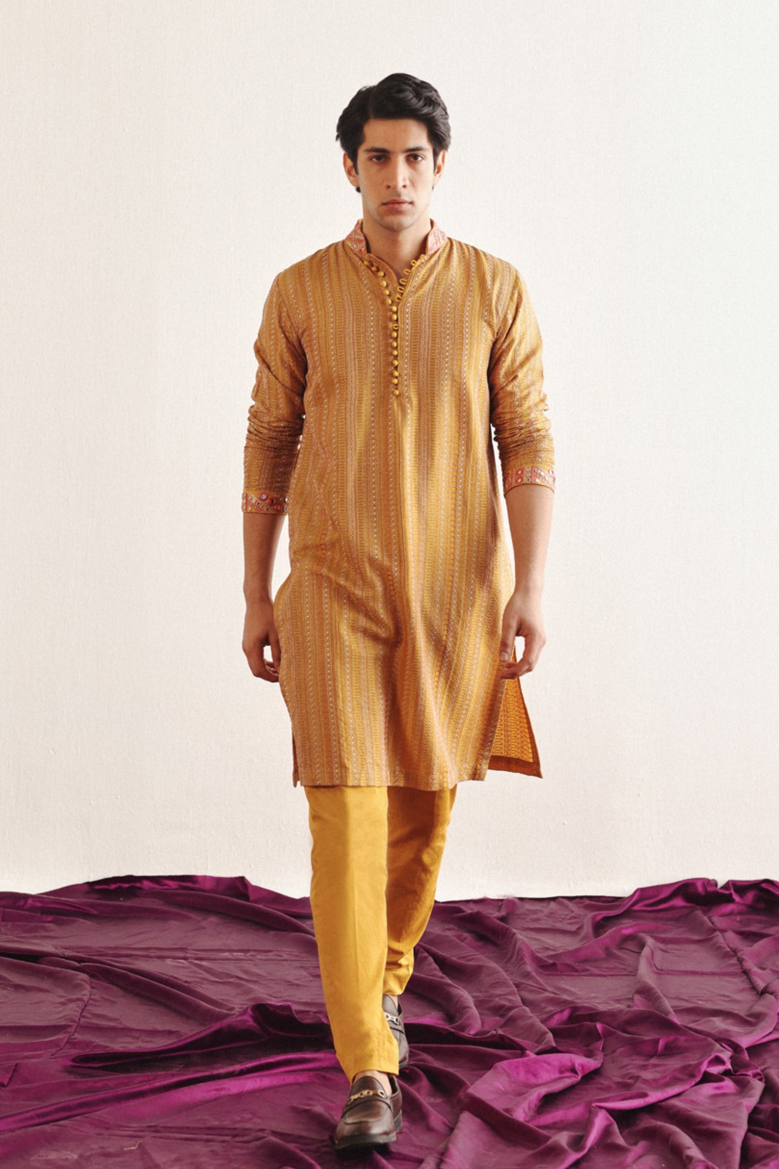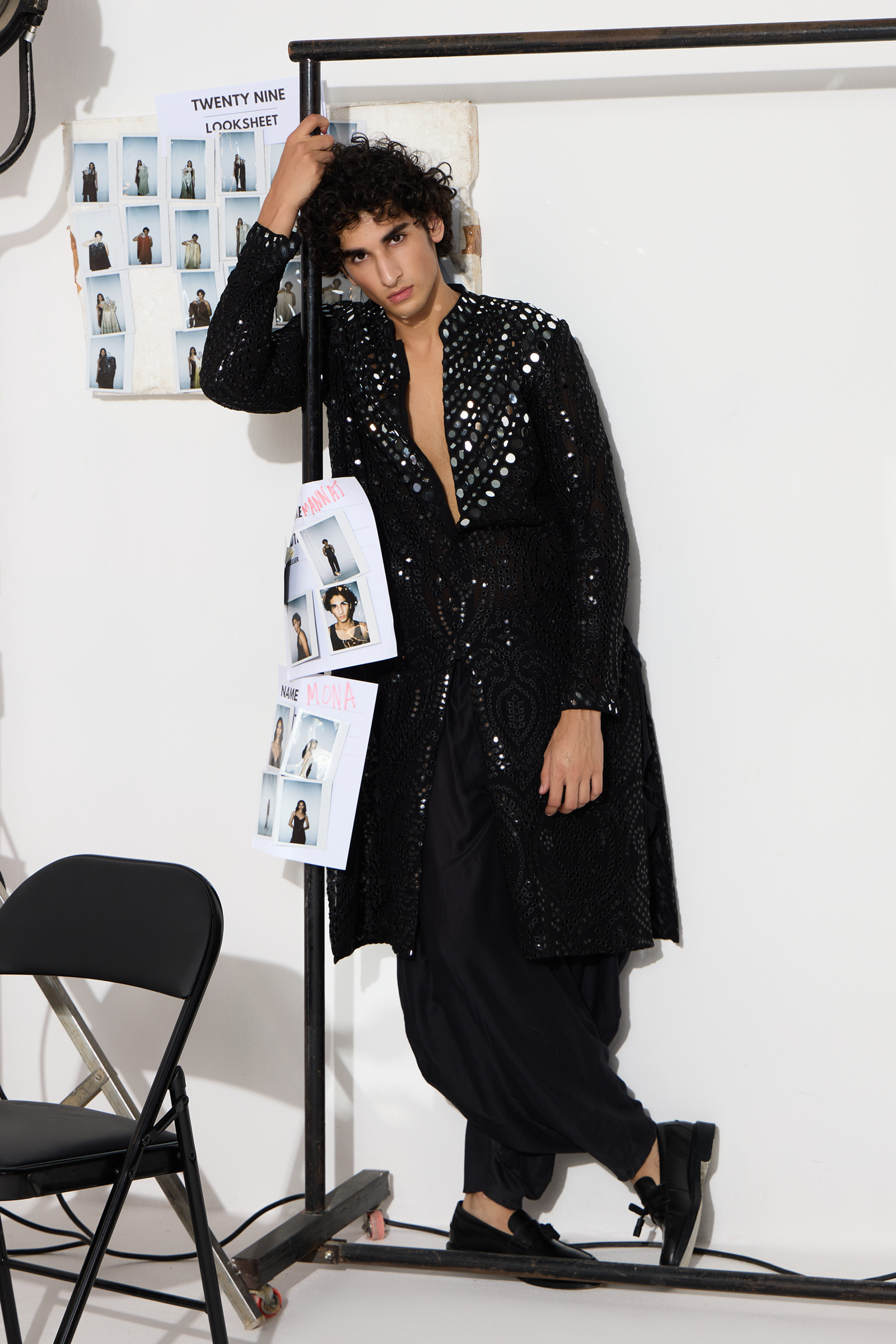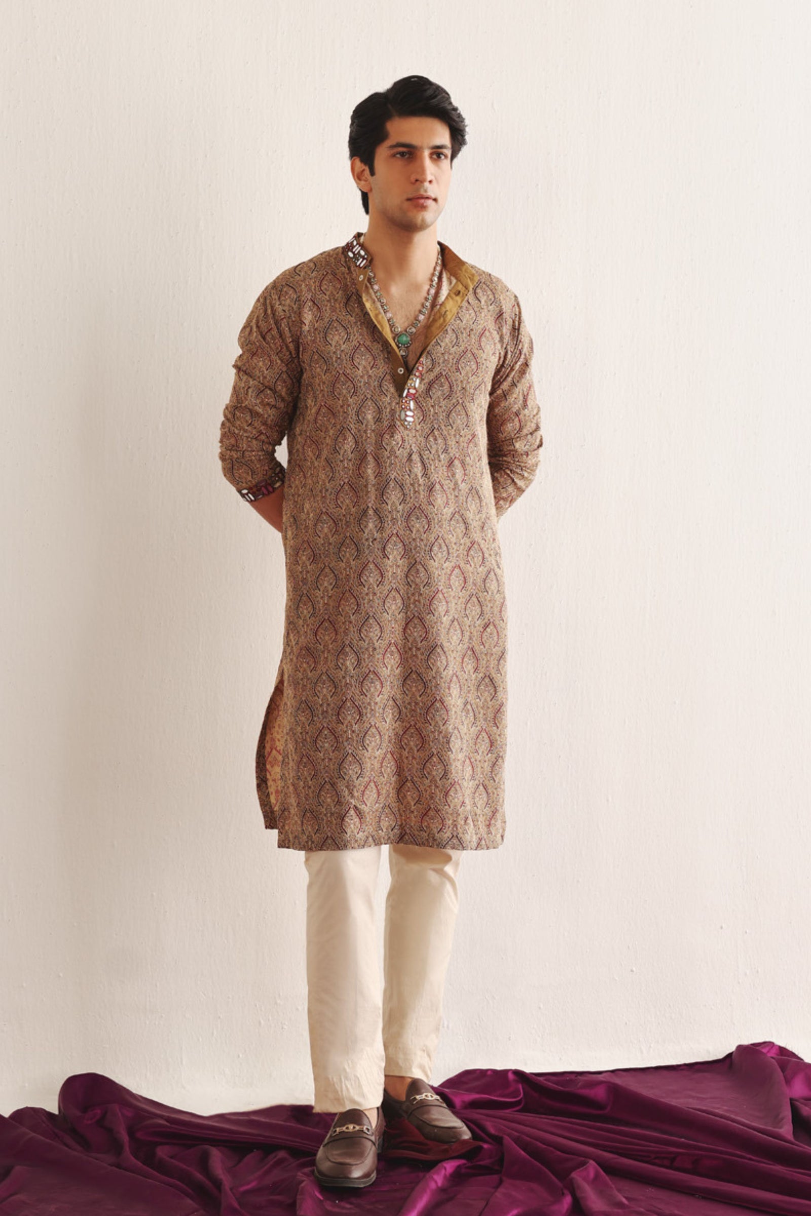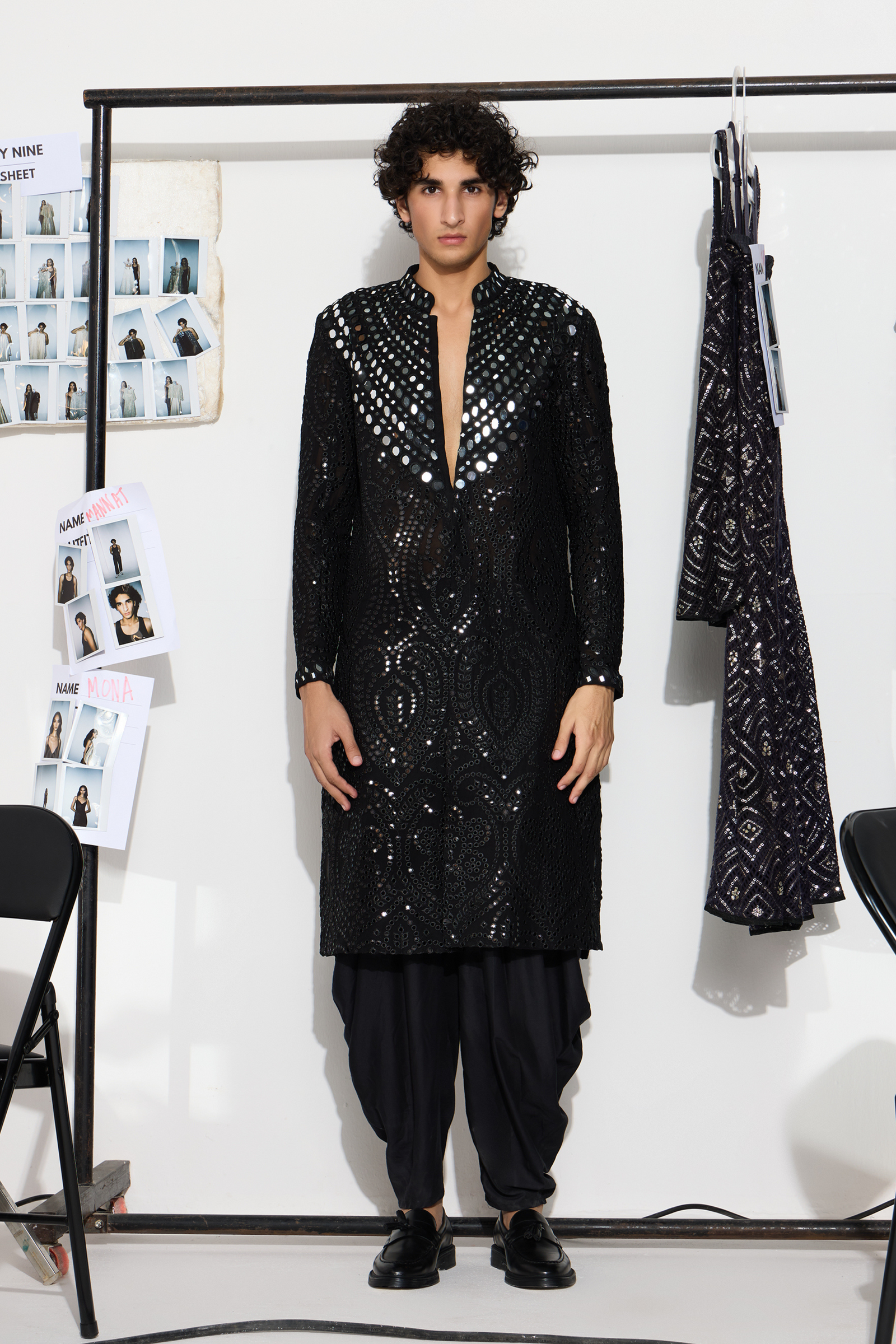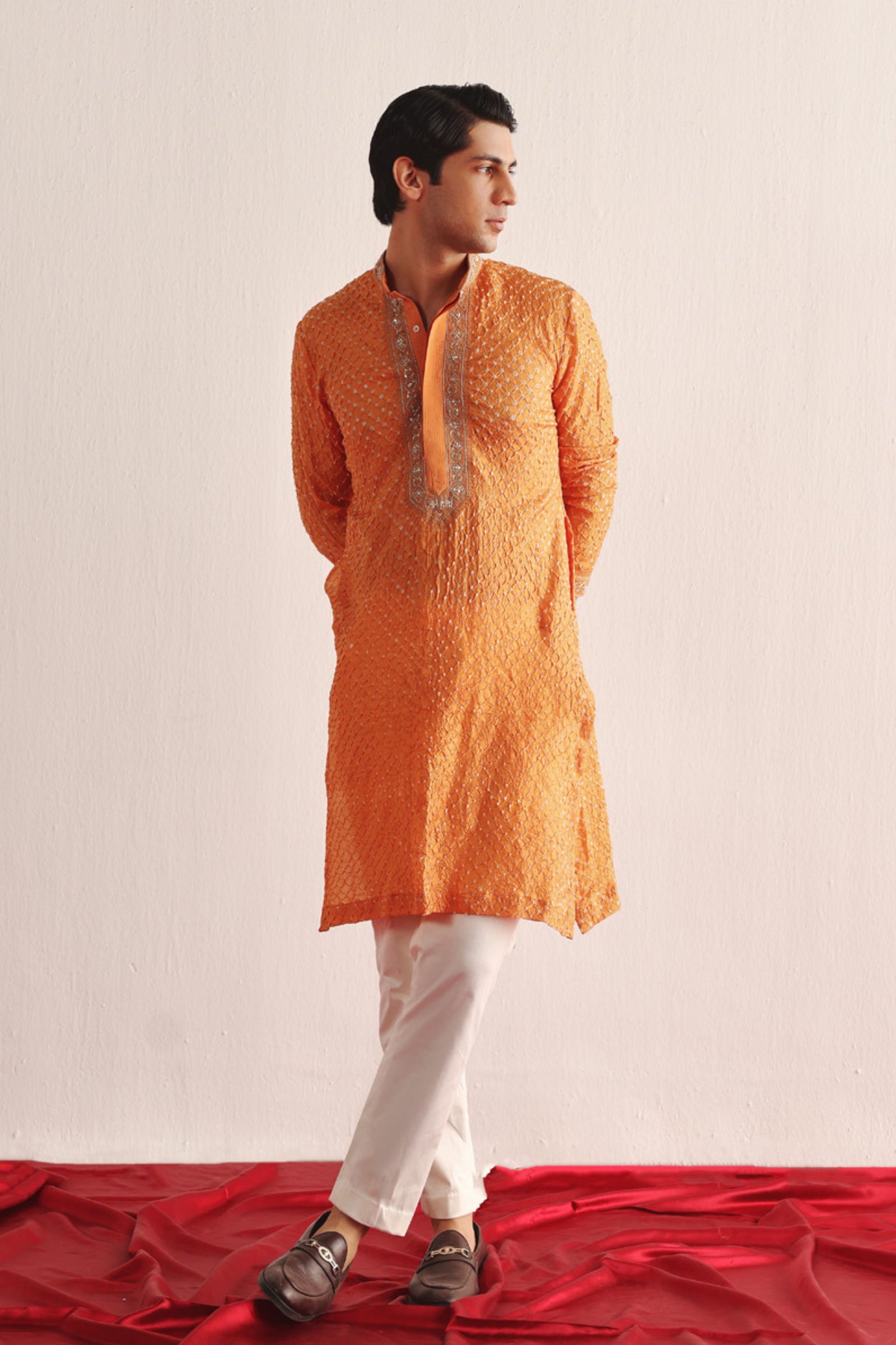 • This cotton silk kurta is specially designed by our team embellished with a mirrorwork & beadwork effect and is crafted with great care and precision. The garment is then styled at our studio with finest details.