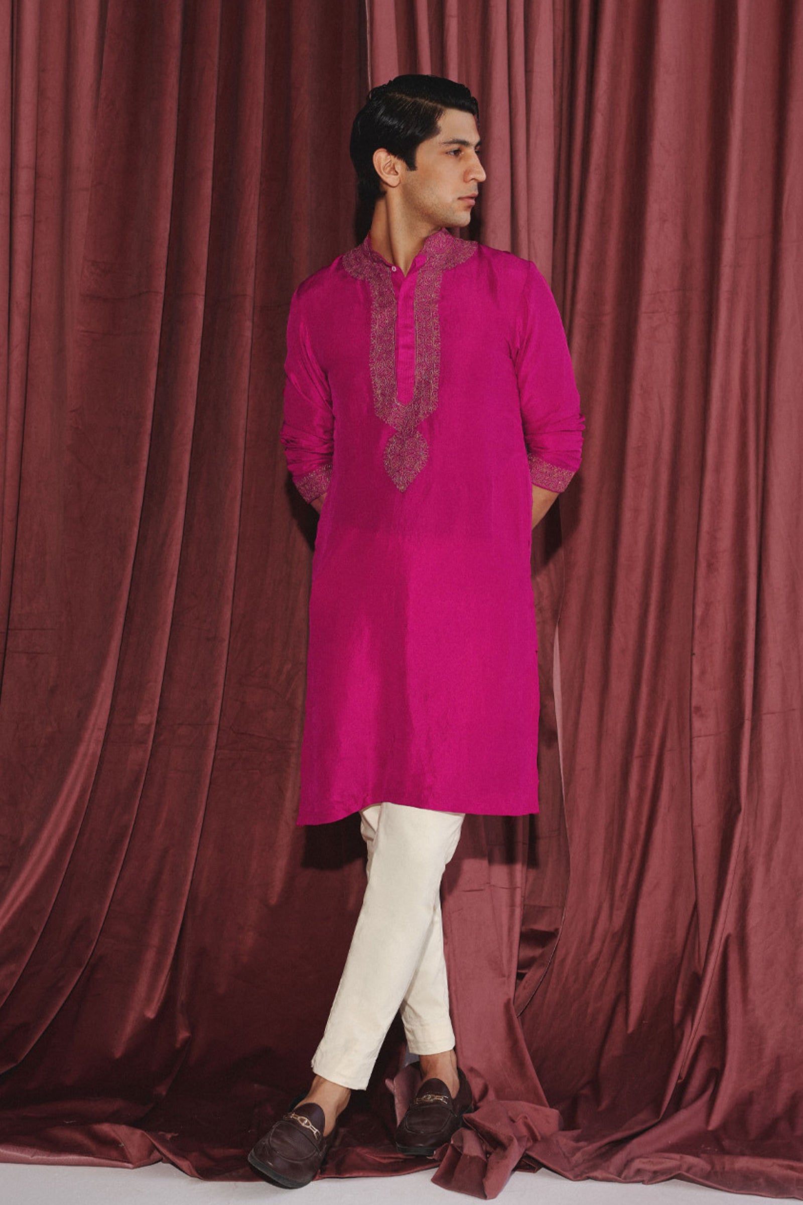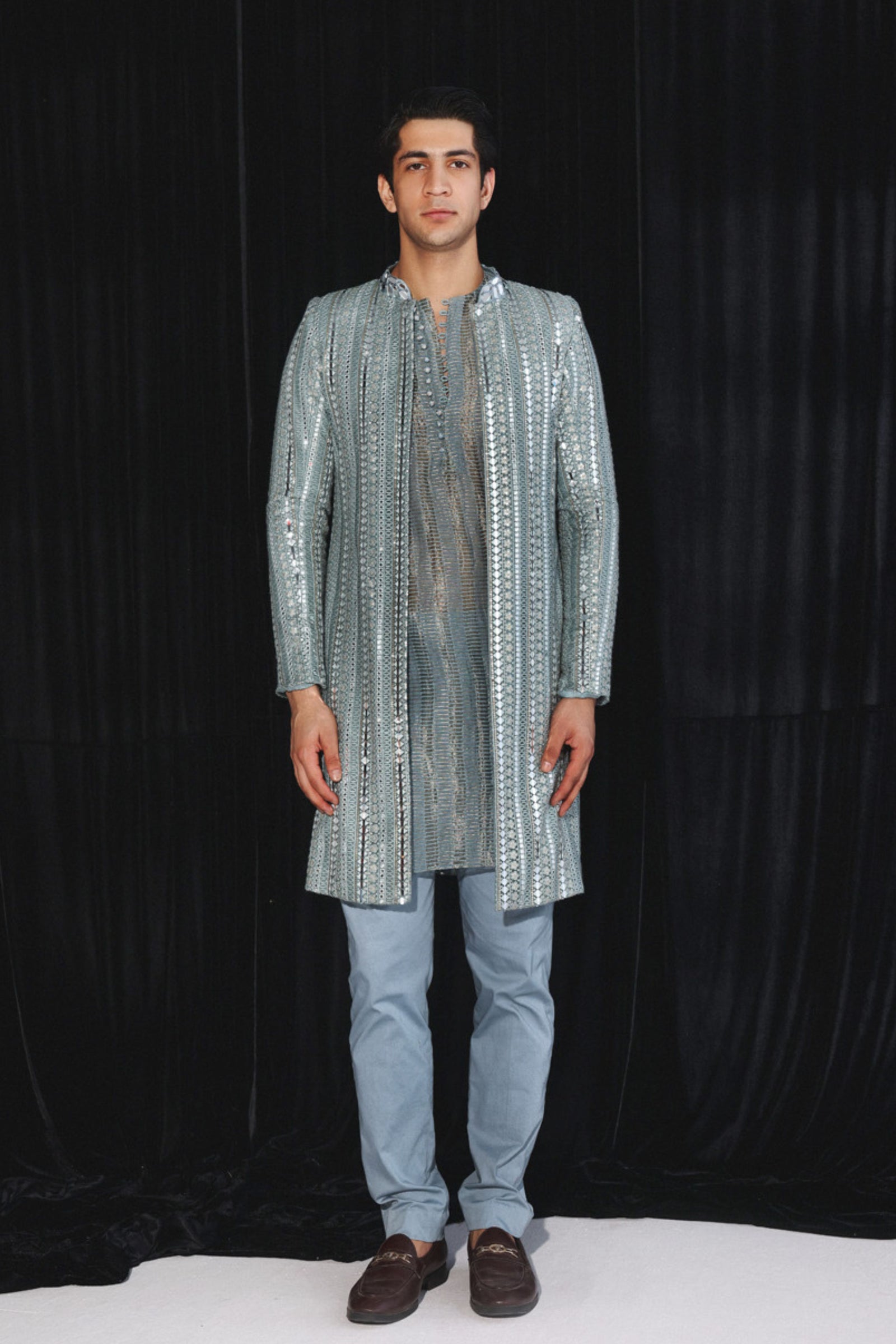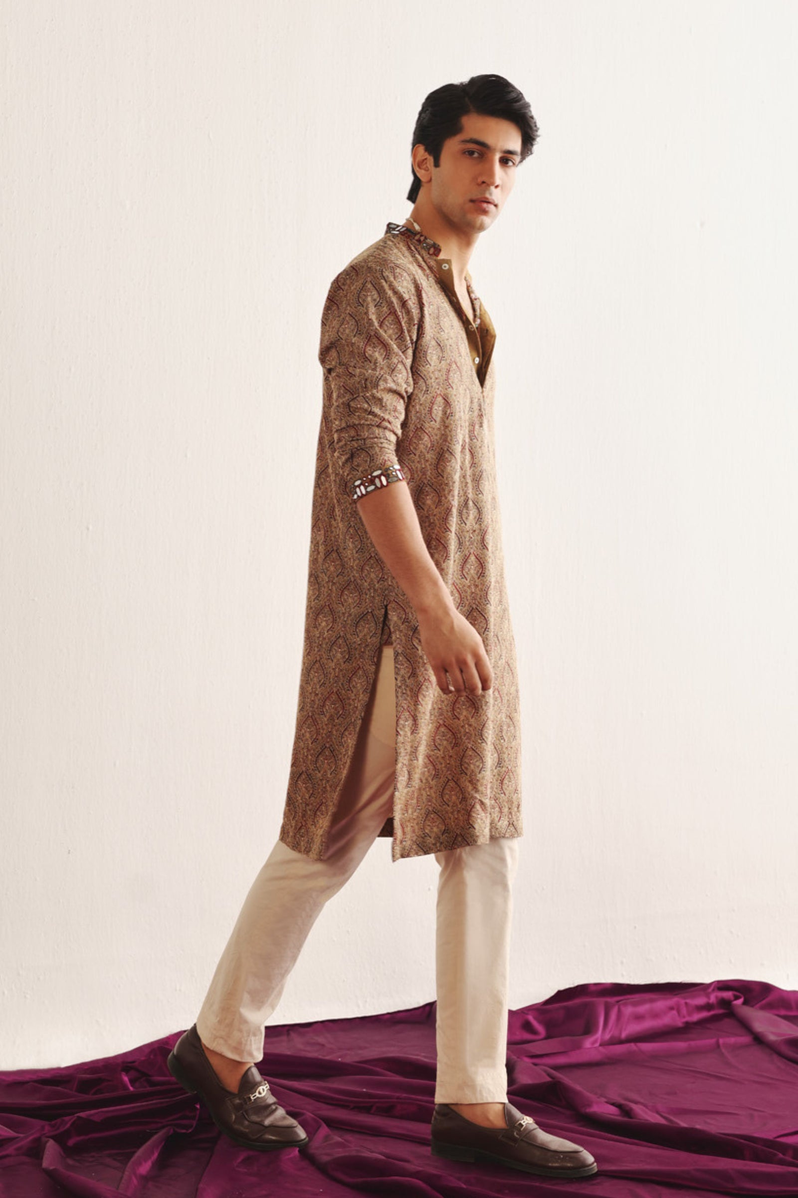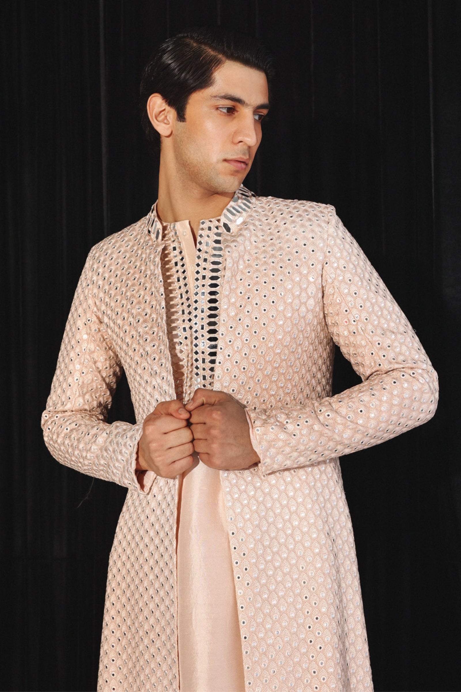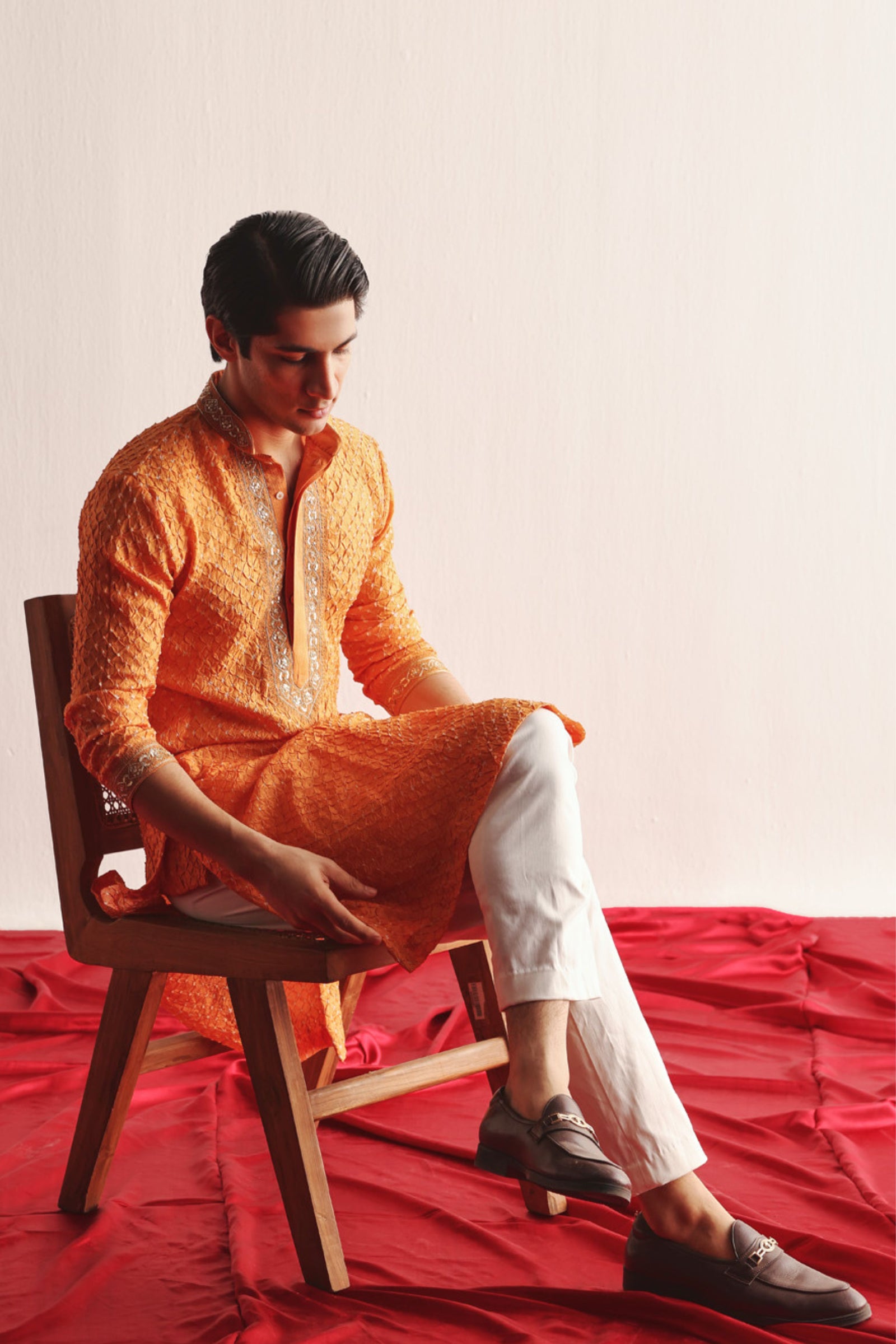 • This cotton silk kurta is specially designed by our team embellished with a mirrorwork & beadwork effect and is crafted with great care and precision. The garment is then styled at our studio with finest details.
