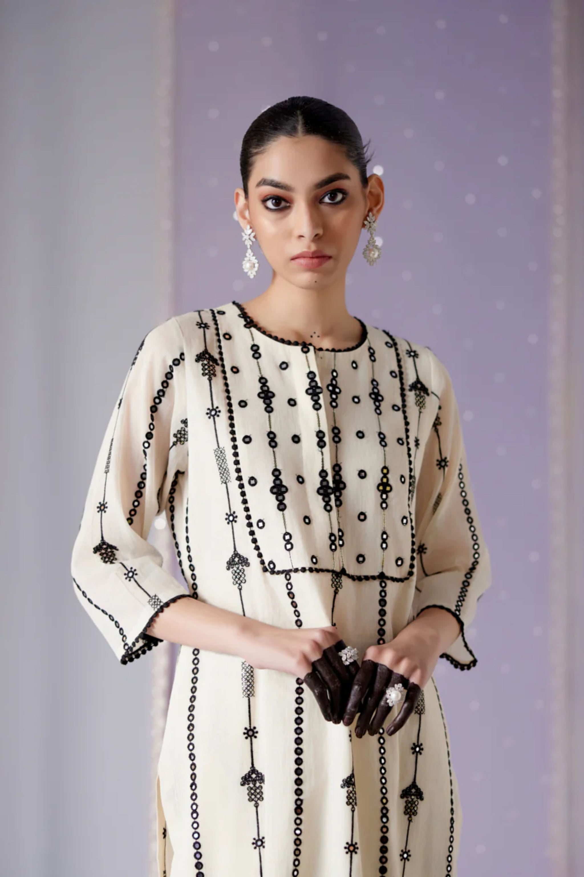 Criss Cross Embroidery Kurta Set