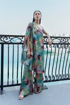 One Shoulder Drape Kaftan Set