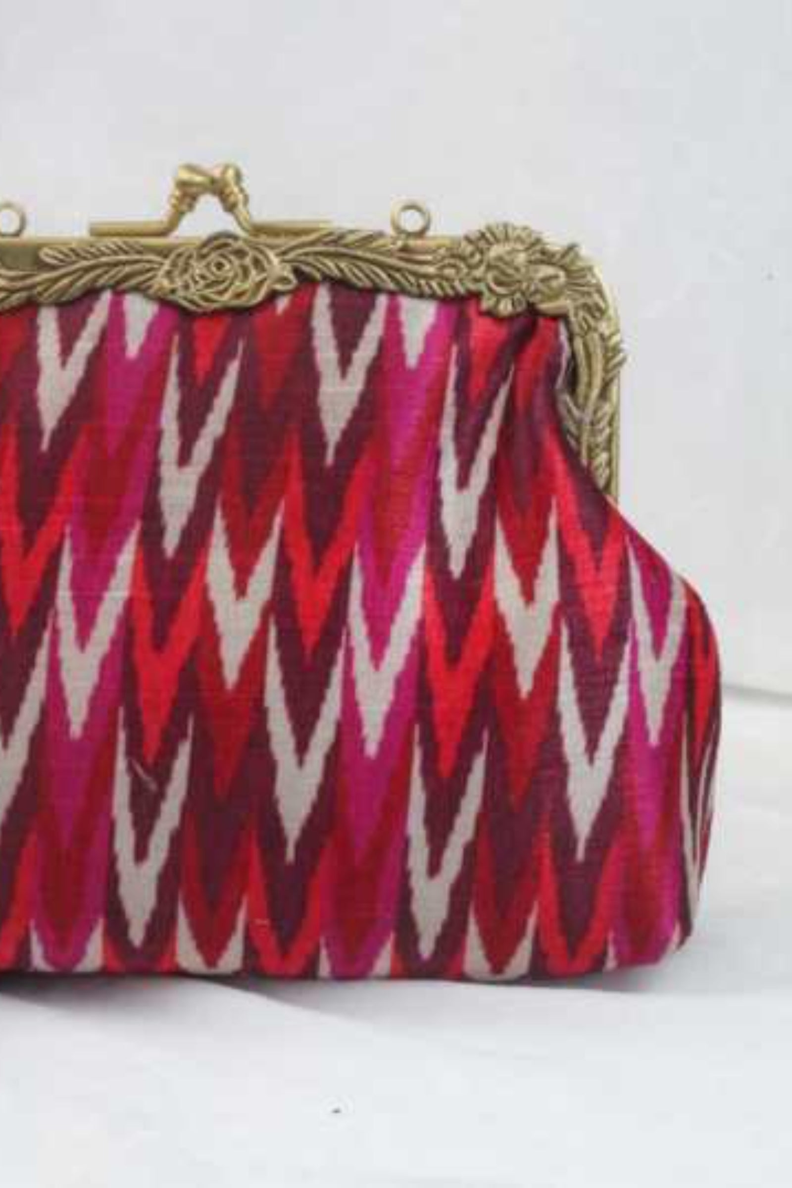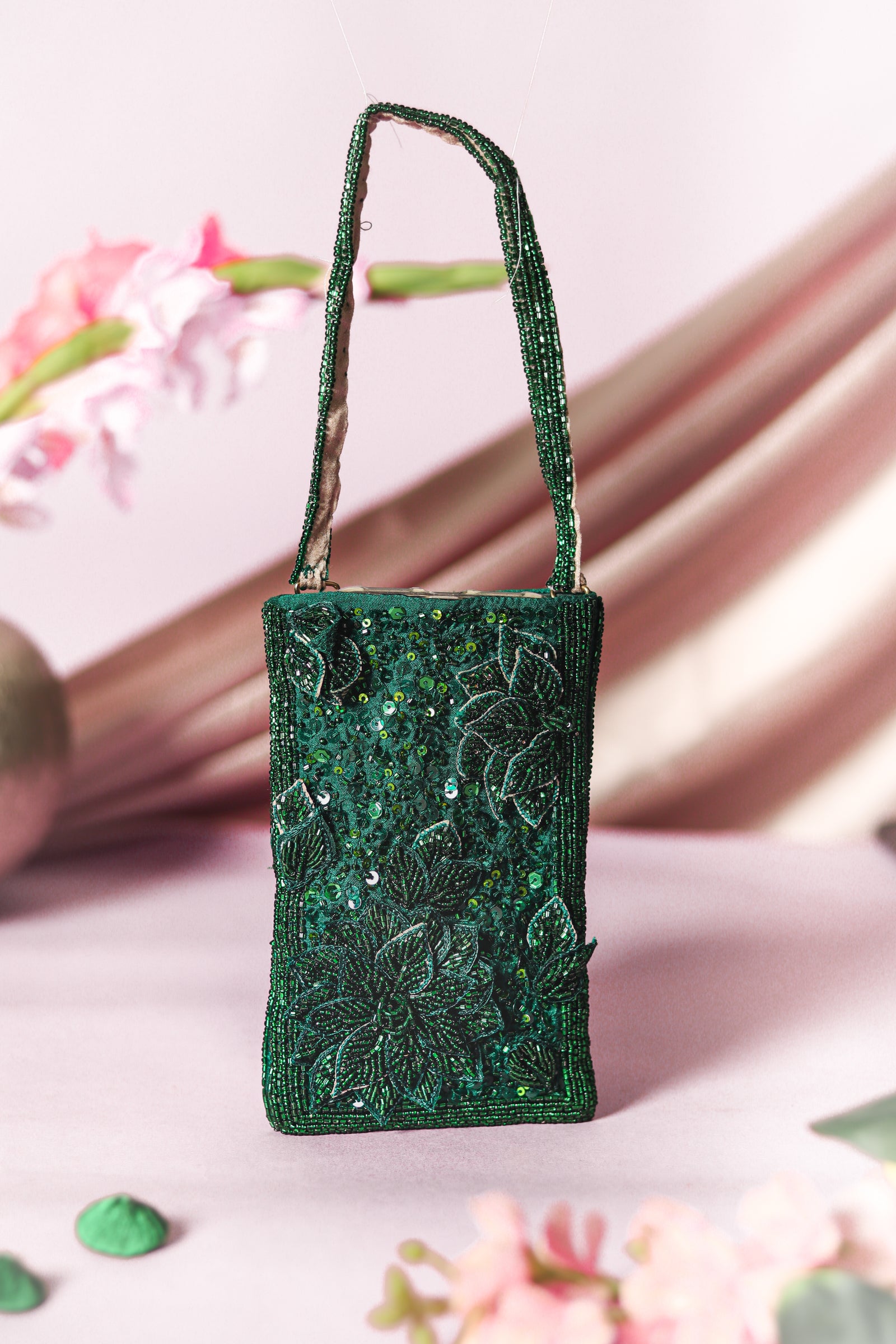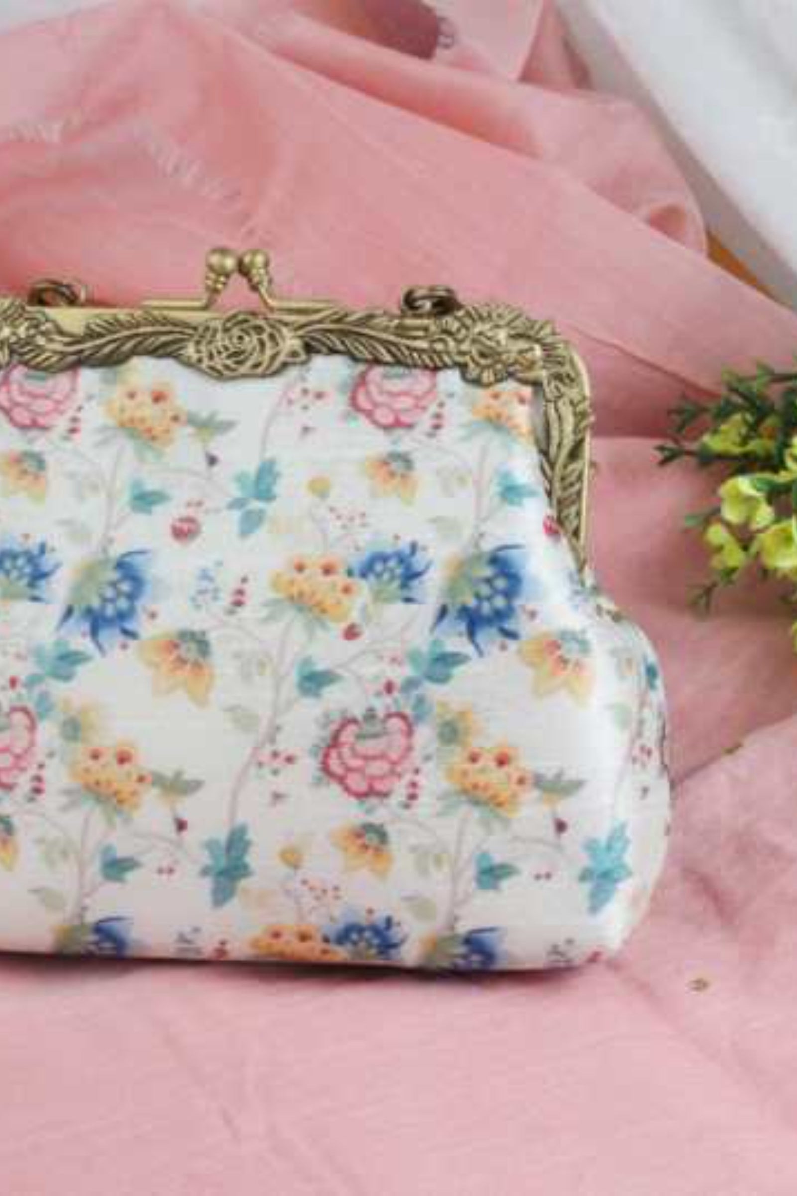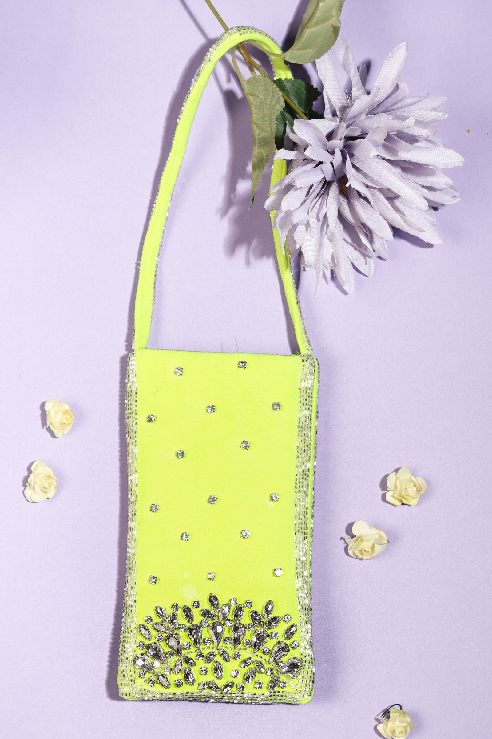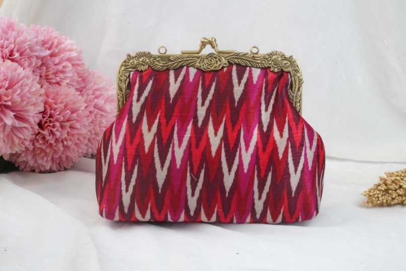 • This potli bag is crafted from Banarasi fabric and embellished with pitta and sequin work in silver and Champagne gold colors. The potlis come adorned with beautifully handcrafted flower tassels. Measuring 24cm in length and 23cm in width.