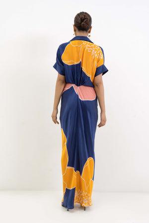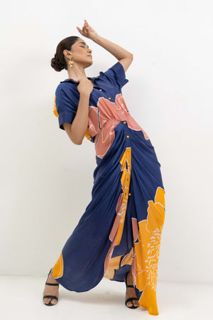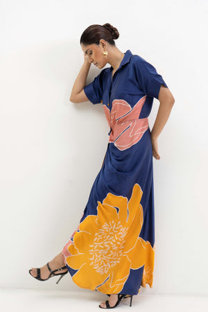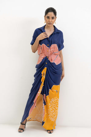 • Placement flower printed draped shirt dress