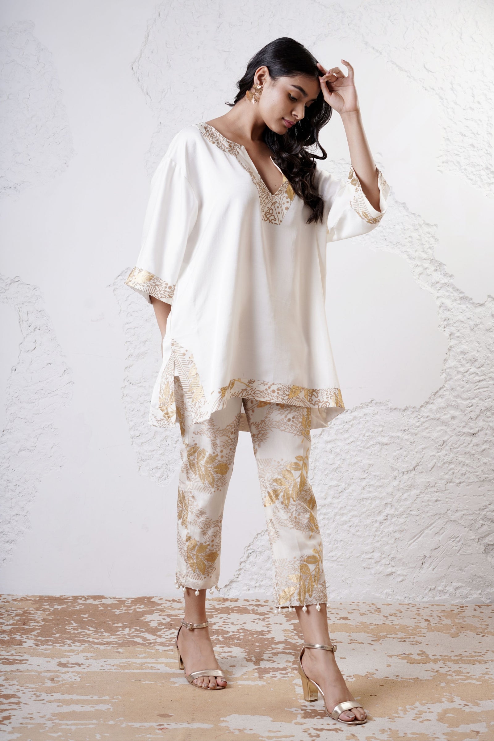 Care: Dry Clean Only. As garments are handmade and handwoven, natural variations in colours and weaves are a characteristic of the textile, and may be found in the finished garments as well.