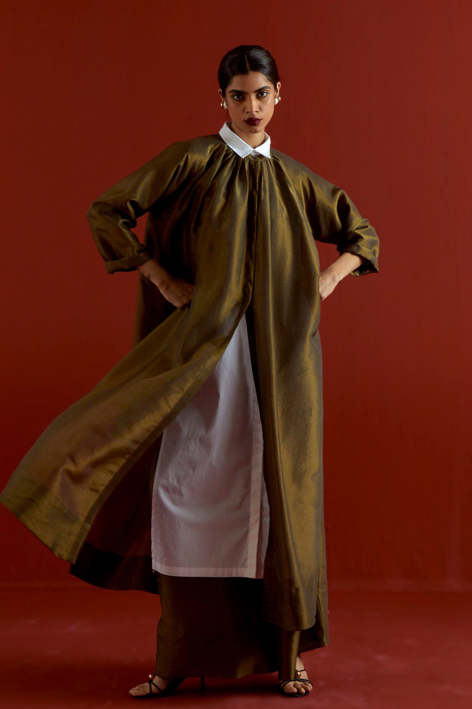 Care: Dry Clean Only. As garments are handmade and handwoven, natural variations in colours and weaves are a characteristic of the textile, and may be found in the finished garments as well.