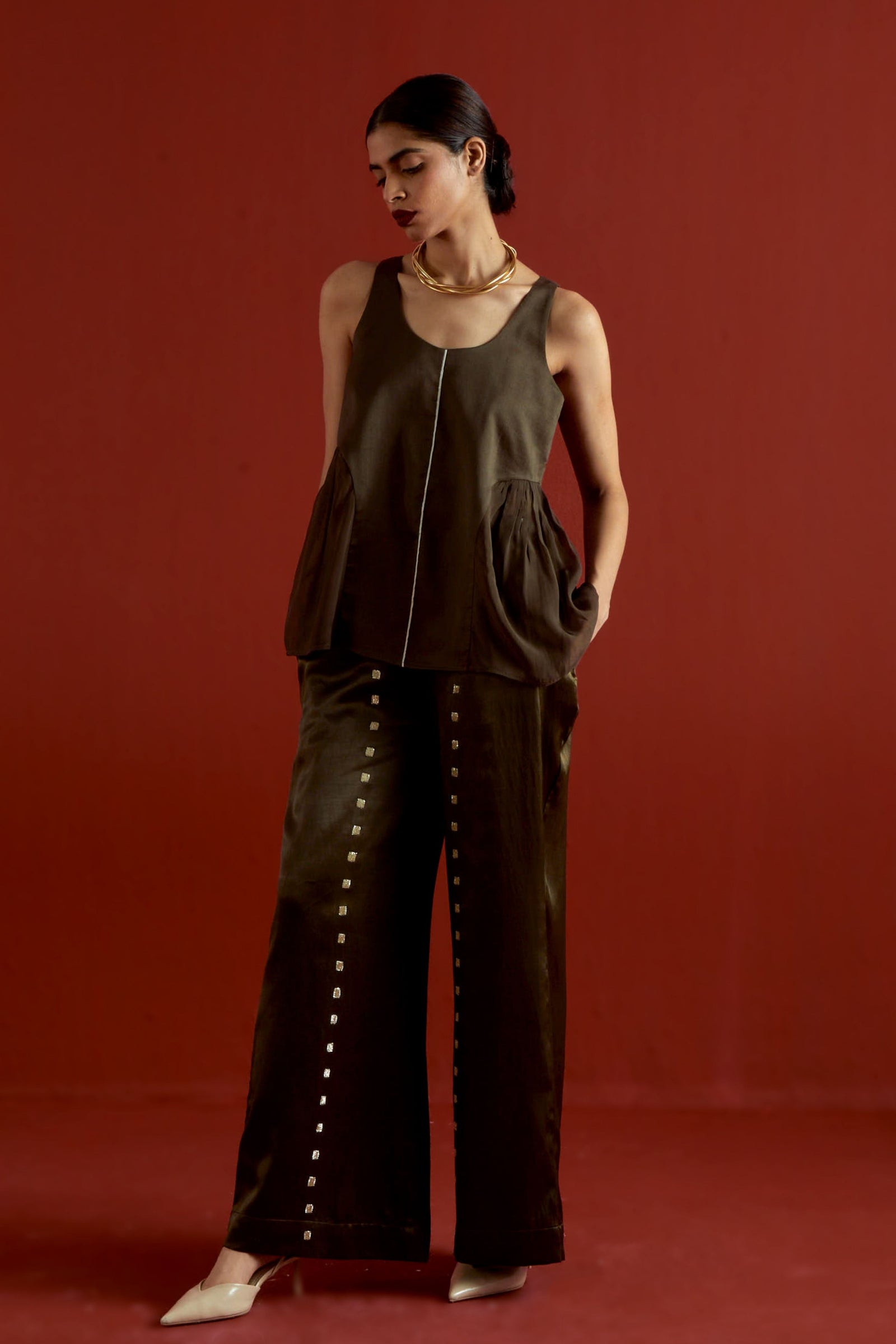 • The Shirt, Bottom Can be sold separately. Check out Fringe Pintuck Bat Sleeve Shirt, Front Pleat Cedar Bottom