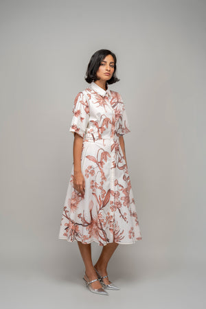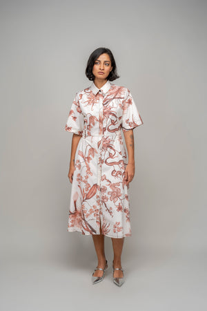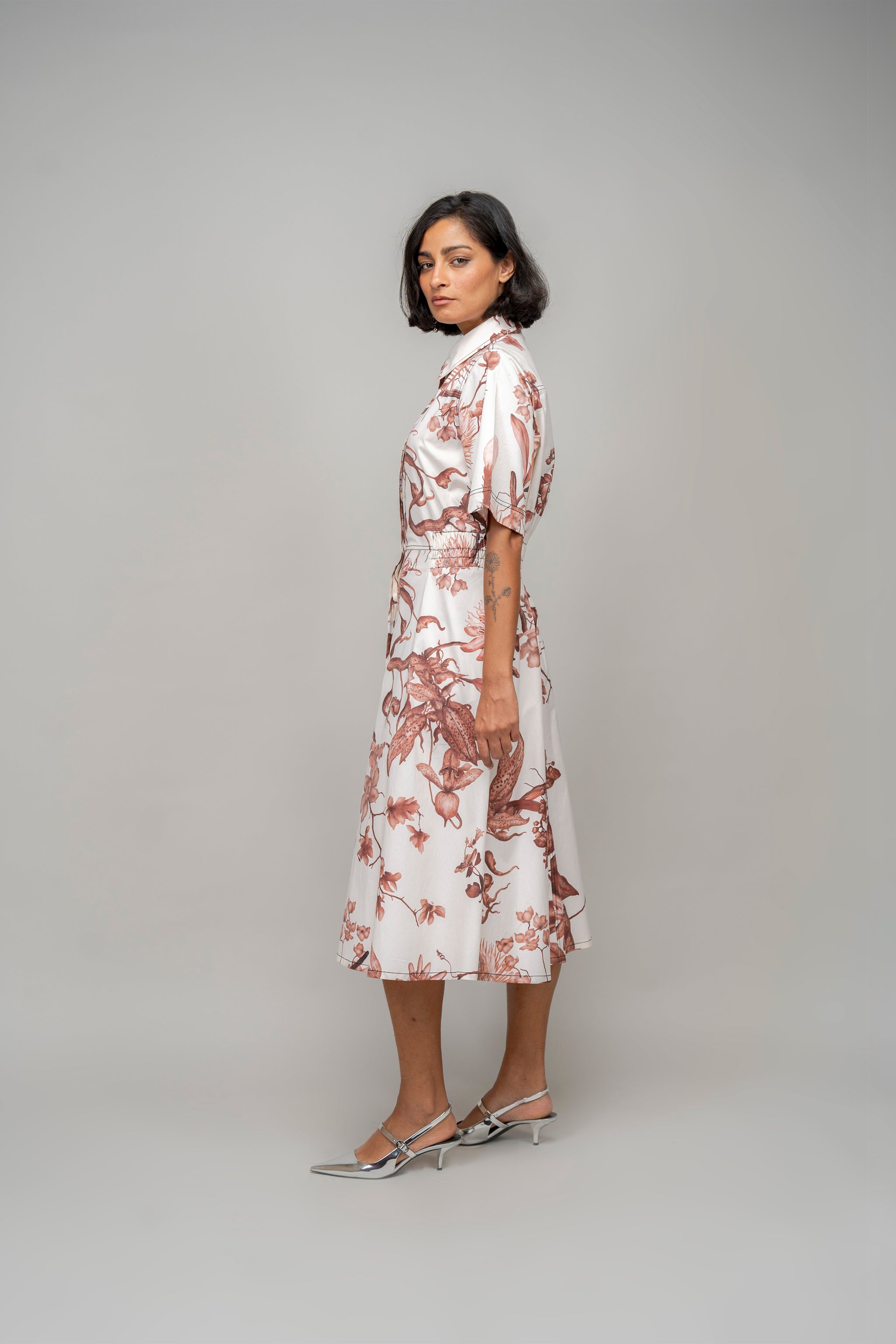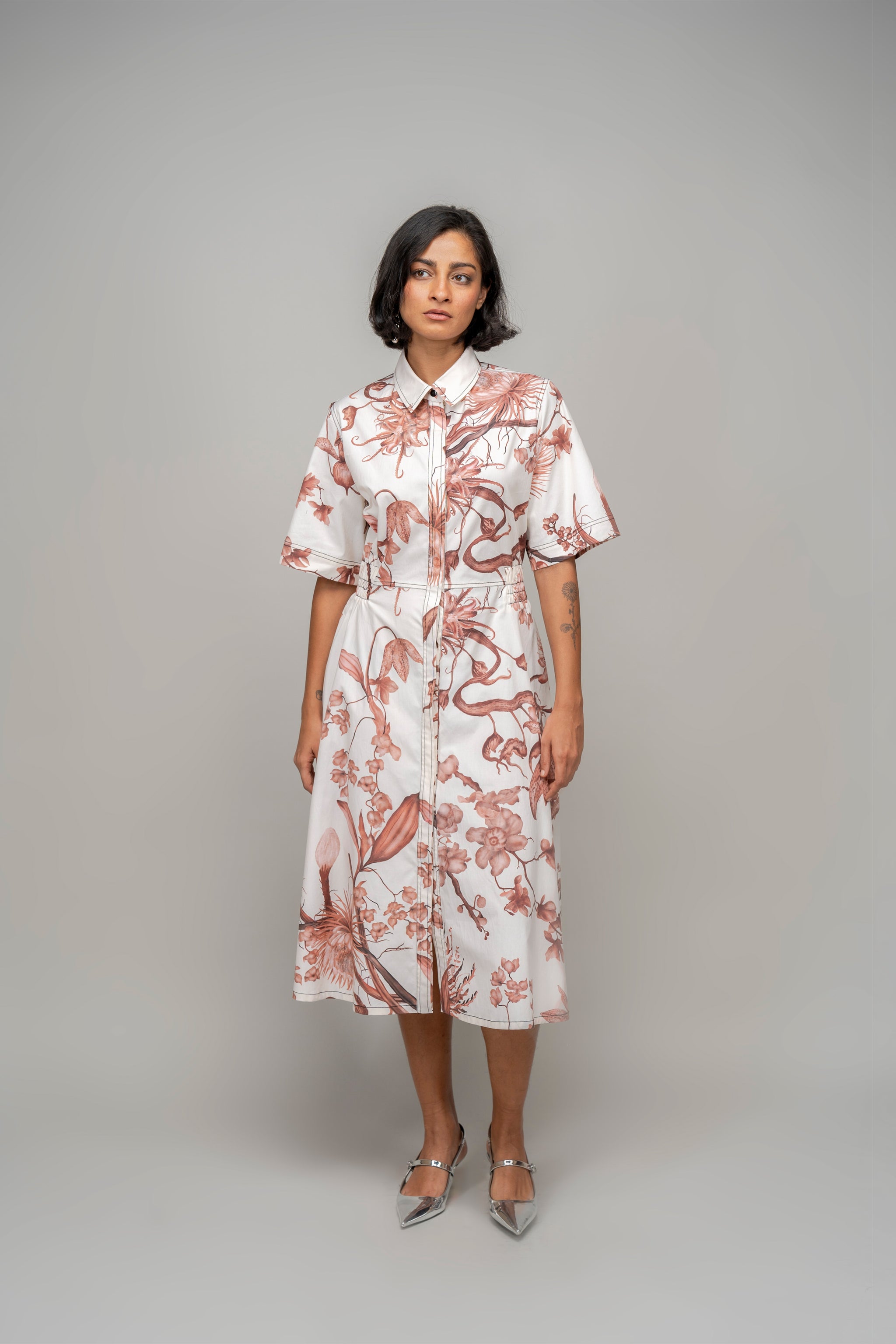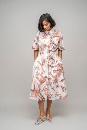 • Our classic sunday shirt dress is updated in a seasons latest garden print in apricot featuring an adjustable elasticated waist detail and hemline with side pockets model wear size m model height is 5'8 garment length is 45''