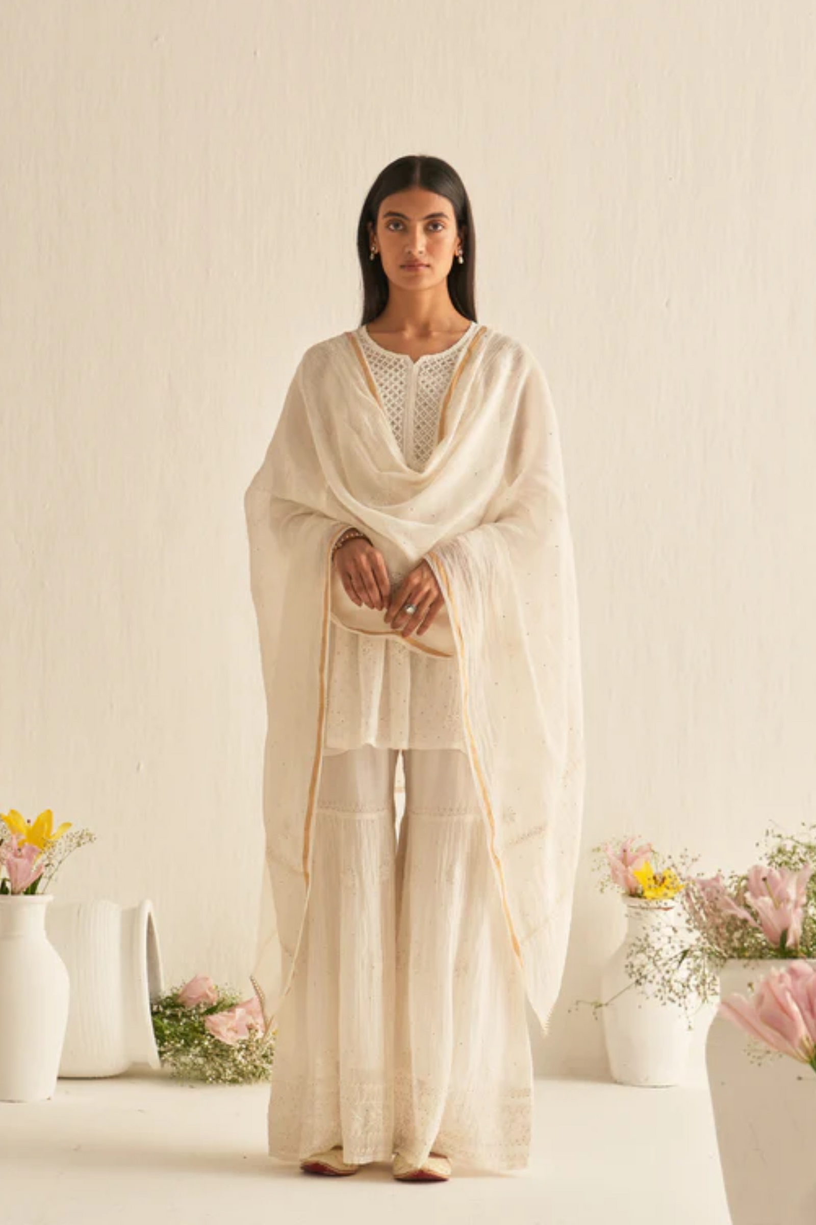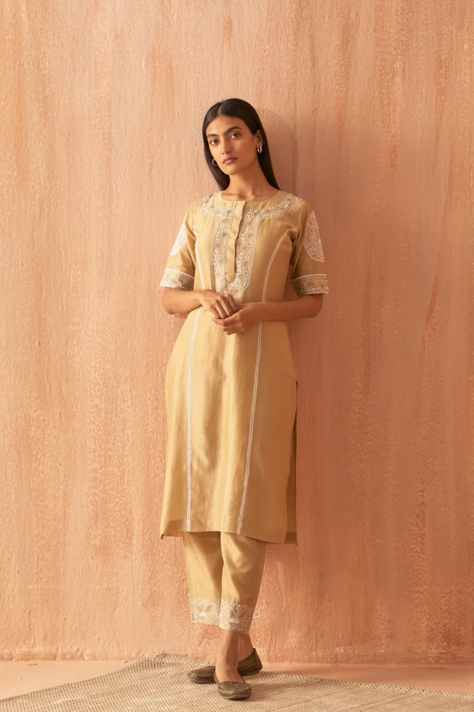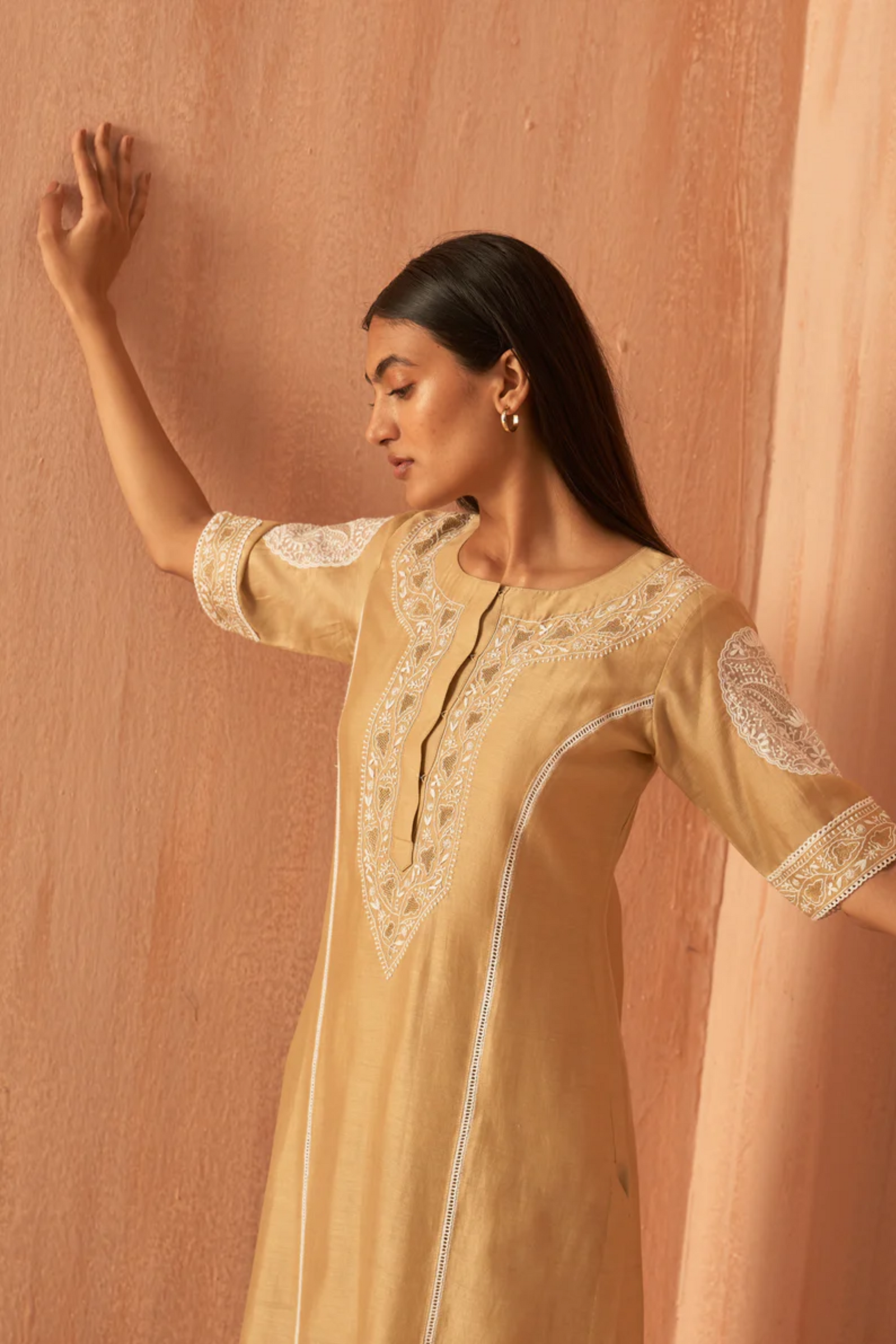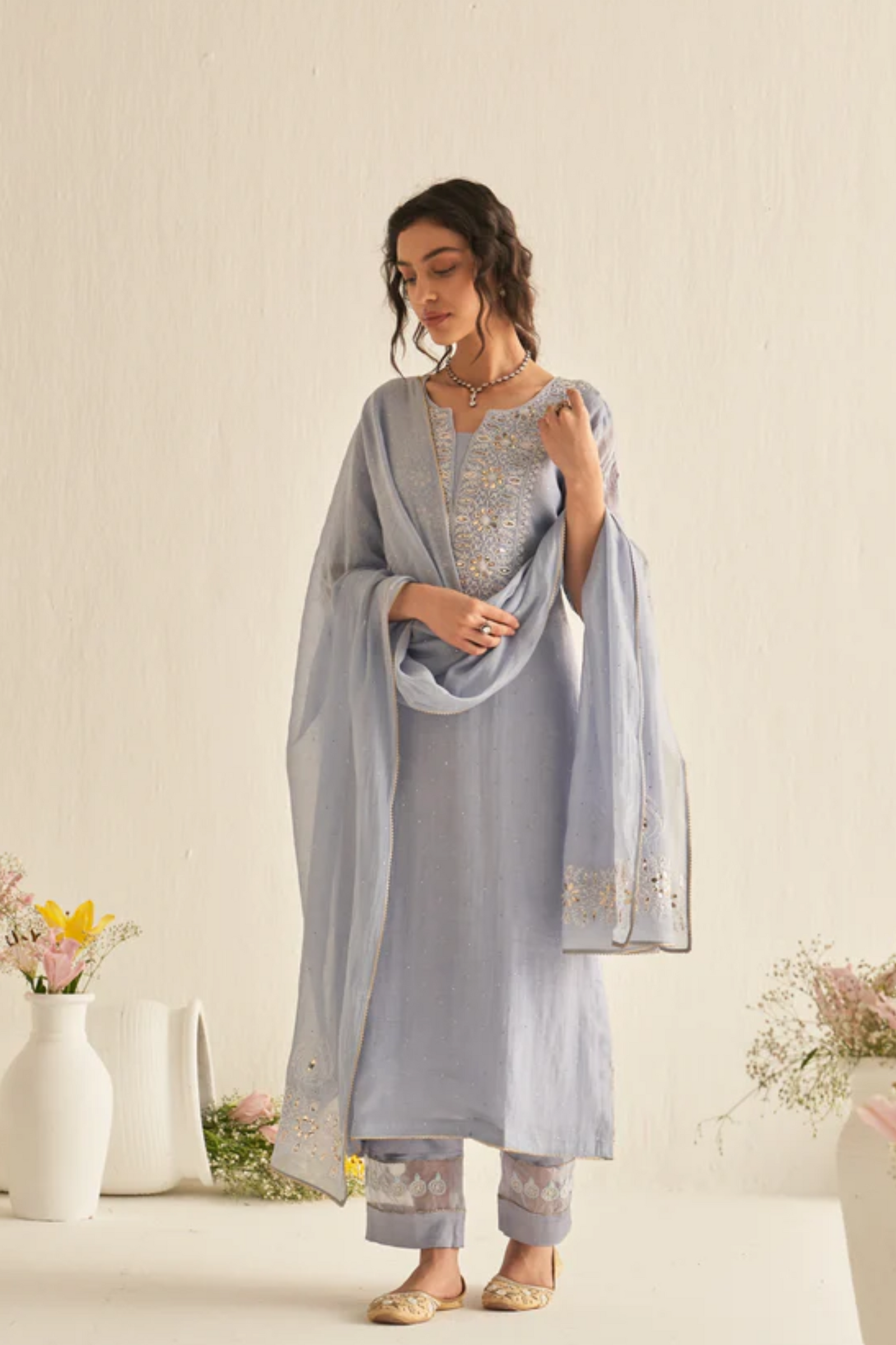 Care: Dry Clean Only. As garments are handmade and handwoven, natural variations in colours and weaves are a characteristic of the textile, and may be found in the finished garments as well.