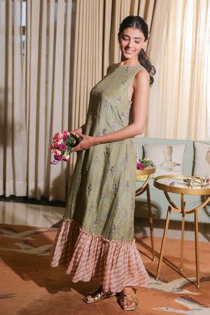 • The bow print dress comes is designed joyful dressing and celebrations. The bow print is beautifully highlighted with dabka and sequin hand embroidery.