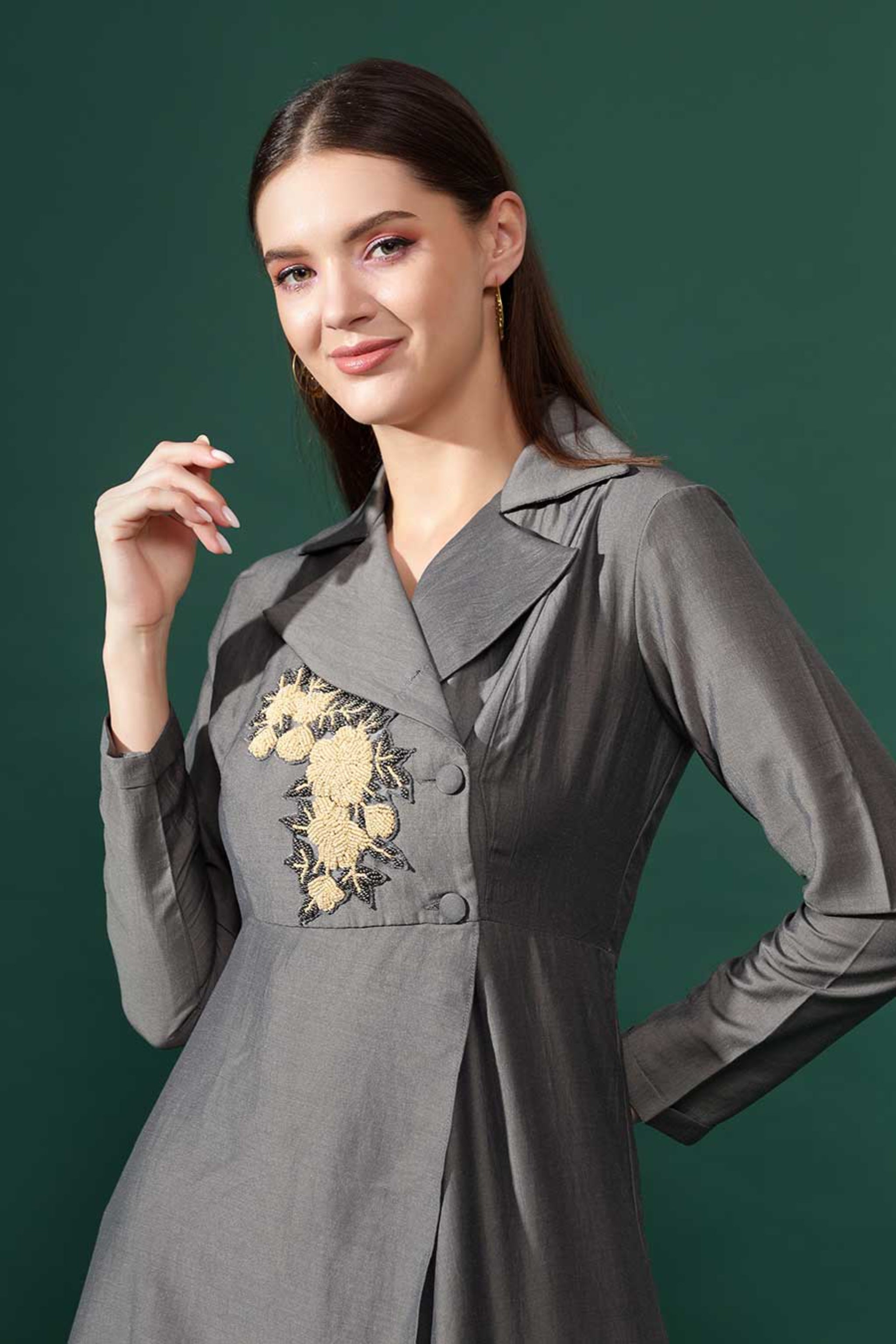 Grey Embroidered Co-ord Set