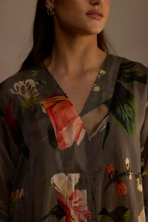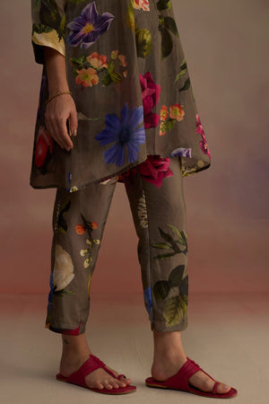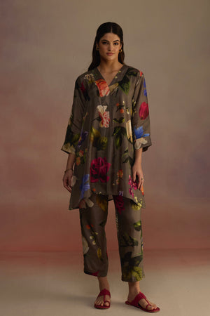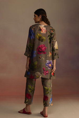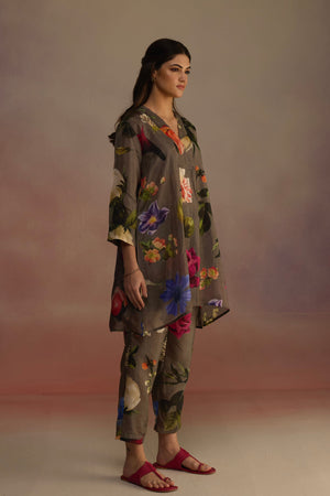 • A short kurta set featuring hand-sketched florals, paired with matching straight pants. An easy-to-wear co-ord perfect for a casual festive look.