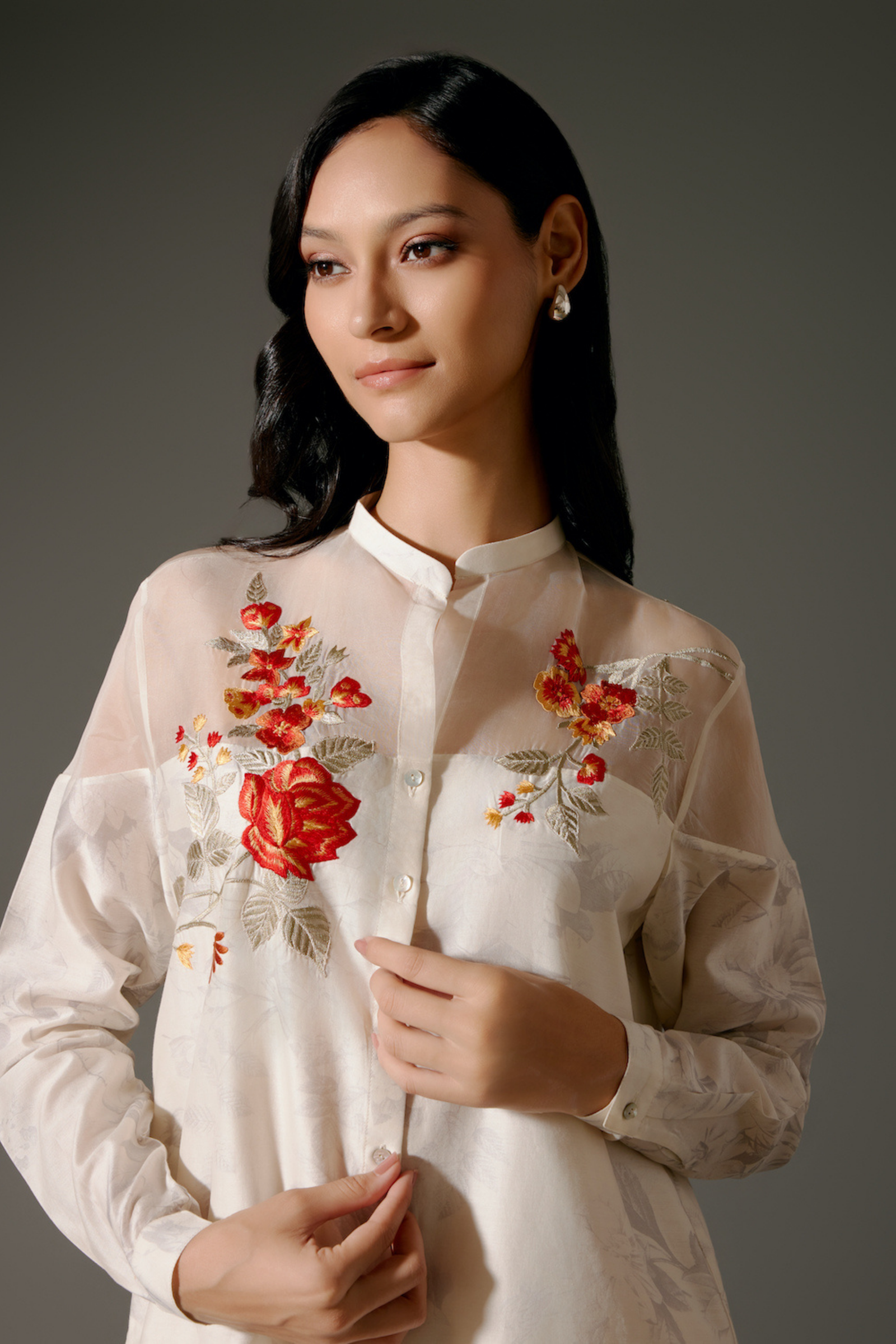 Care: Dry Clean Only. As garments are handmade and handwoven, natural variations in colours and weaves are a characteristic of the textile, and may be found in the finished garments as well.