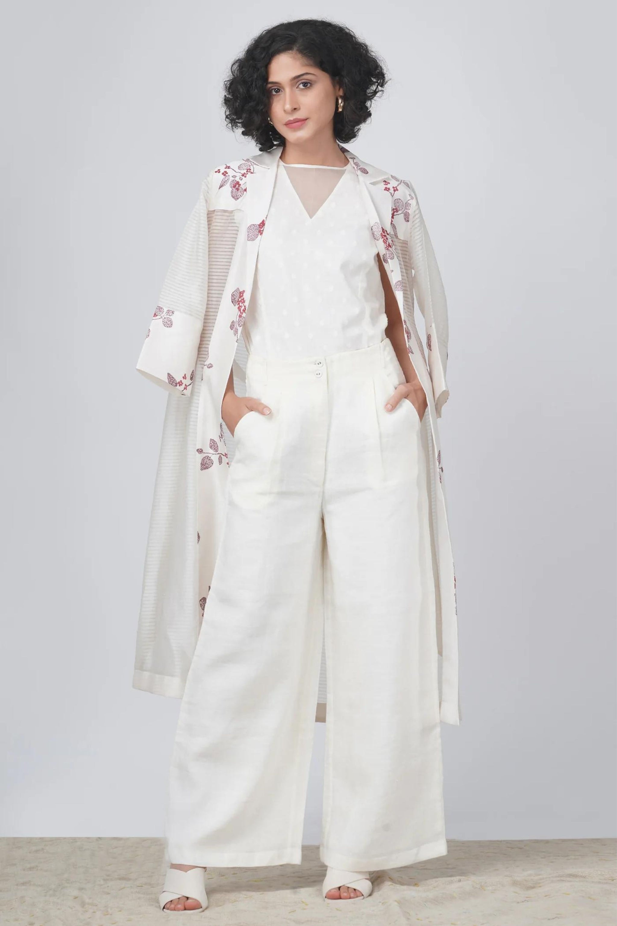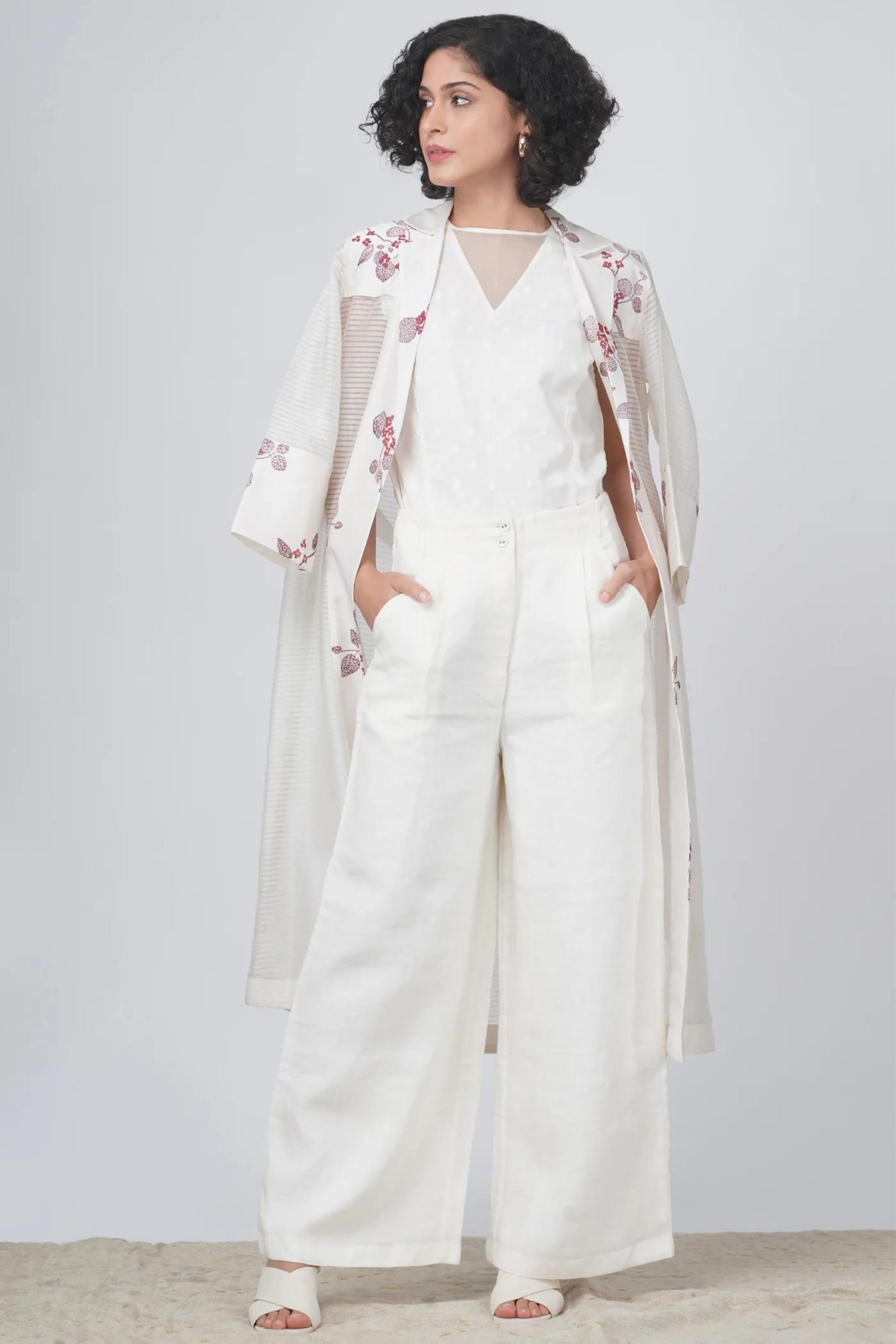Care: Dry Clean Only. As garments are handmade and handwoven, natural variations in colours and weaves are a characteristic of the textile, and may be found in the finished garments as well.