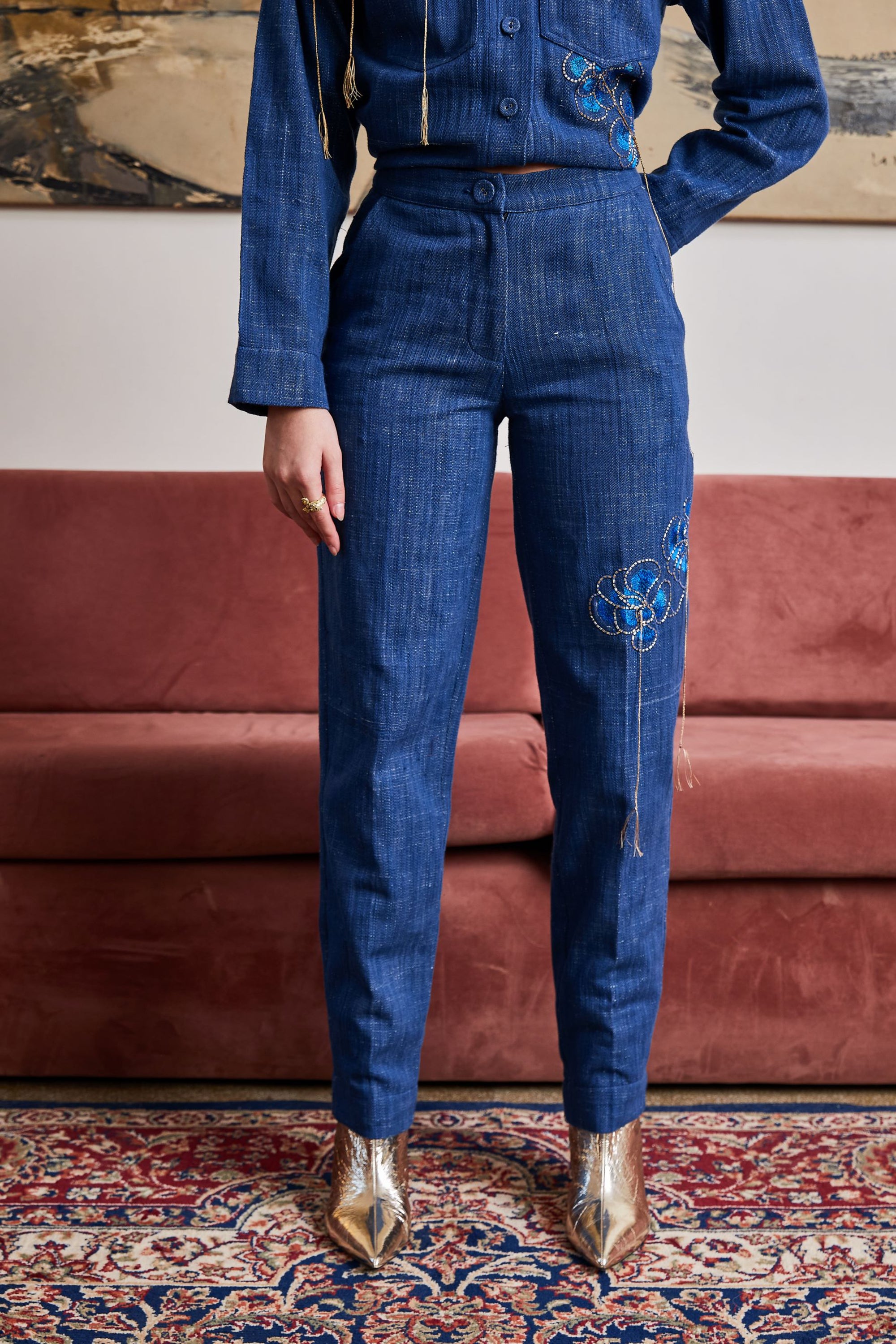 Care: Dry Clean Only. As garments are handmade and handwoven, natural variations in colours and weaves are a characteristic of the textile, and may be found in the finished garments as well.