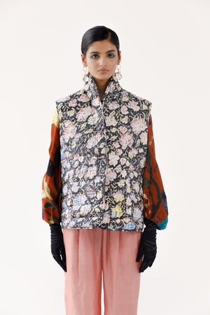 • Down feather quilted reversible jacket in vintage story, with side pockets.