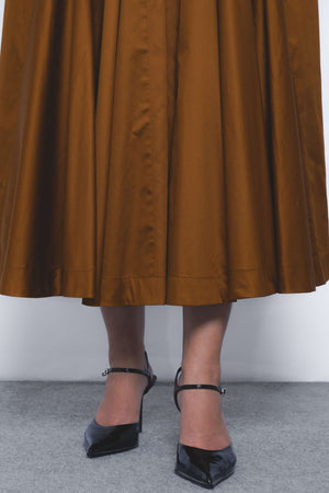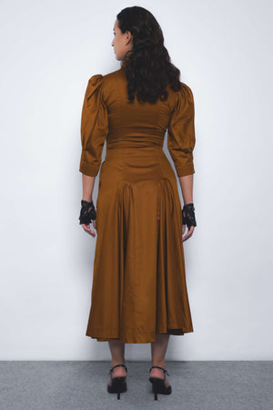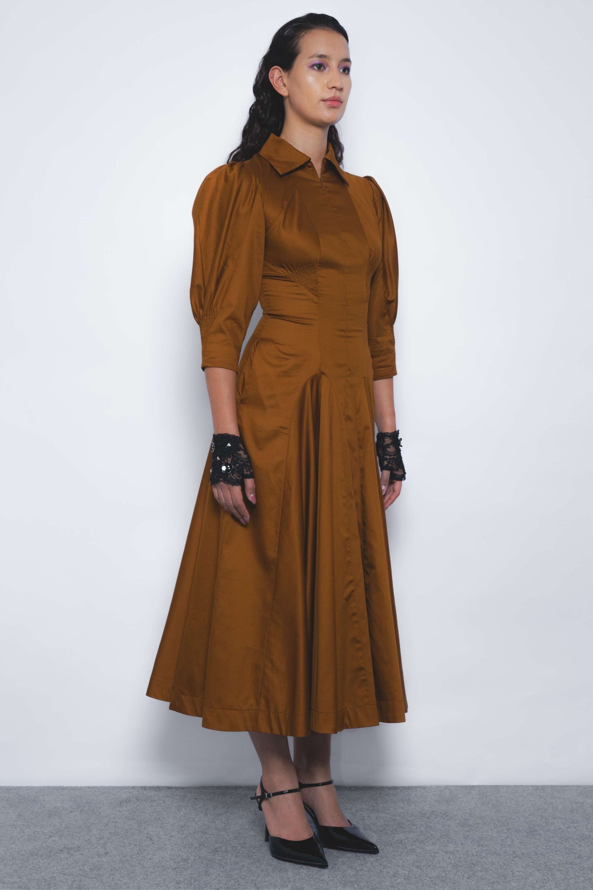 • Crafted in rich cotton satin, this garment exudes the feminine form in a soft sculptural silhouette.Panelled construction contours the body, complemented by a voluminous hemline and softly structured sleeves.