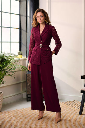 • Exude polished sophistication with this relaxed-fit co-ord set. The blazer features a classic lapel collar, front opening with metallic buttons, braid detailing on the pocket, full unlined sleeves, and a seperate belt for versatile styling. Paired with relaxed-fit pants with a solid waistband, elasticated back for comfort, and a side opening