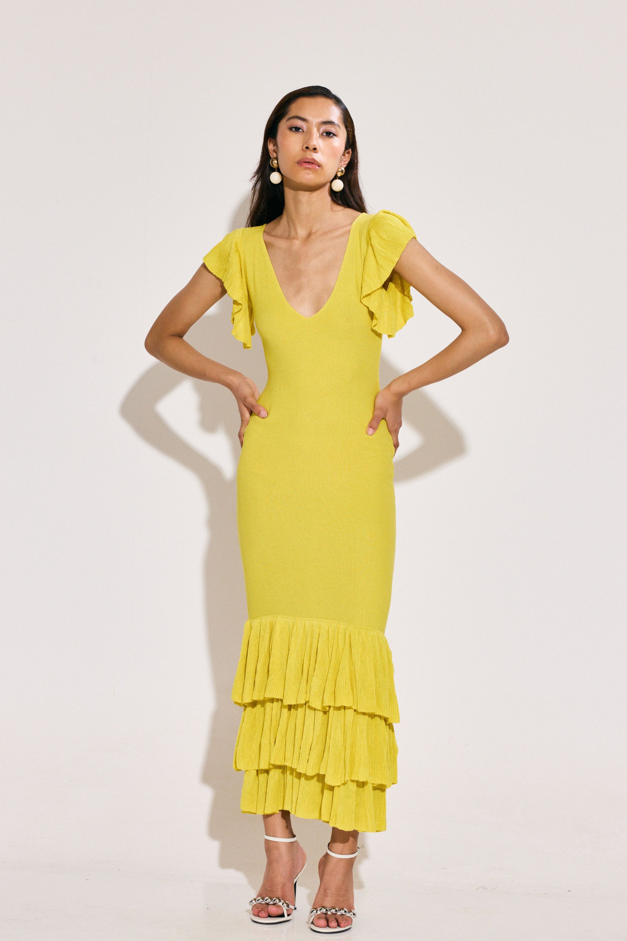 • V- neck knitted dress with frill detailing
